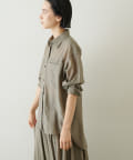 柔らかく軽い着心地のブラウスです。前を止めてスッキリ着てもいいですし、羽織にもなるので夏のスタメン入り間違いなしです。光沢がありカジュアルさを抑えているので大人の女性に是非着ていただきたいアイテムです。