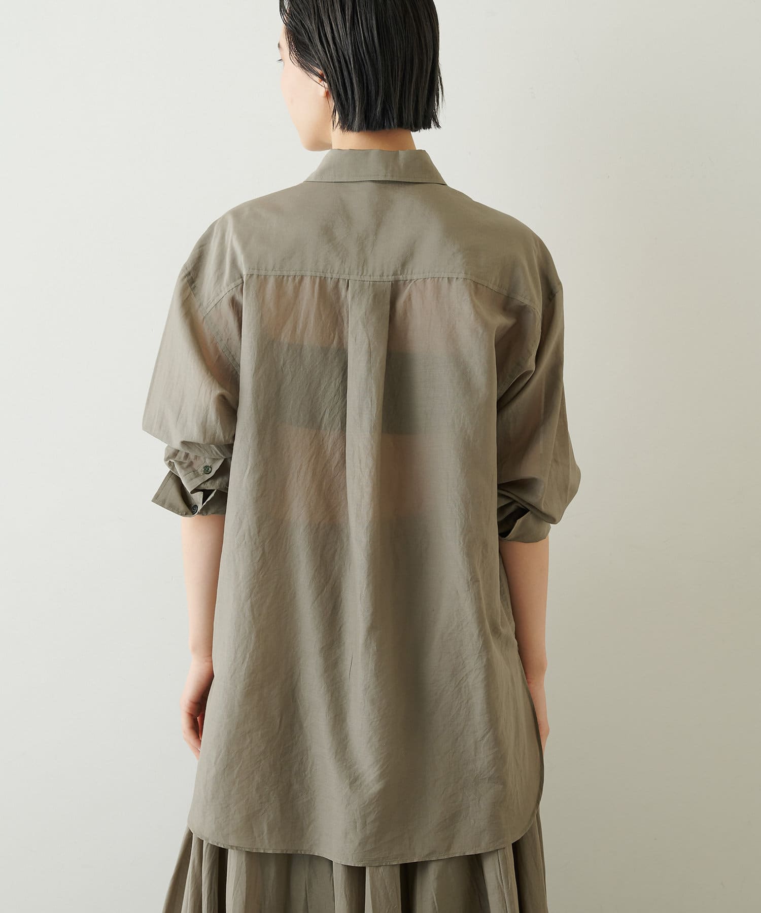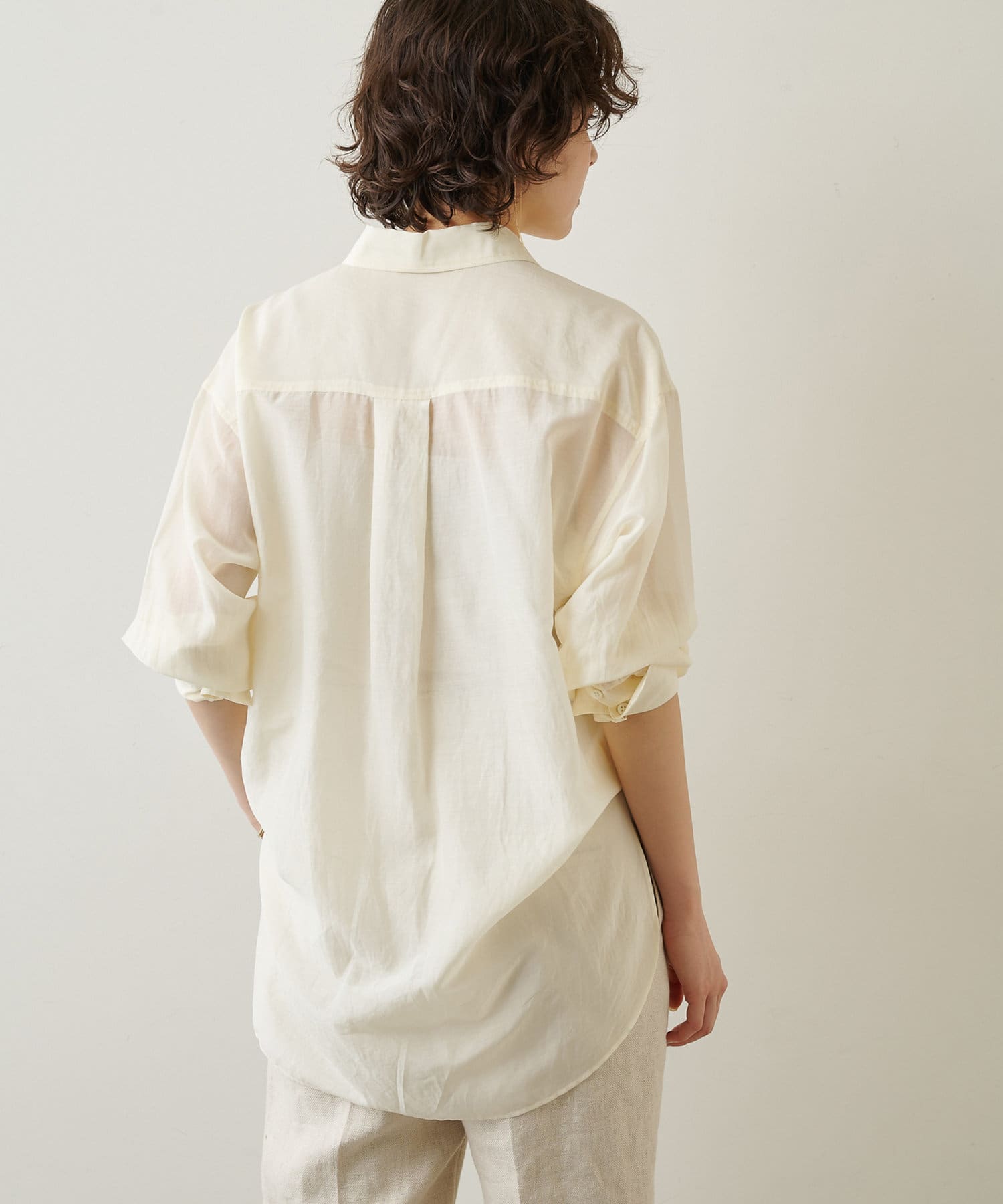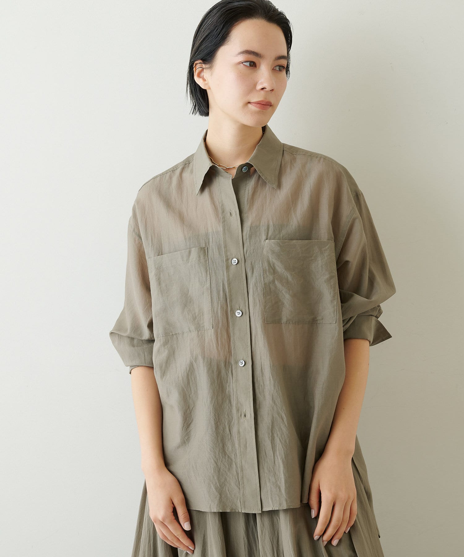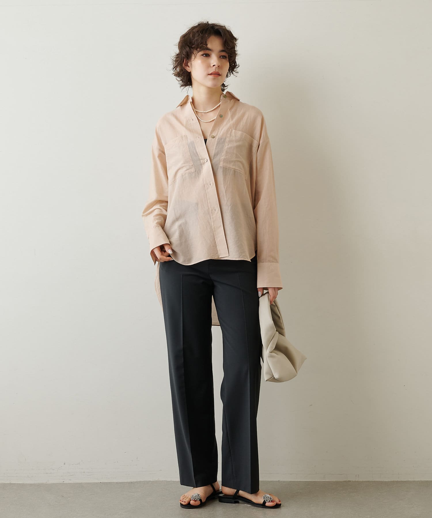 ■程よくゆとりのあるシルエットに、やや透け感のある風合いが女性らしさをプラス。