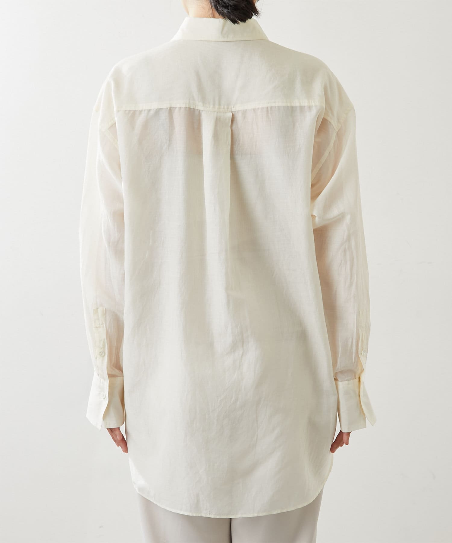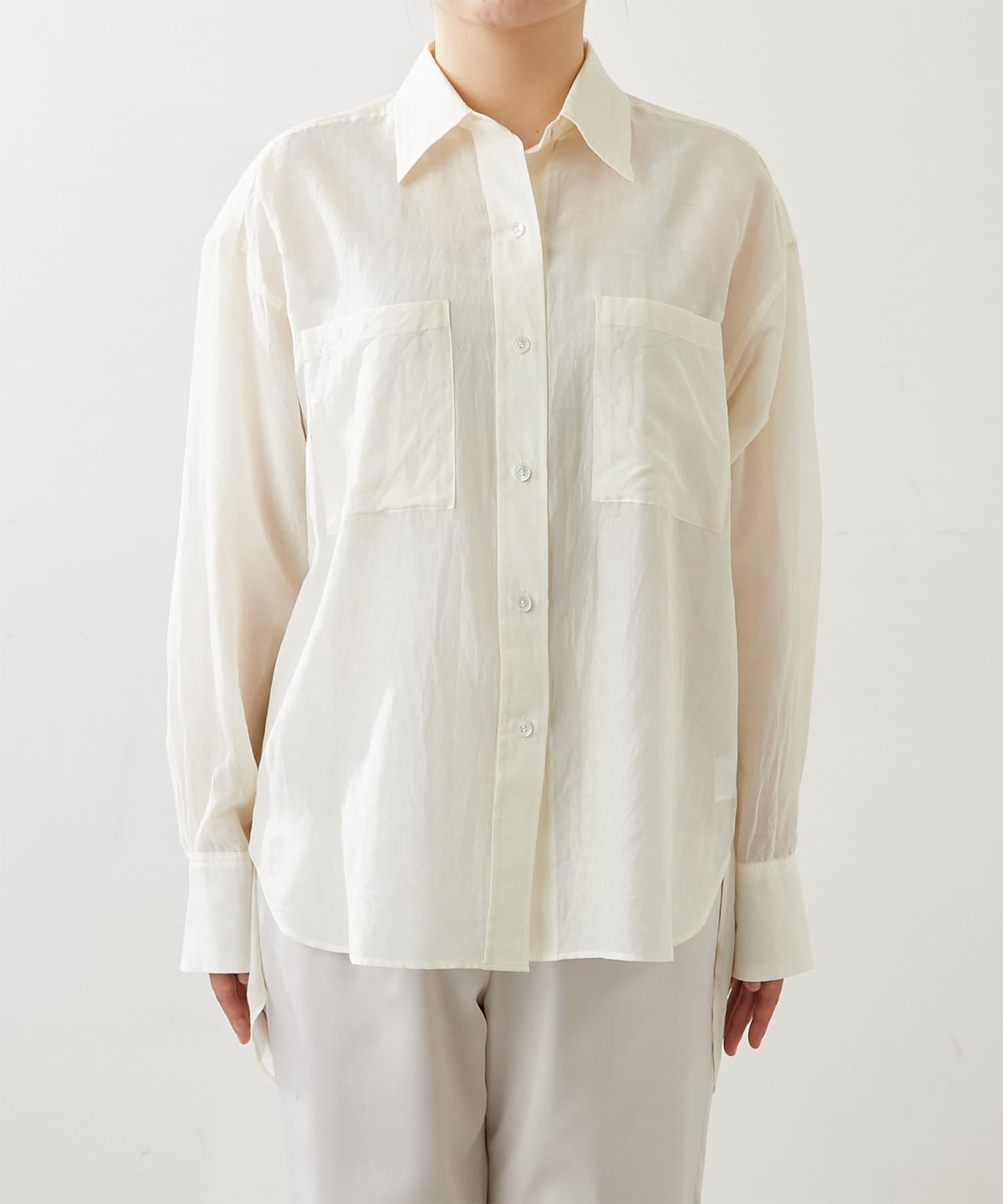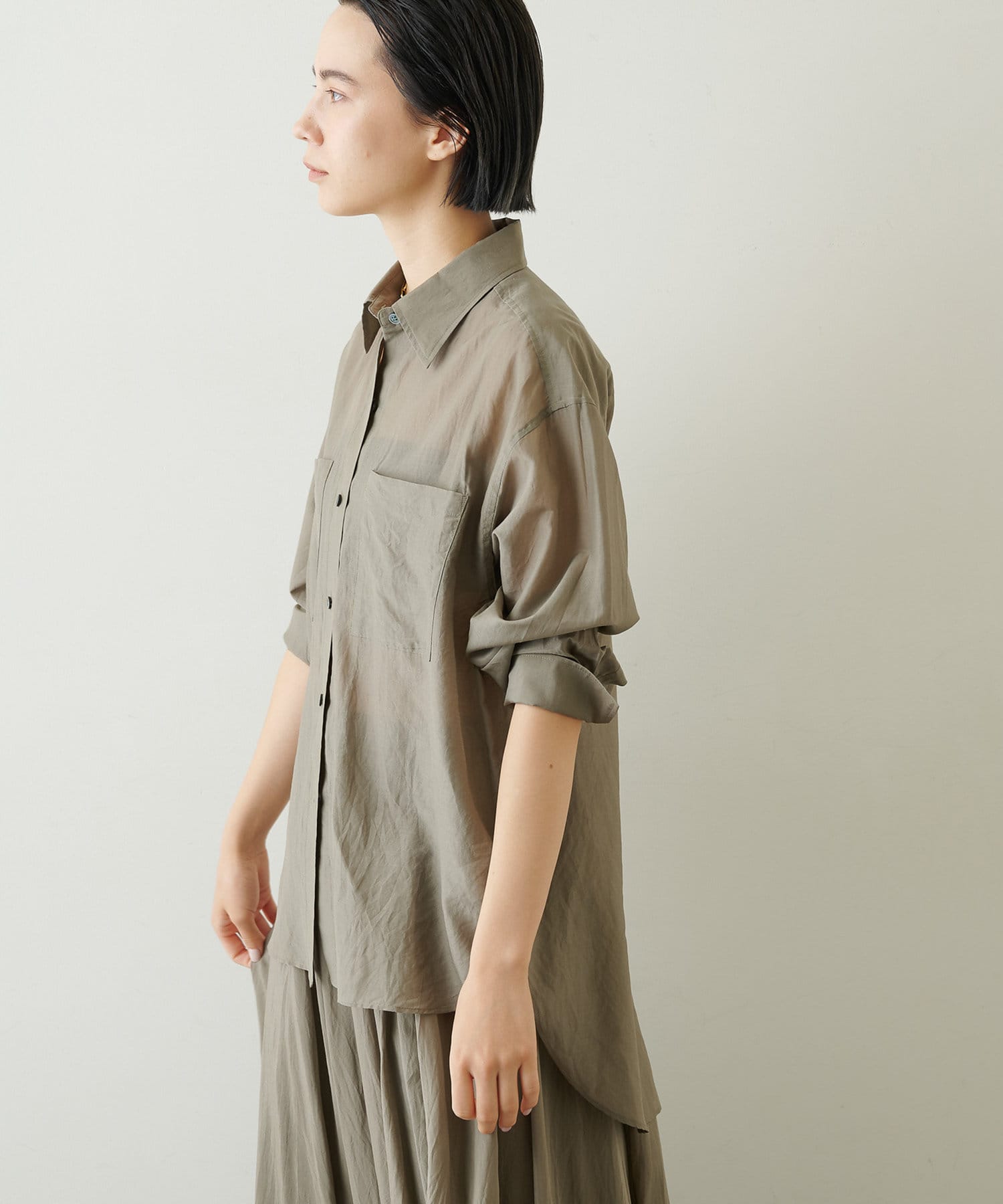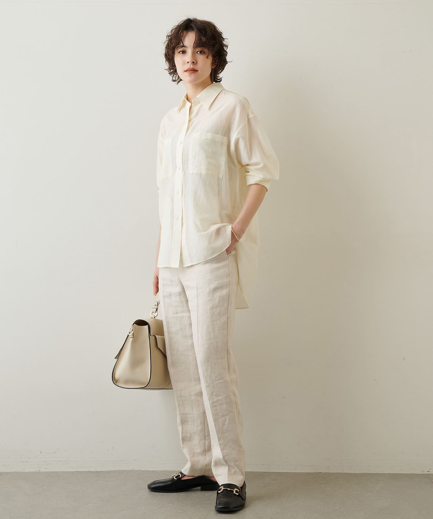 ■程よくゆとりのあるシルエットに、やや透け感のある風合いが女性らしさをプラス。