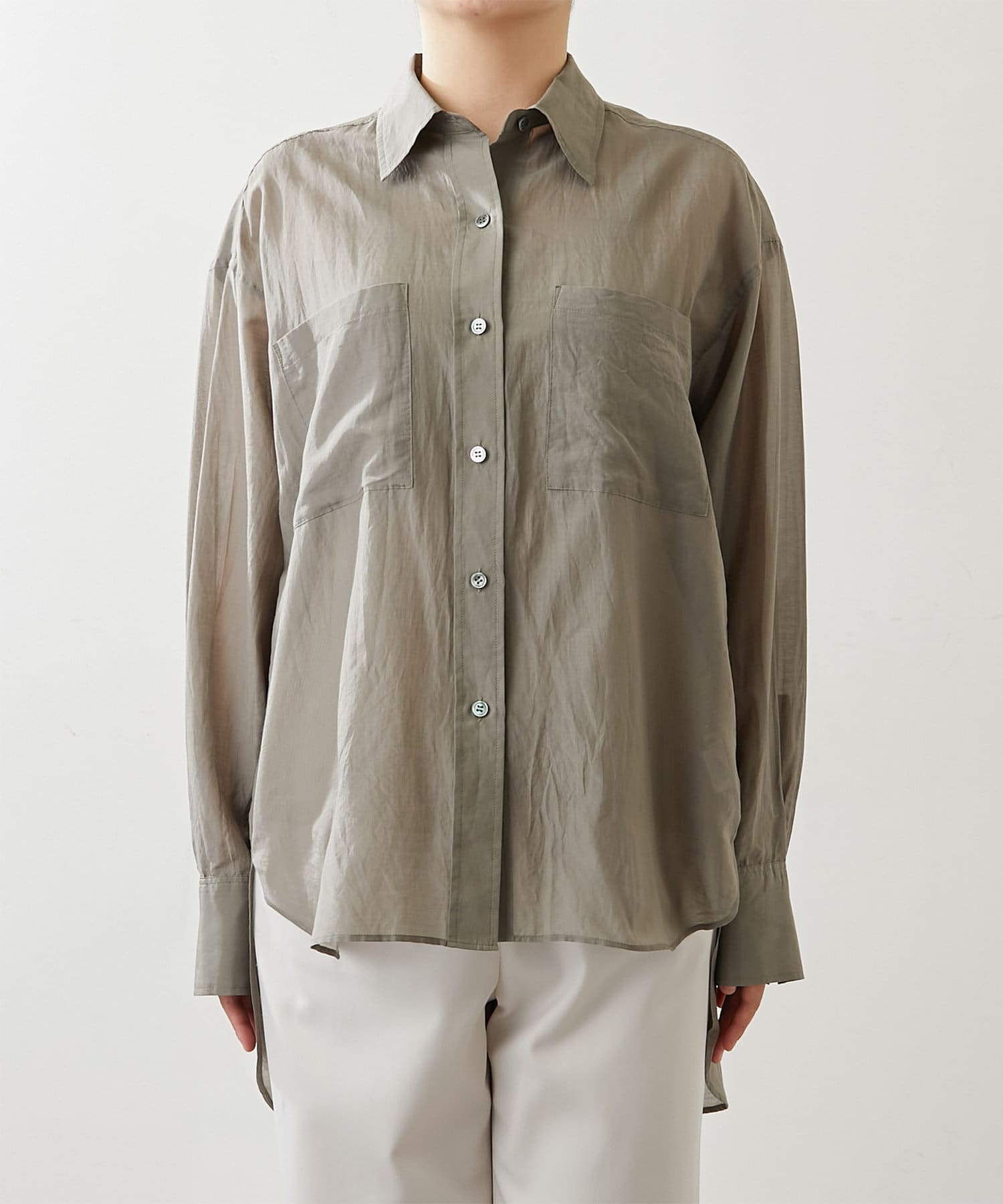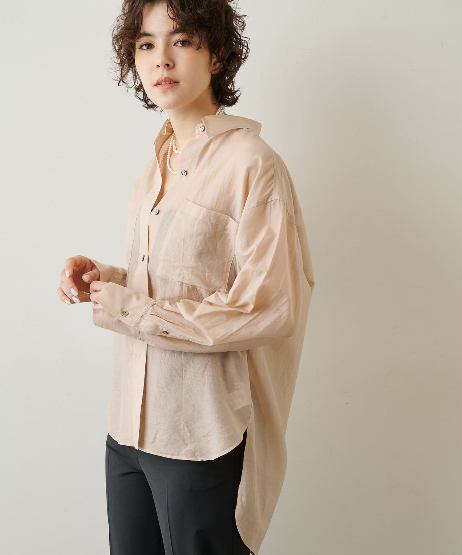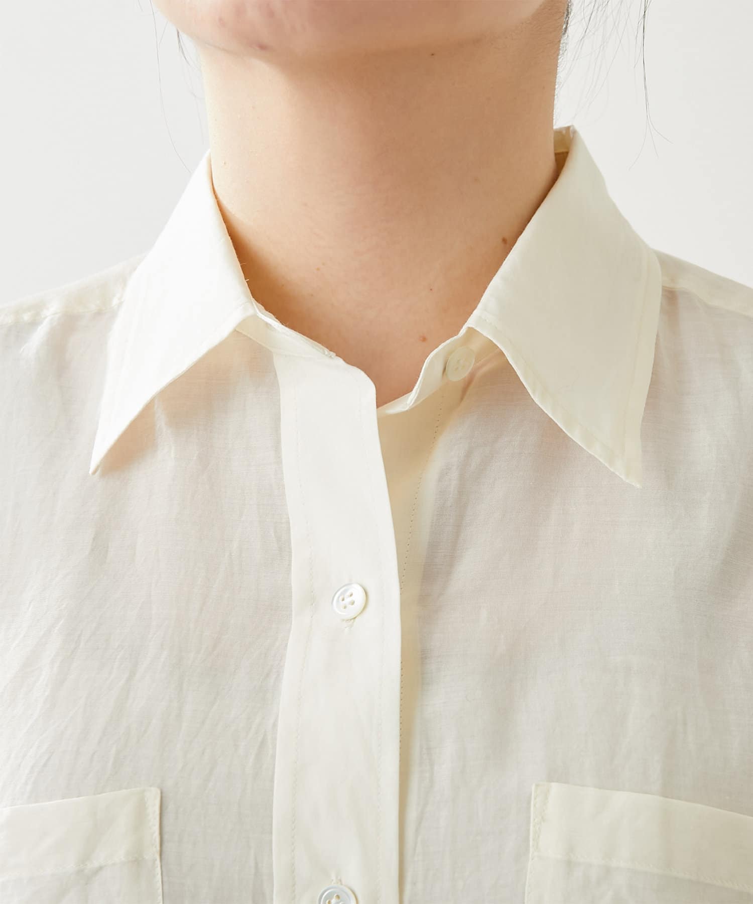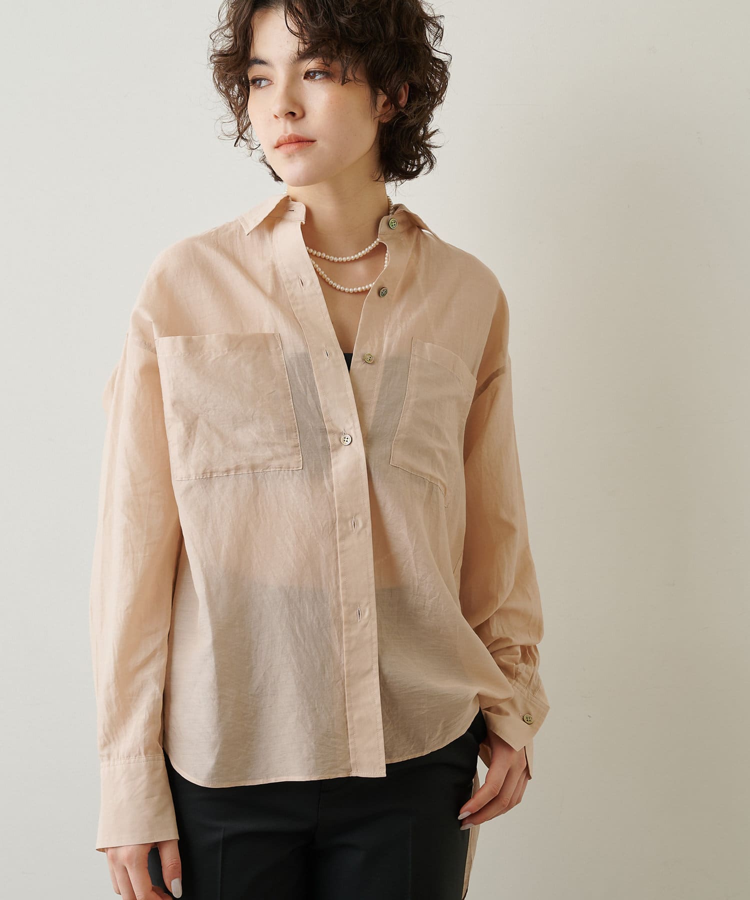 ■程よくゆとりのあるシルエットに、やや透け感のある風合いが女性らしさをプラス。