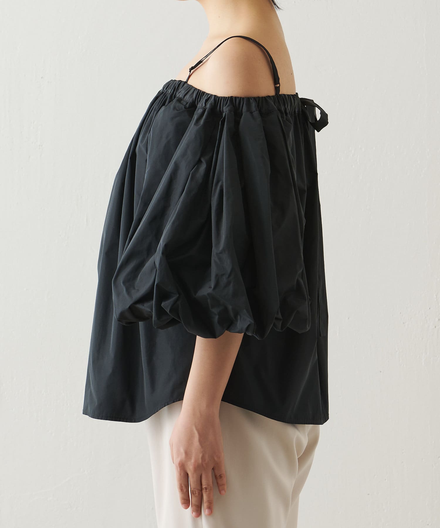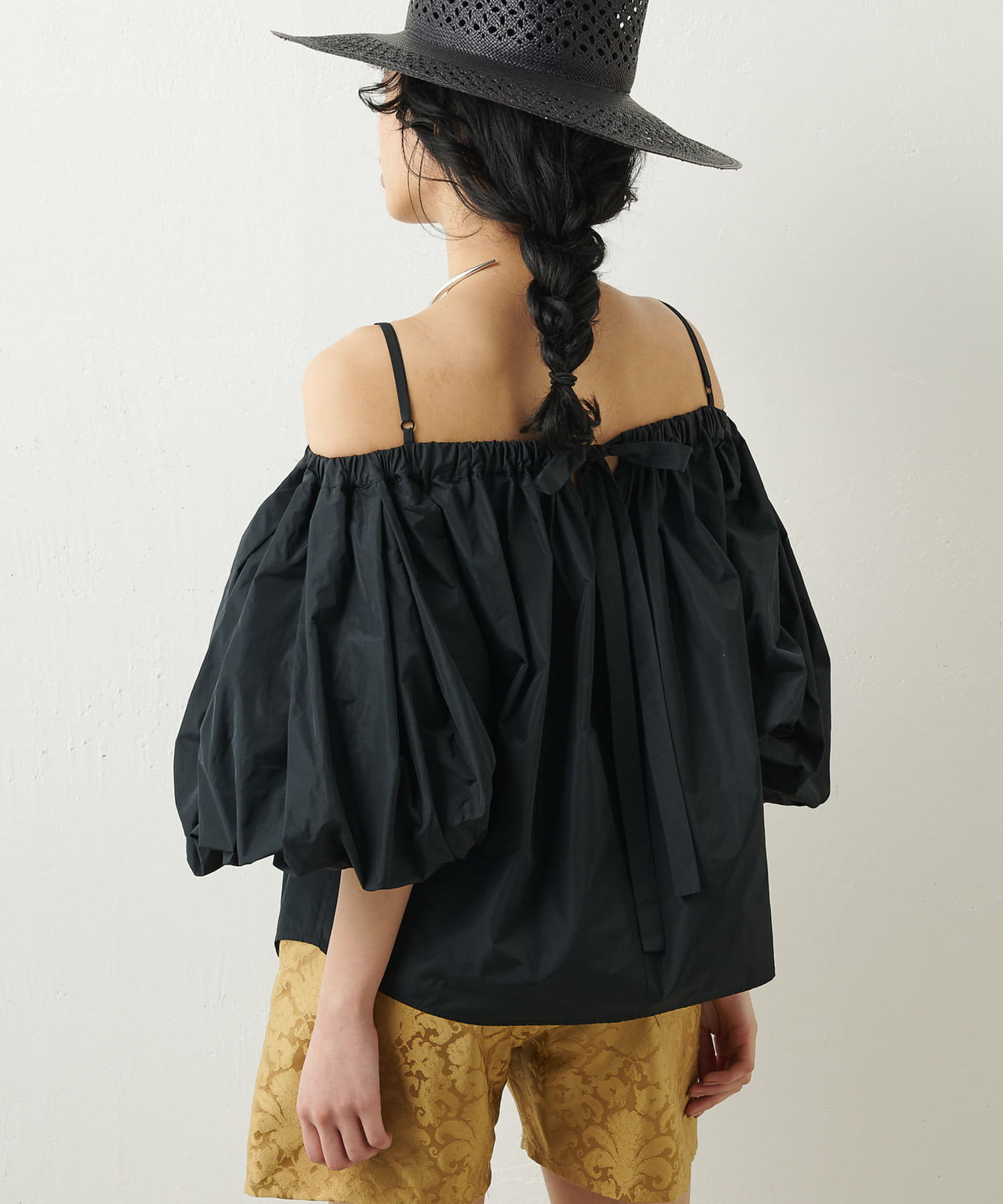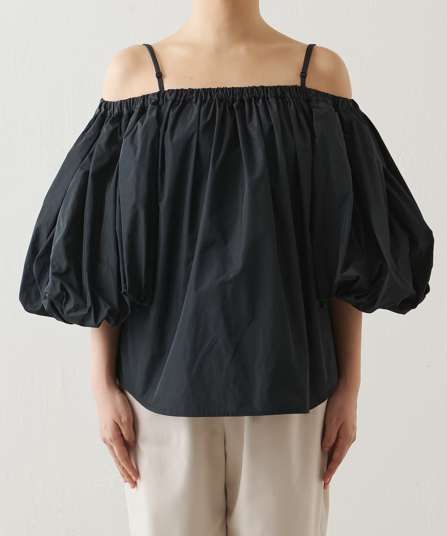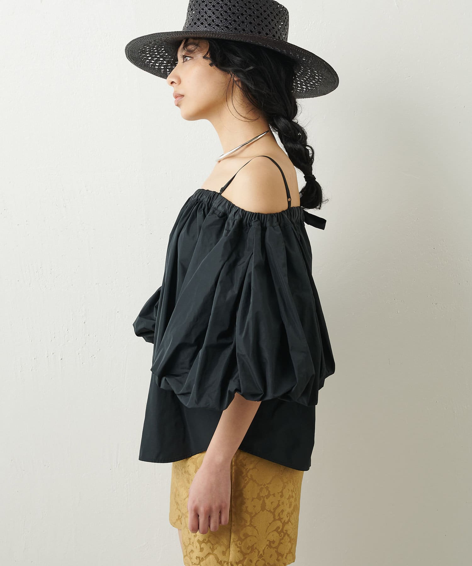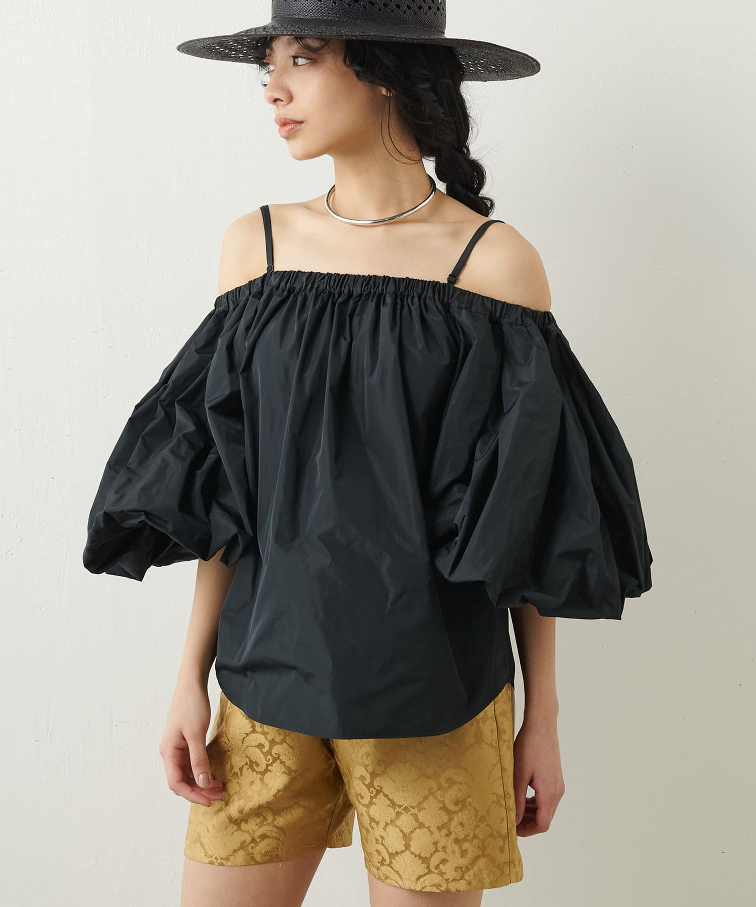 ■大胆なボリュームスリーブが目を惹くオフショルダーブラウス。