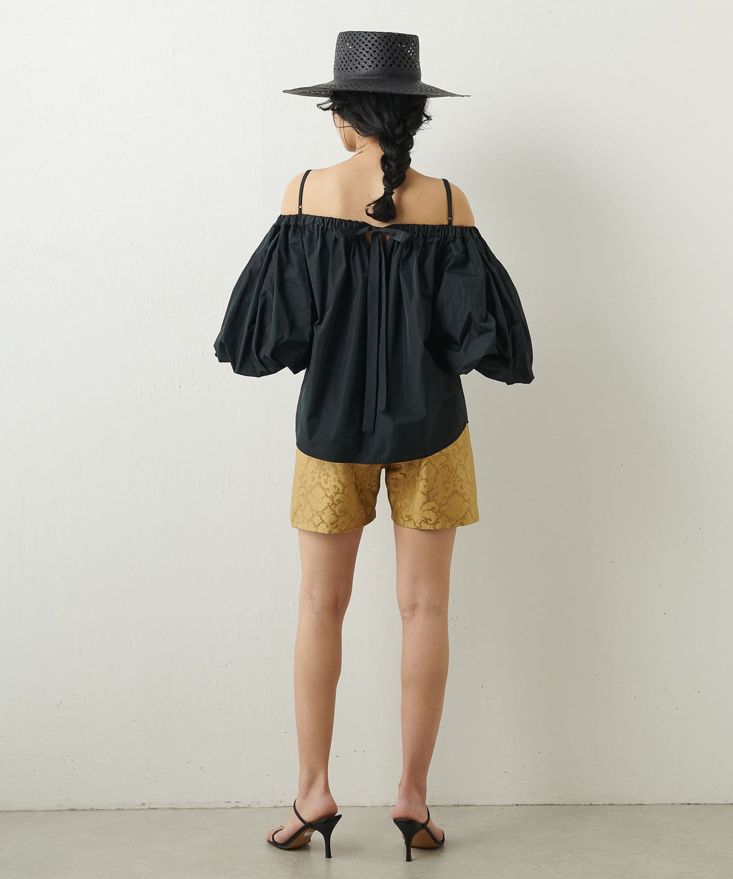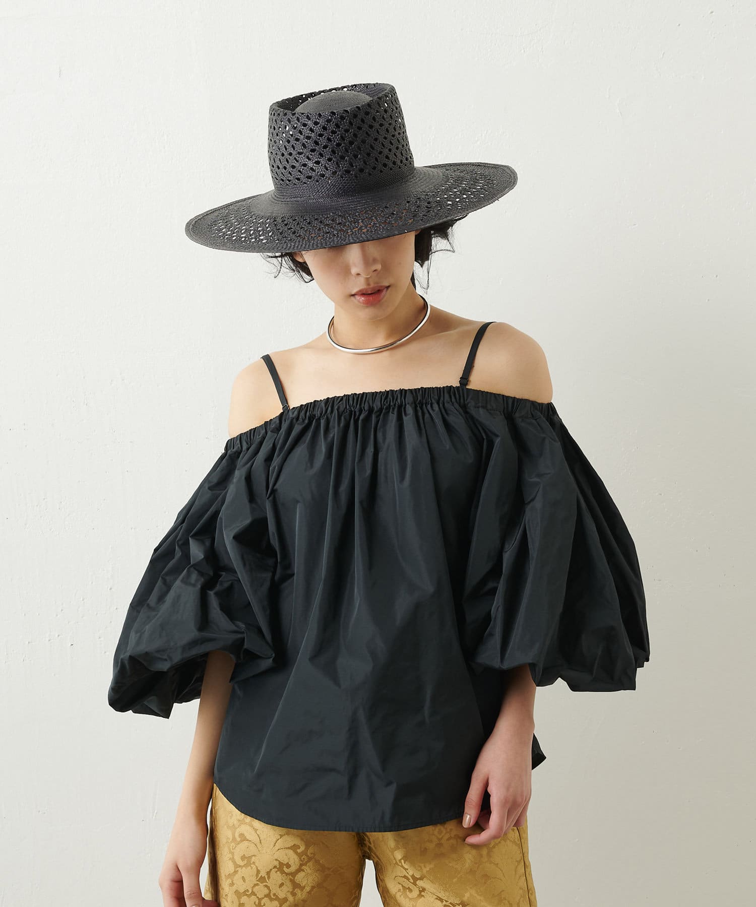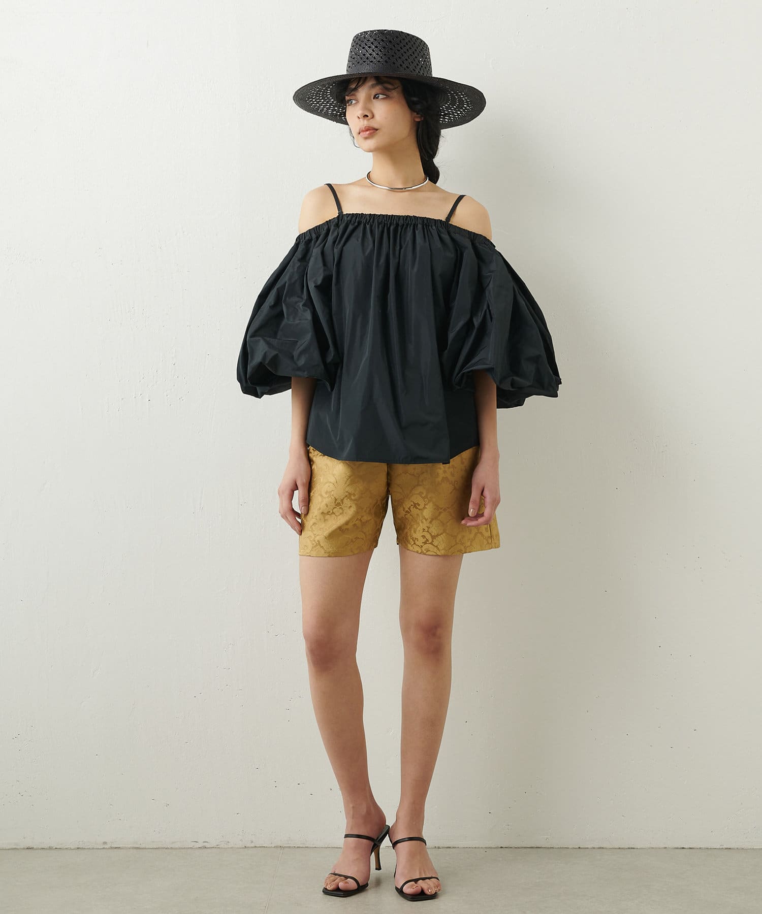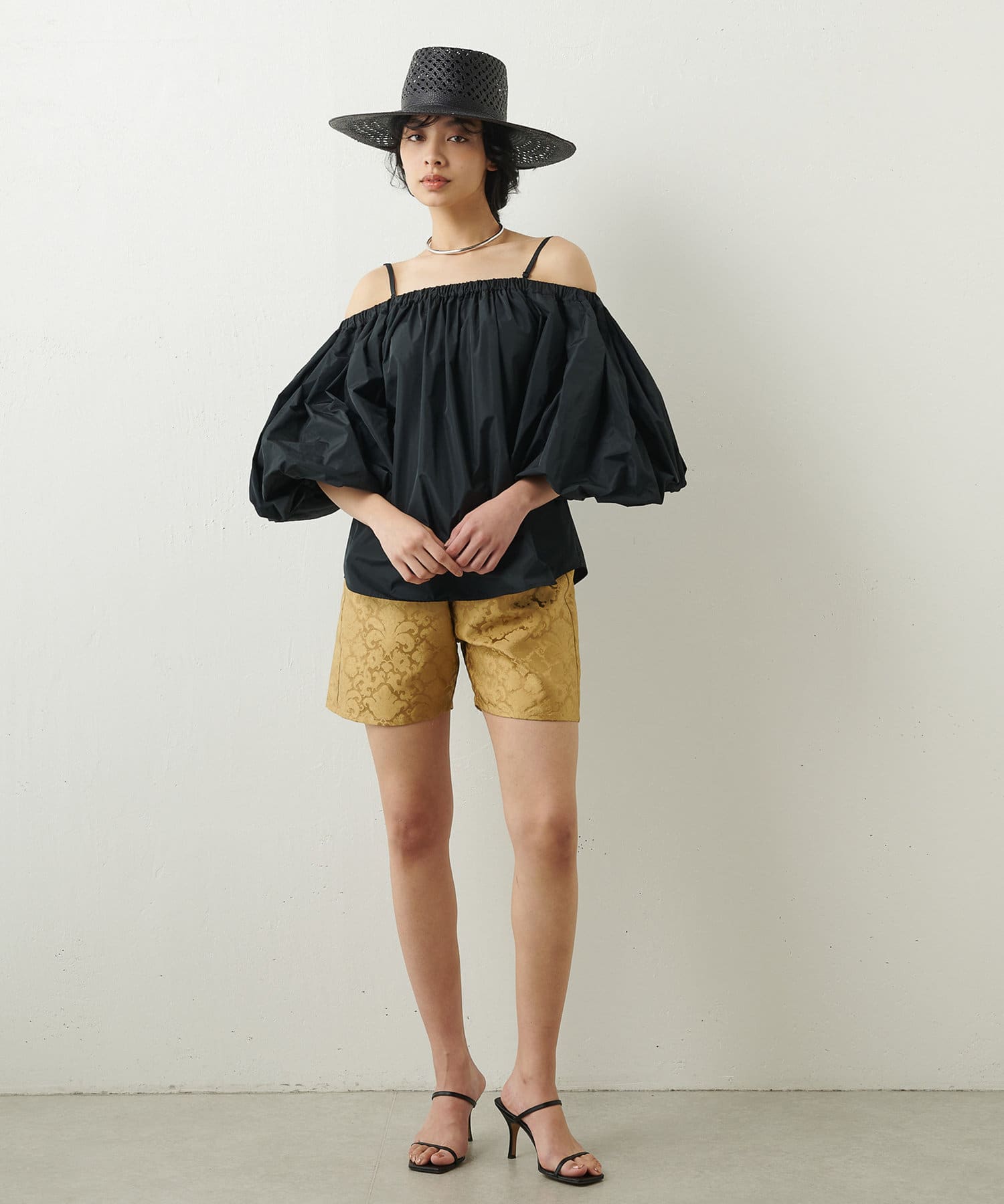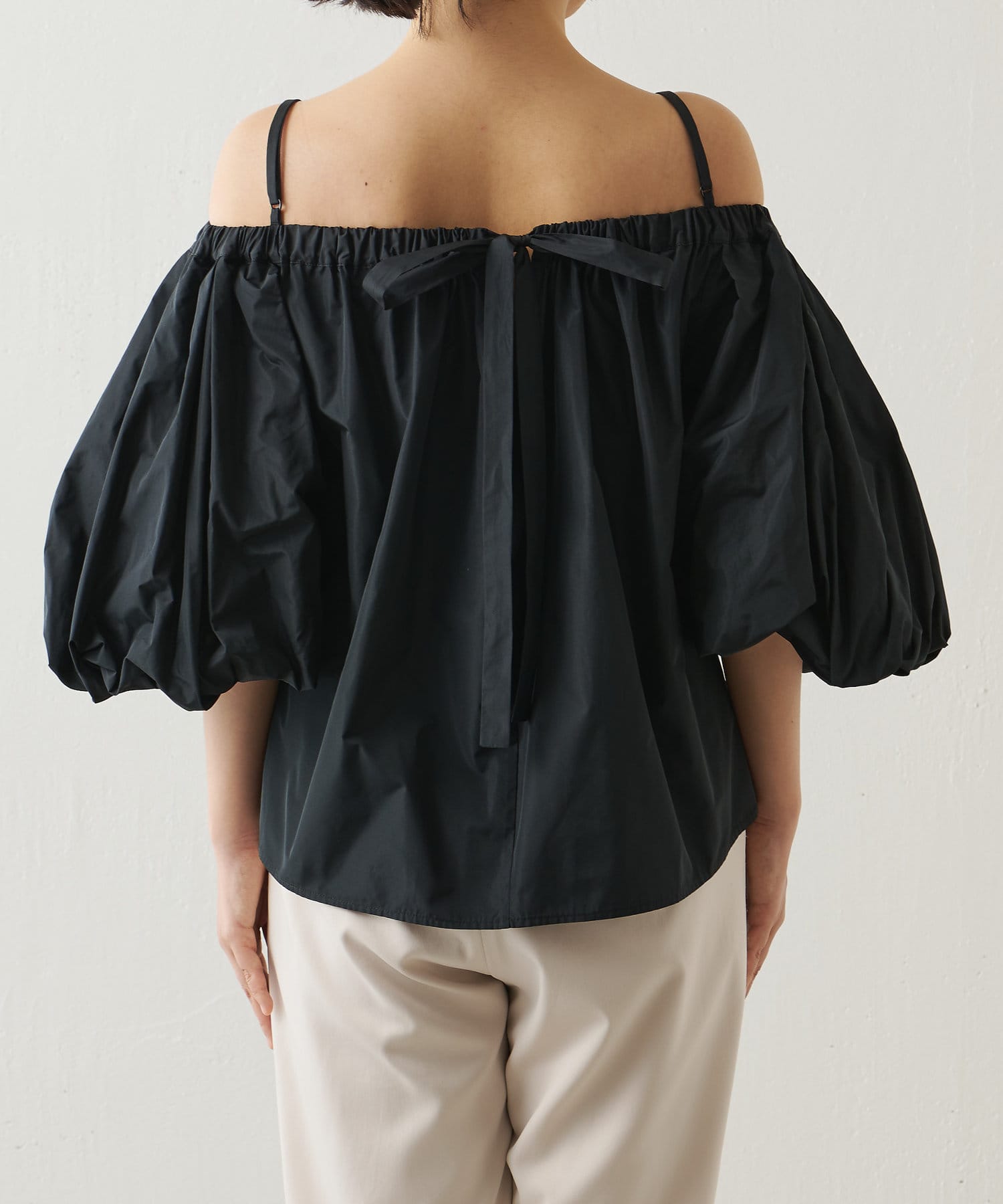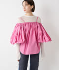 ■大胆なボリュームスリーブが目を惹くオフショルダーブラウス。