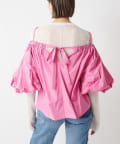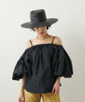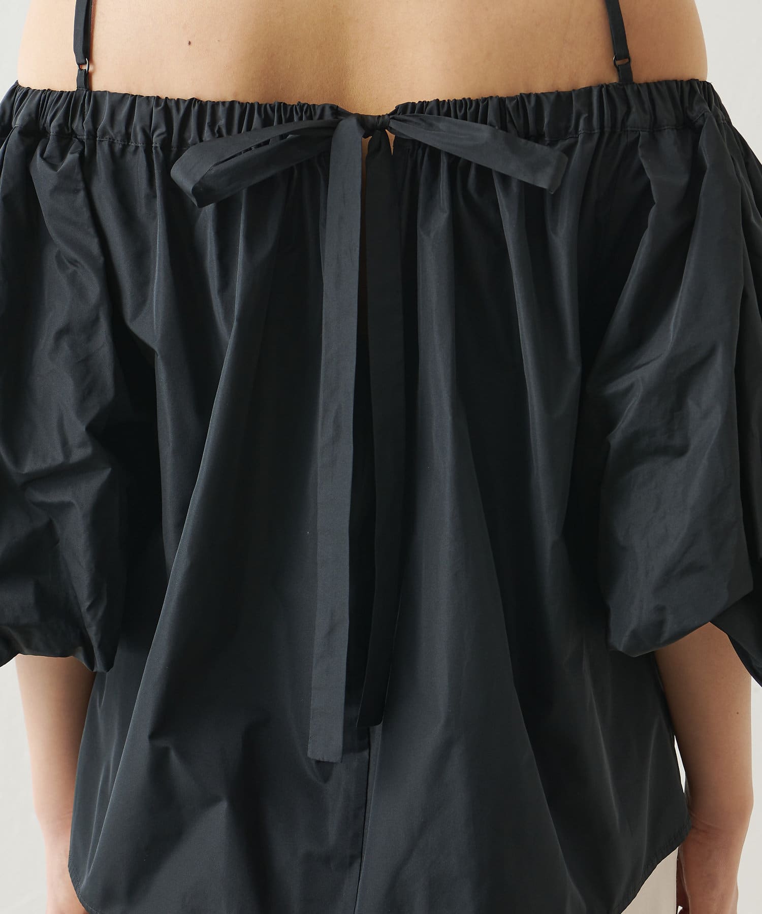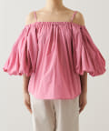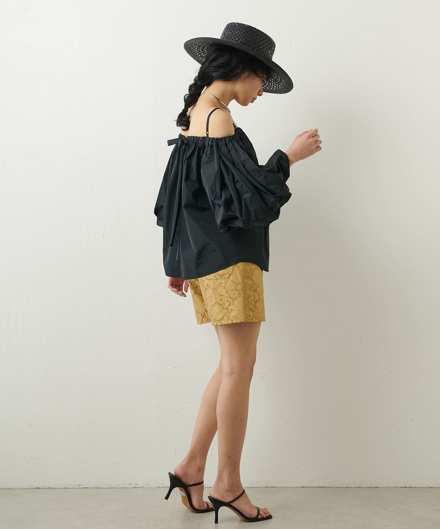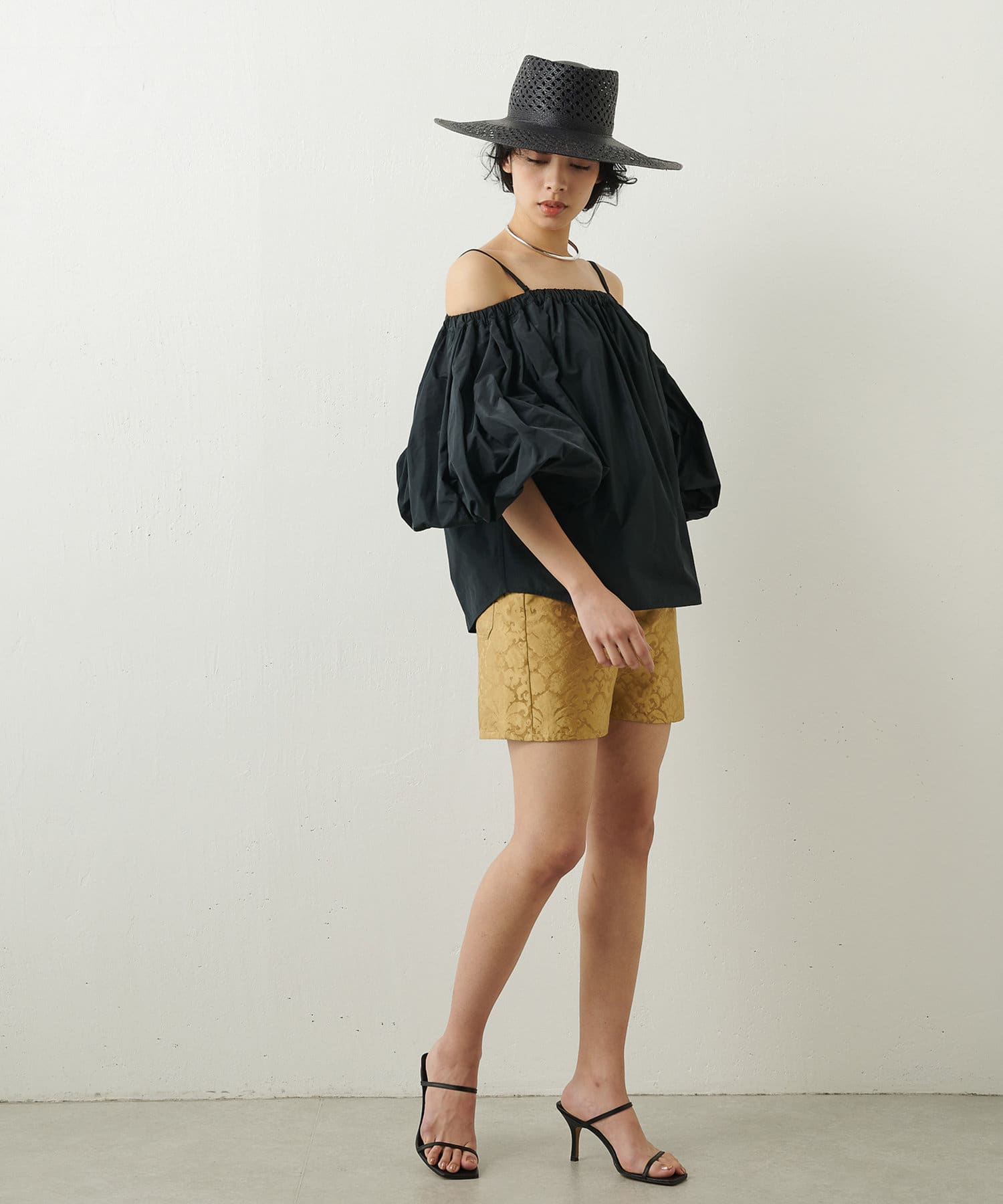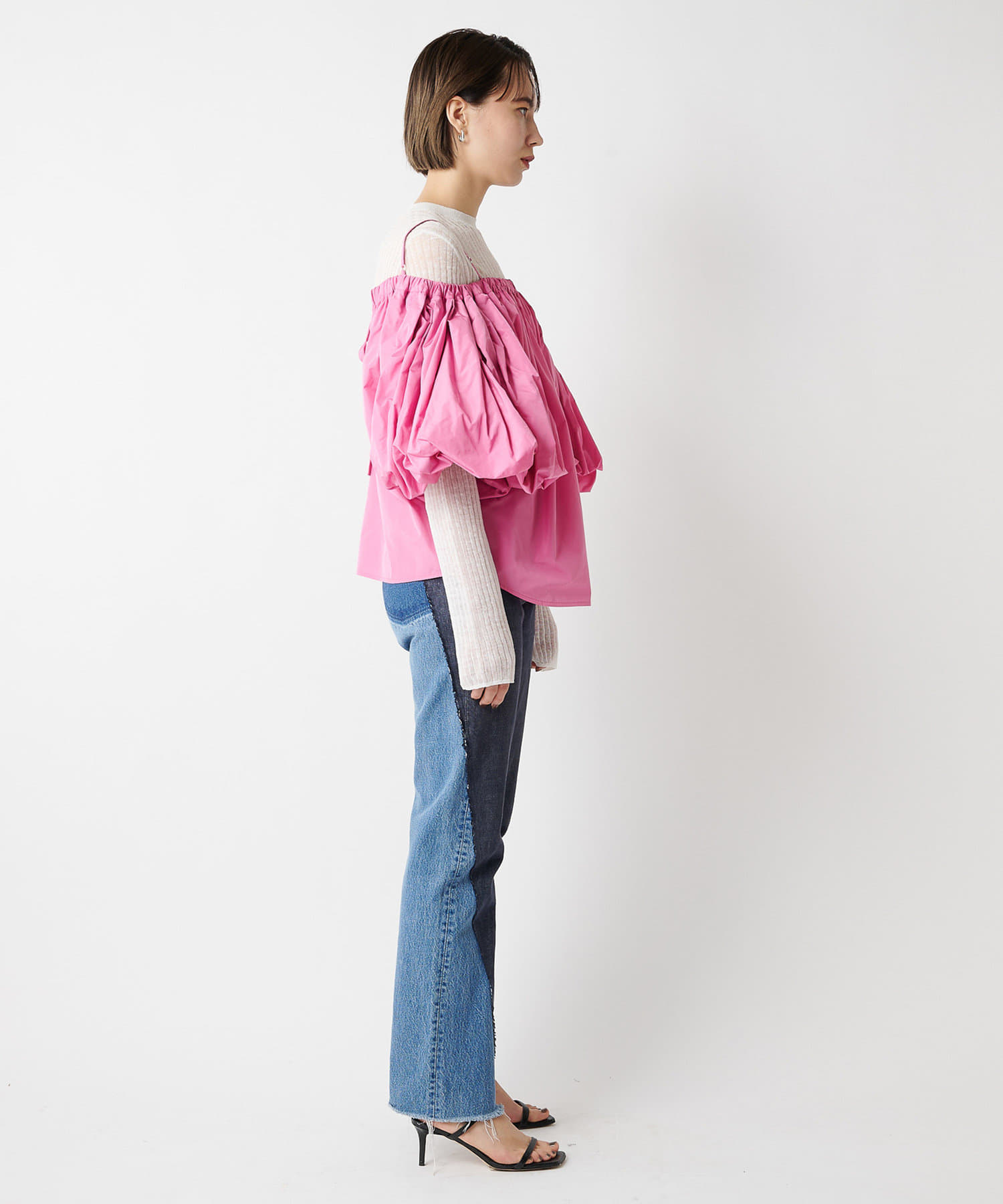 ■大胆なボリュームスリーブが目を惹くオフショルダーブラウス。