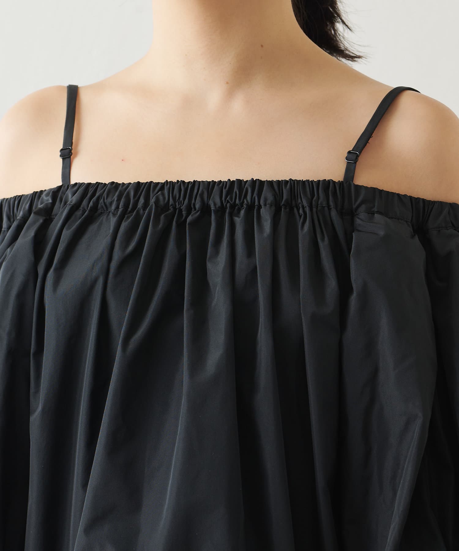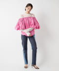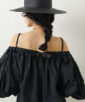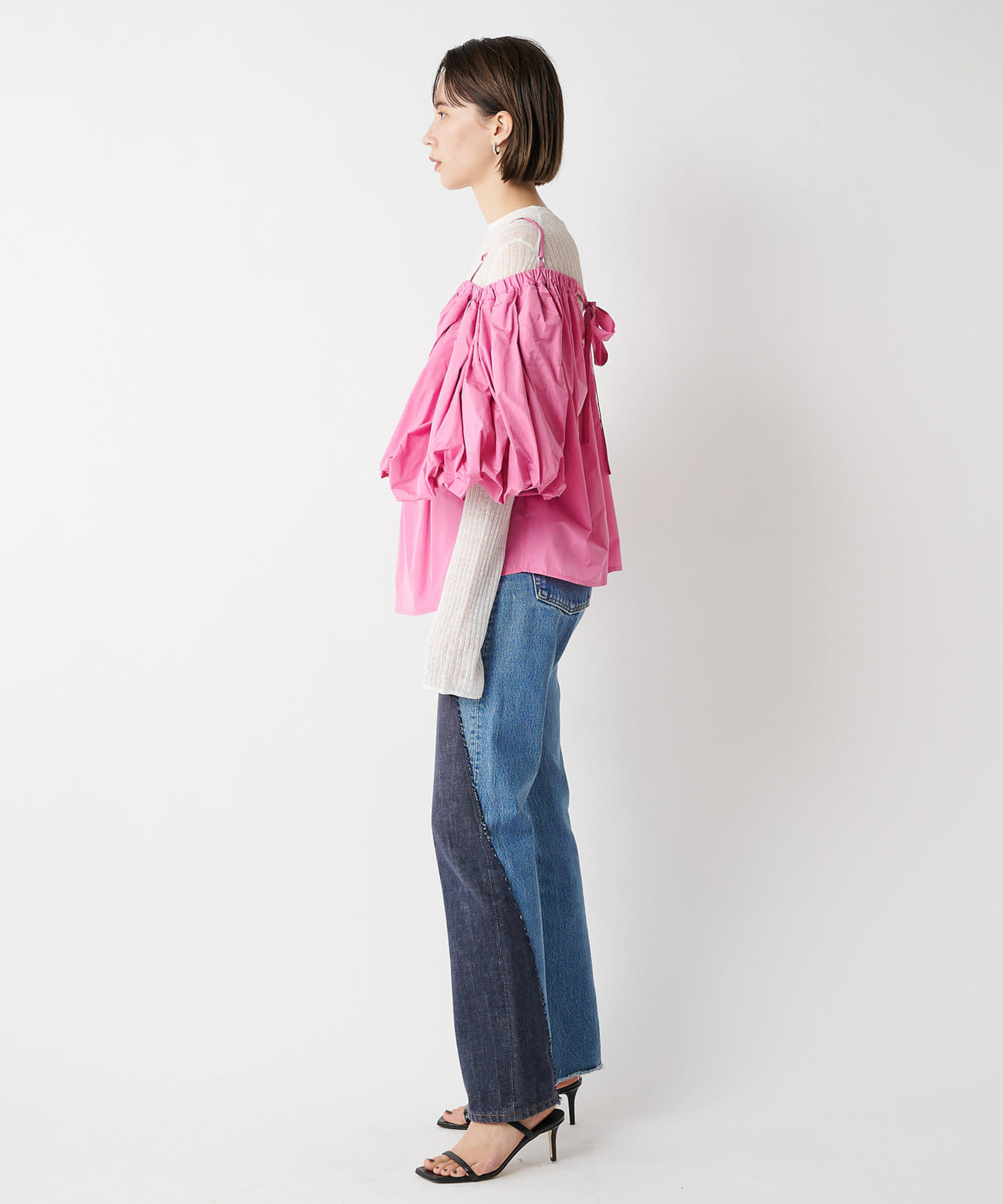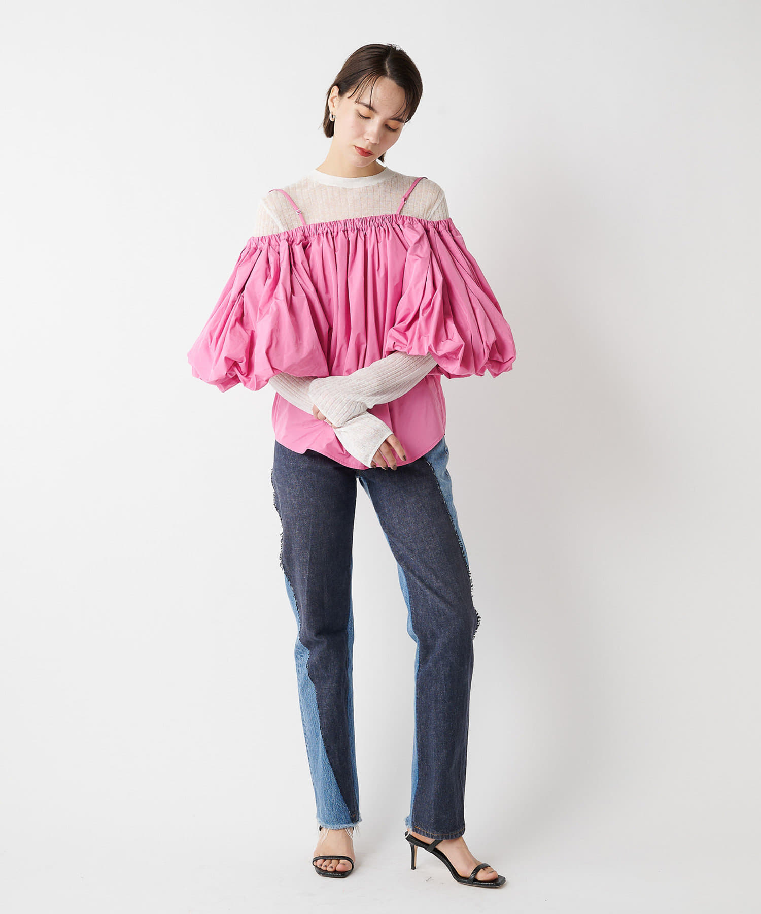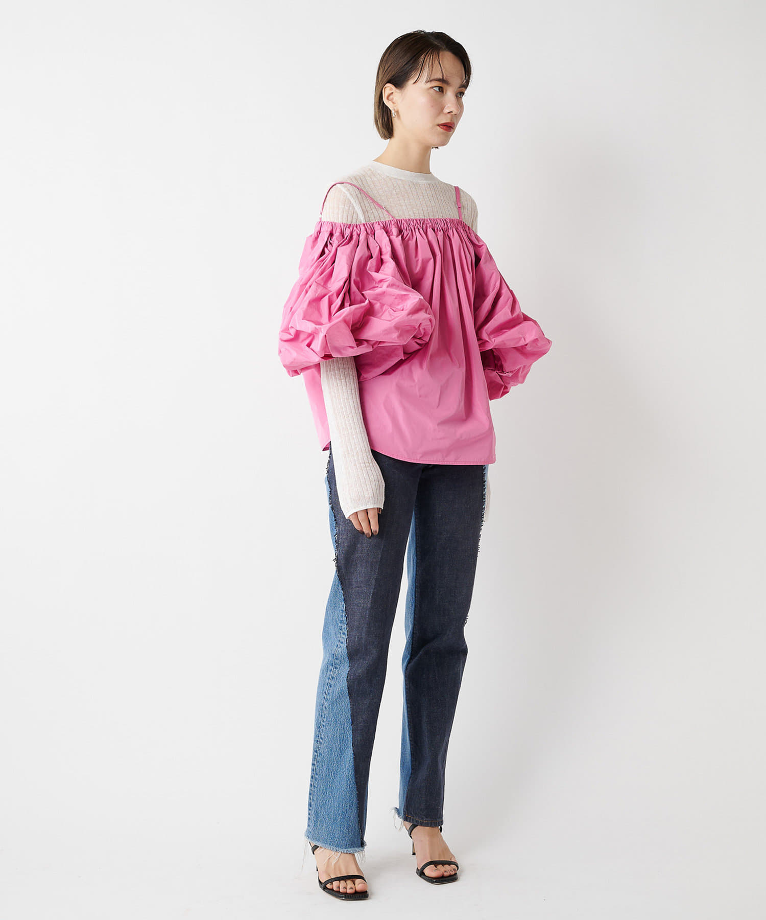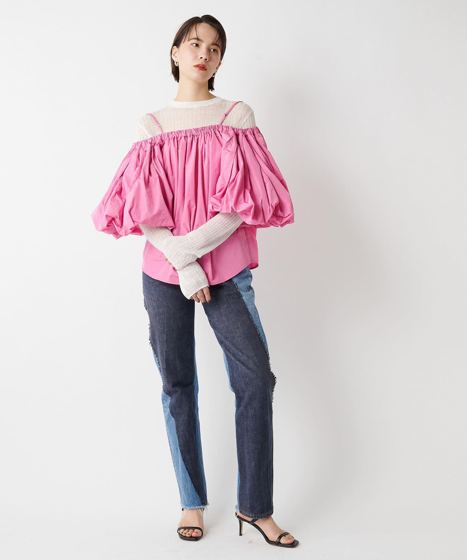 ■大胆なボリュームスリーブが目を惹くオフショルダーブラウス。
