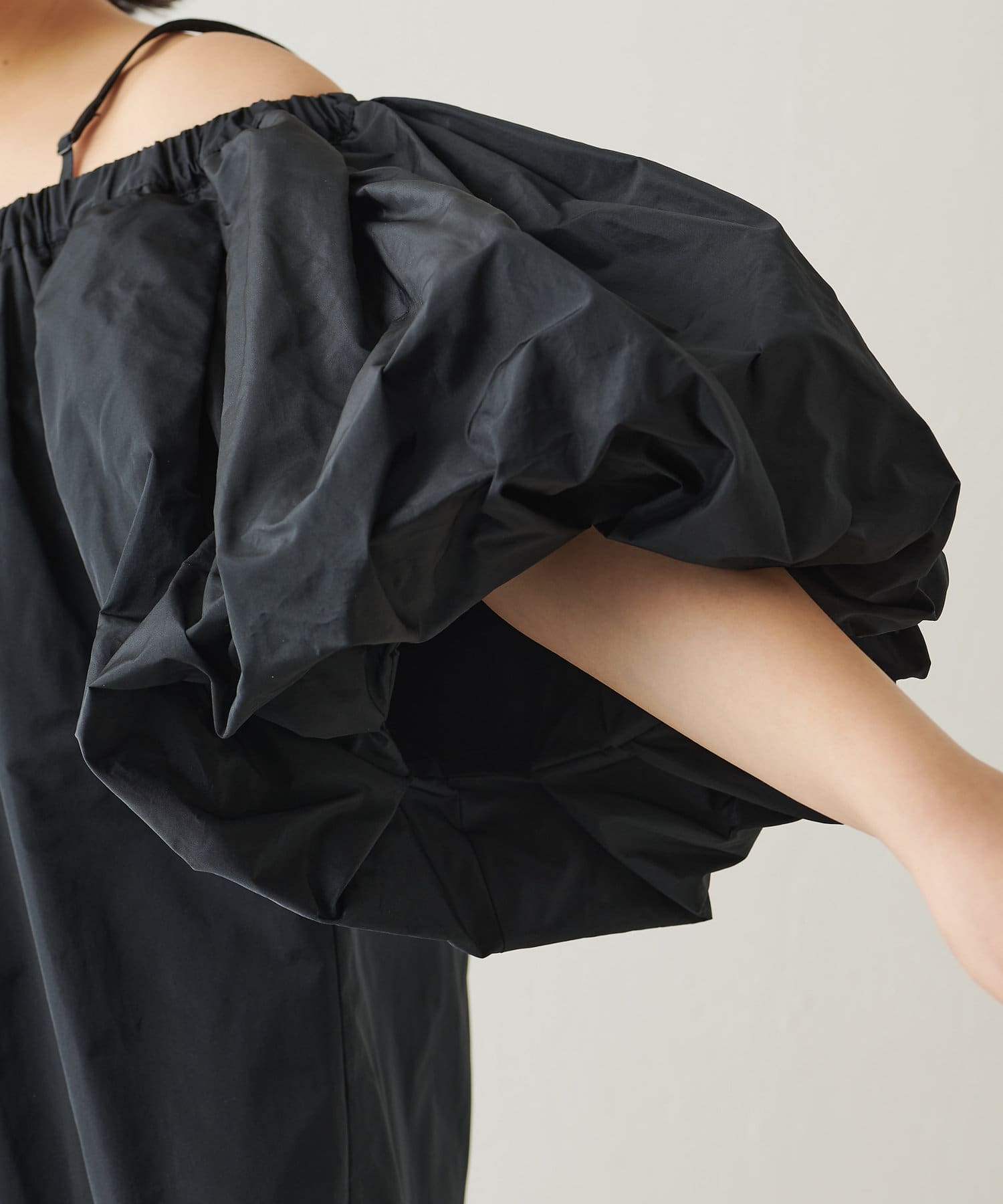 ■程よくハリ感と光沢感のあるライトなタフタ素材が袖のシルエットをきれいに演出。