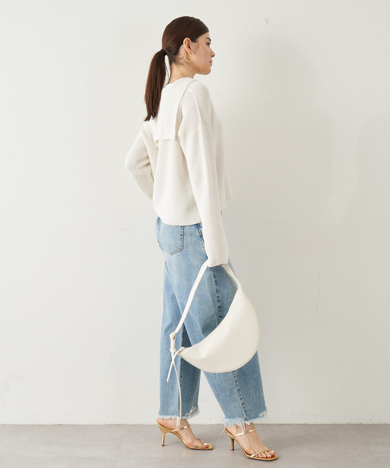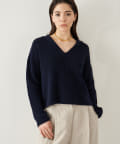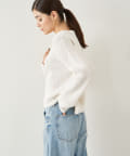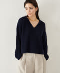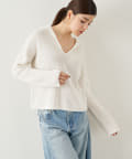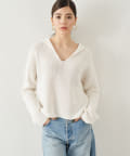 ■身頃から編み続きの衿は接ぎがないので少し抜いて着ても女性らしいニュアンスが出るアイテム。