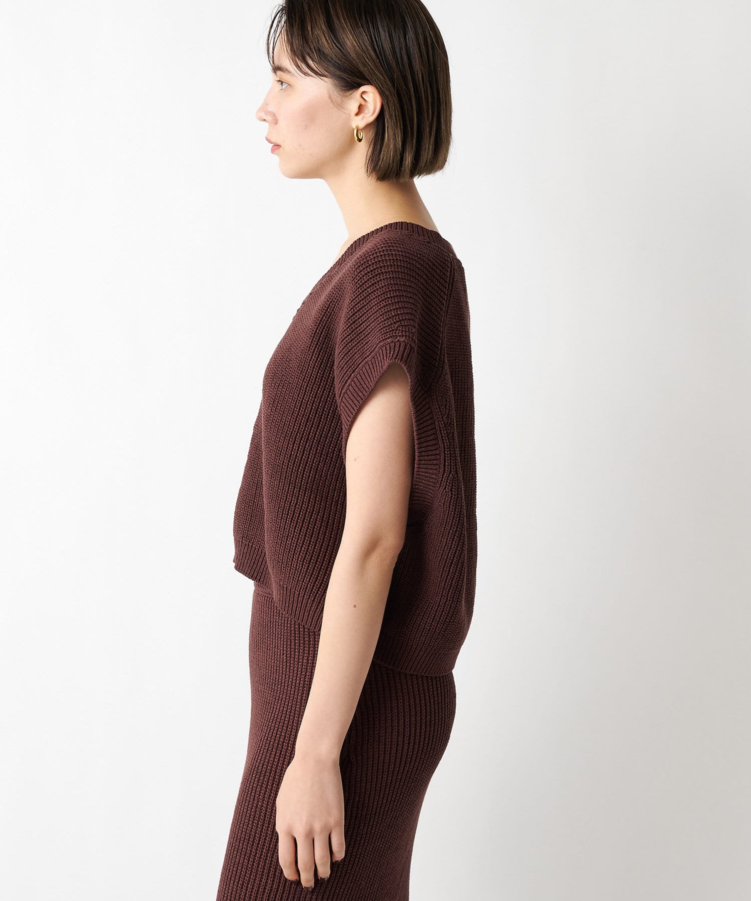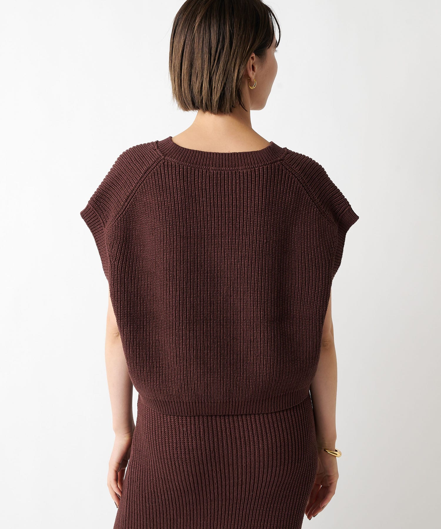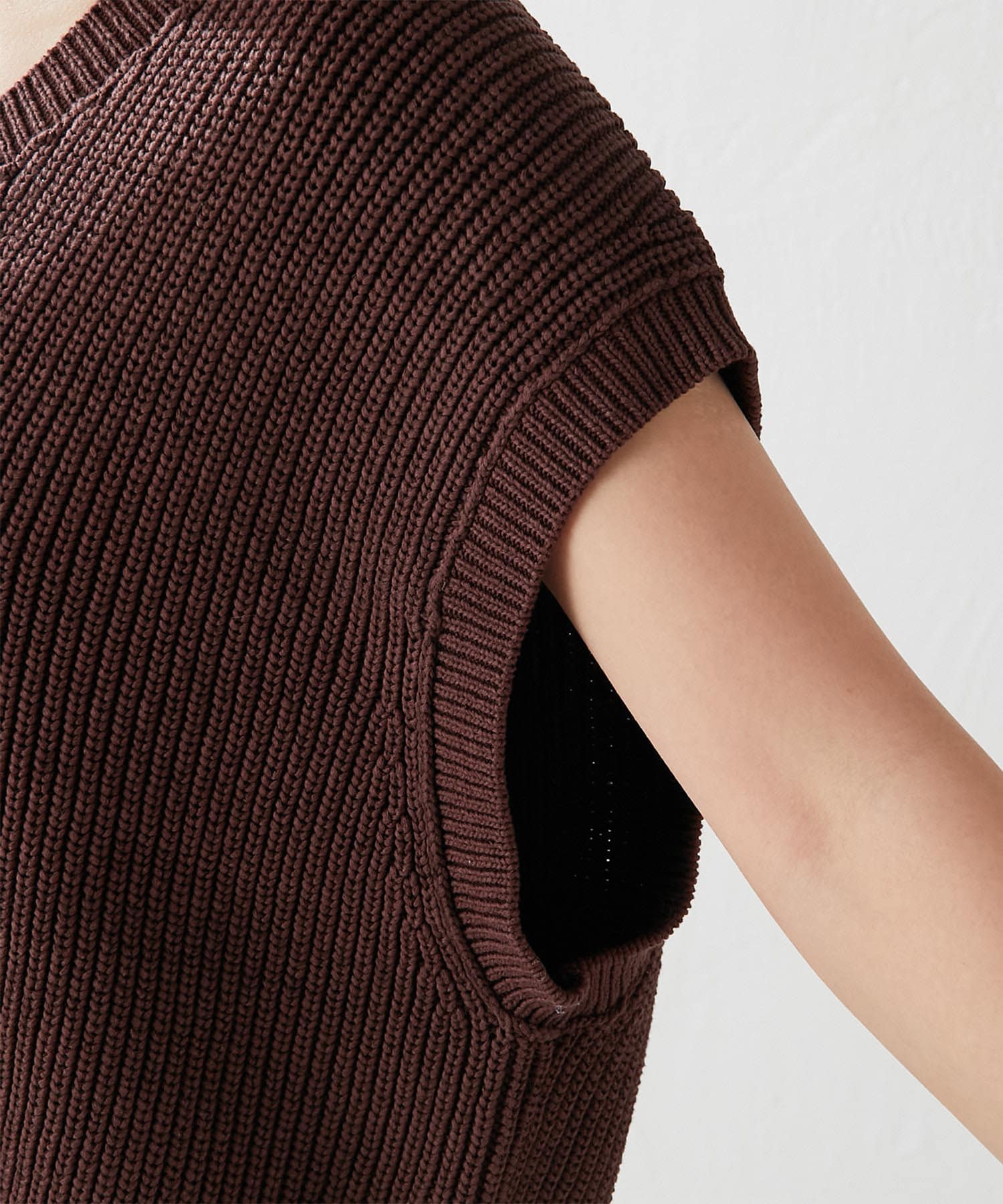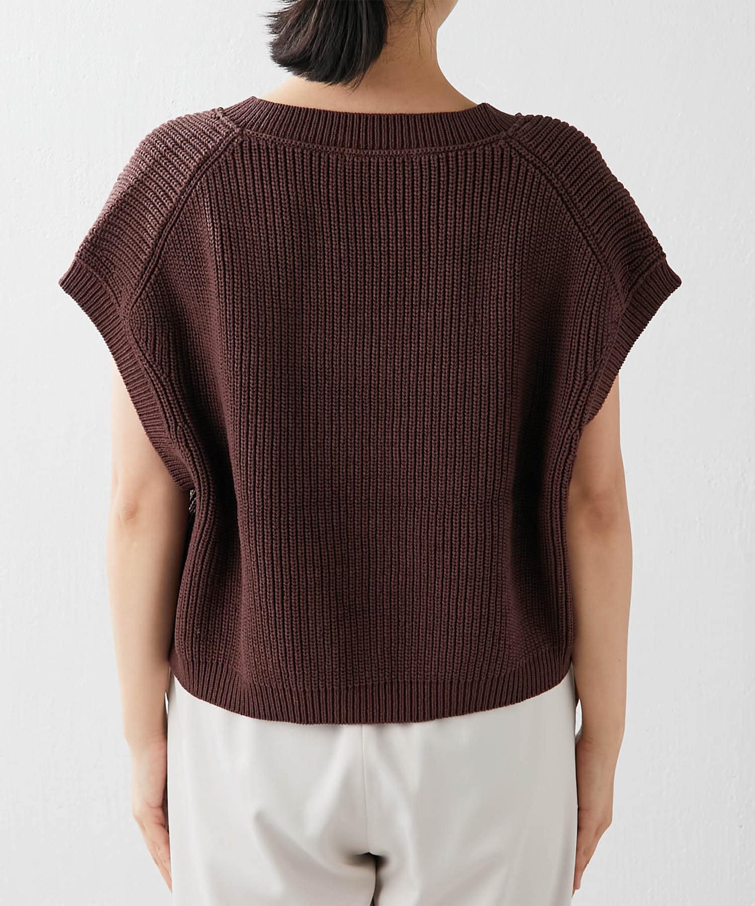■畦編みにより表情を持たせたローゲージニットベスト。
