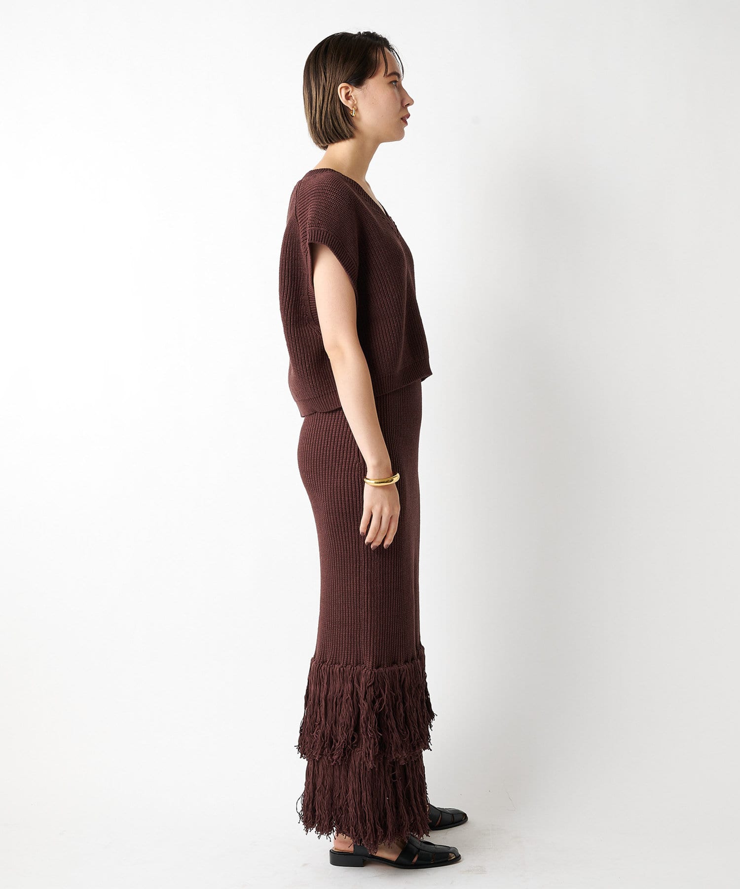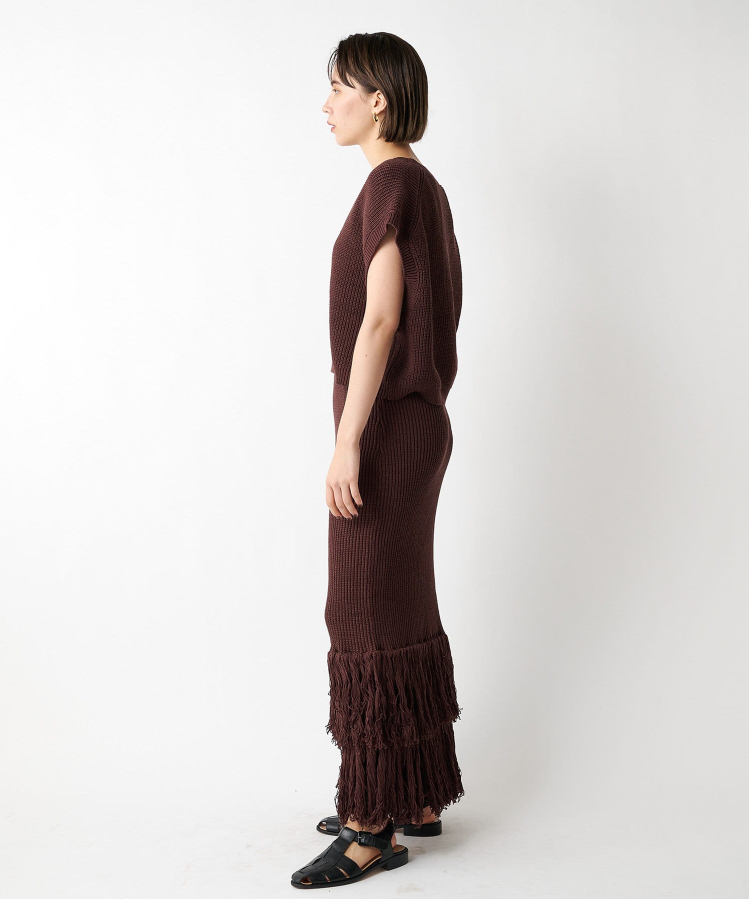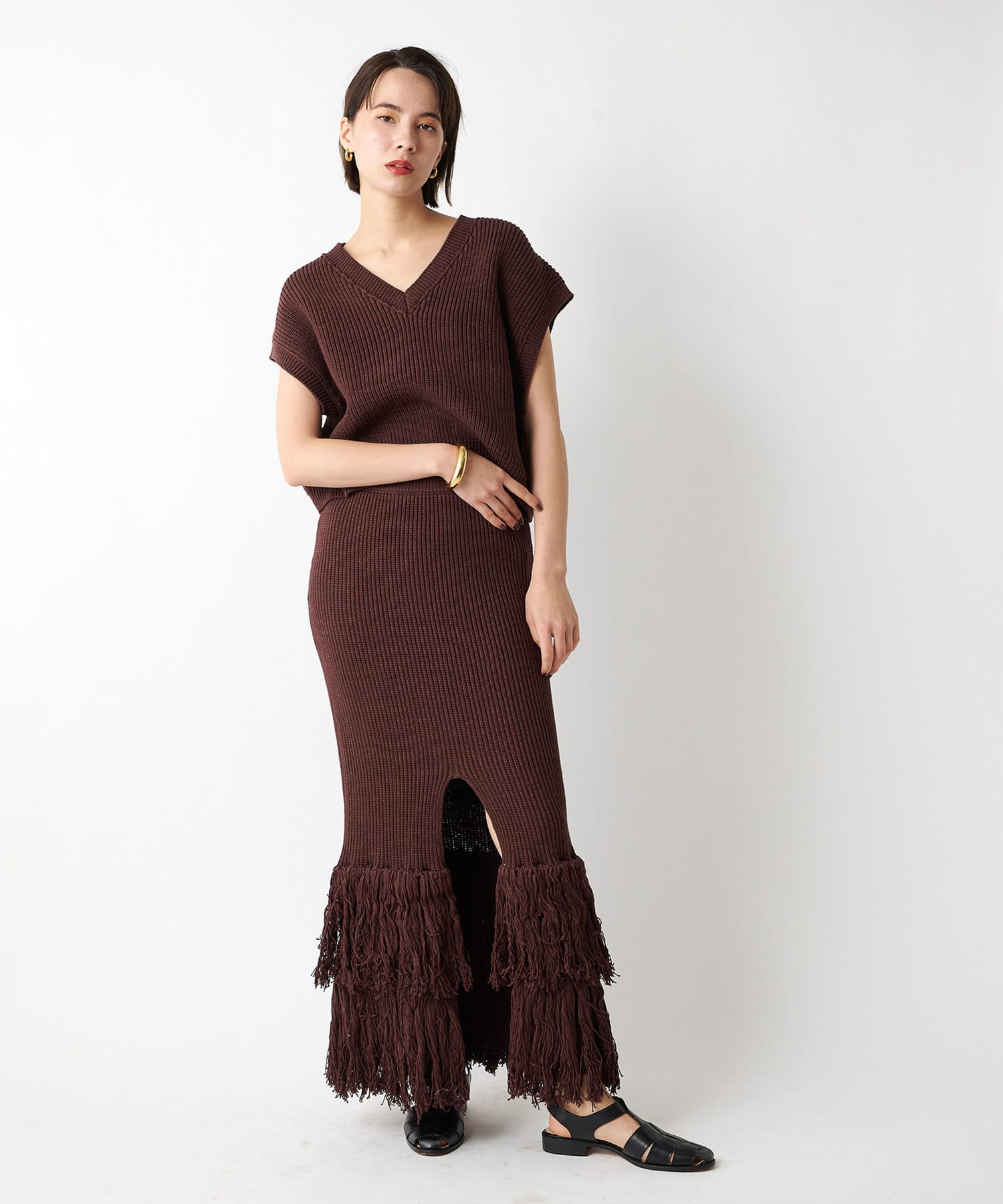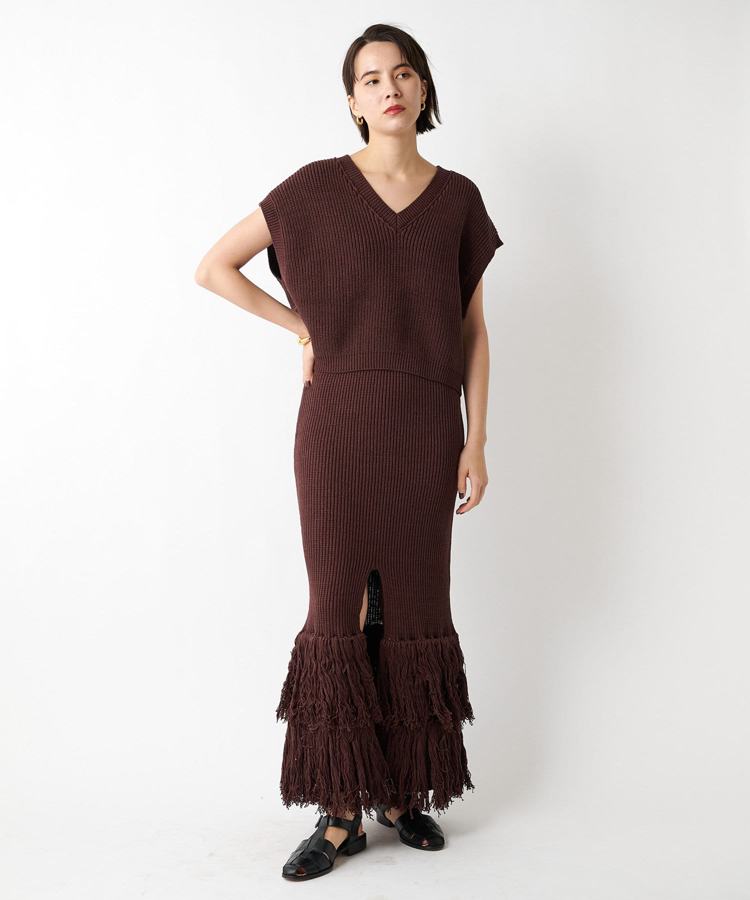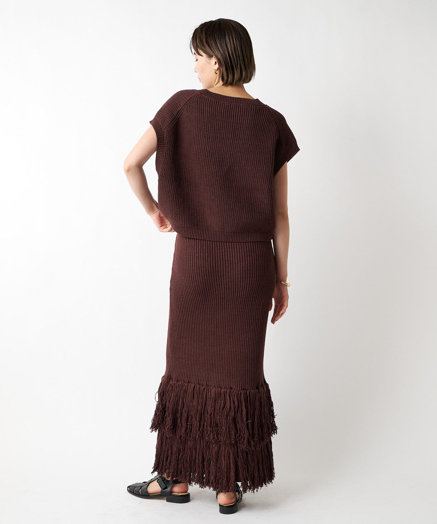 ■畦編みにより表情を持たせたローゲージニットベスト。