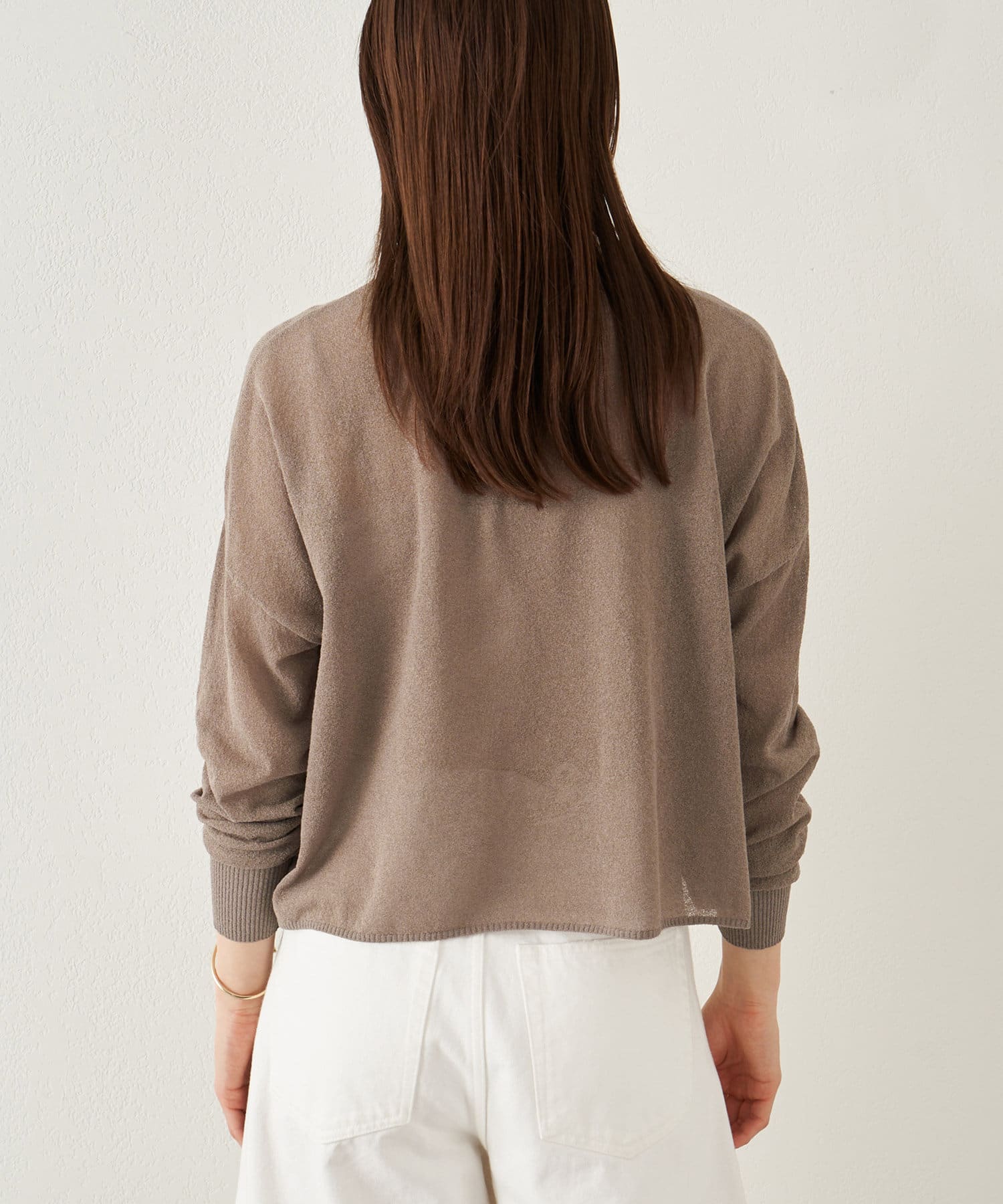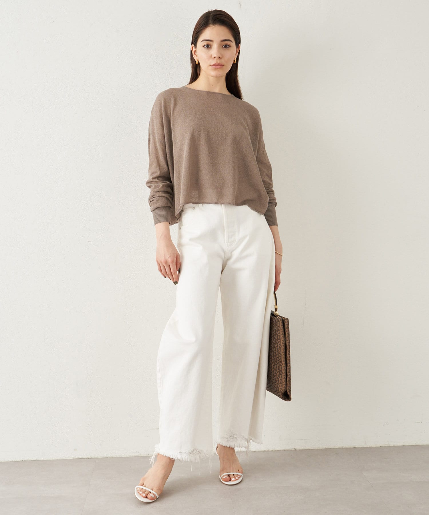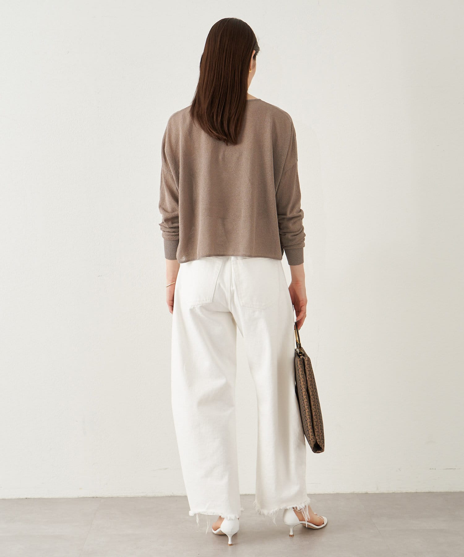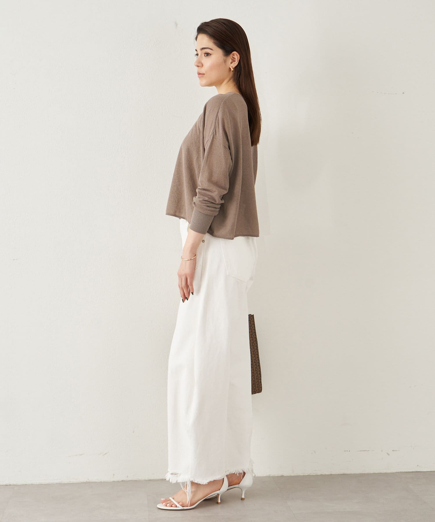 ■すっきりとしたネックラインや短めの着丈で重たくならずに軽やかに楽しめる一枚。