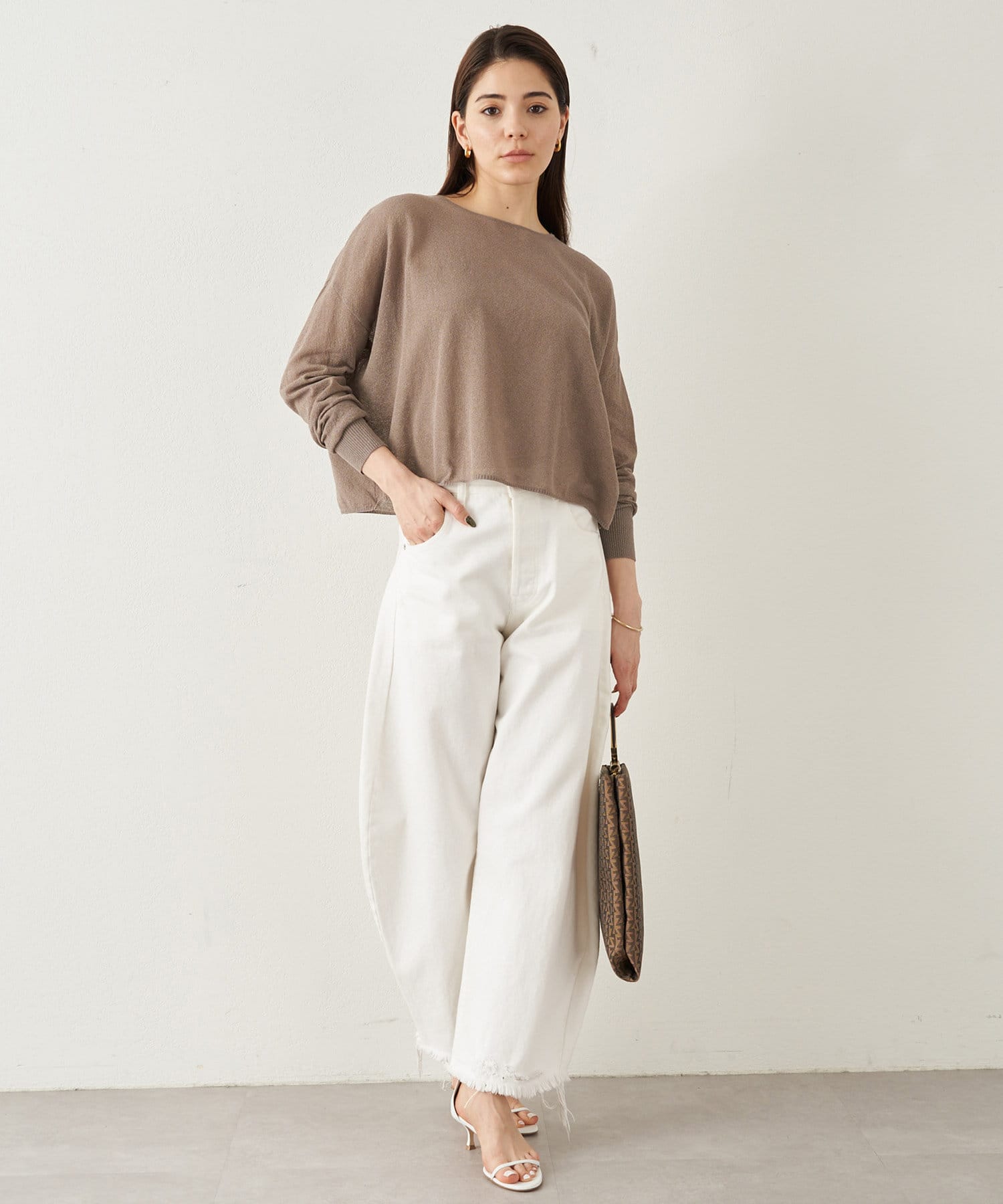 ■ワイドなシルエットとドライタッチがポイントのニットプルオーバー。