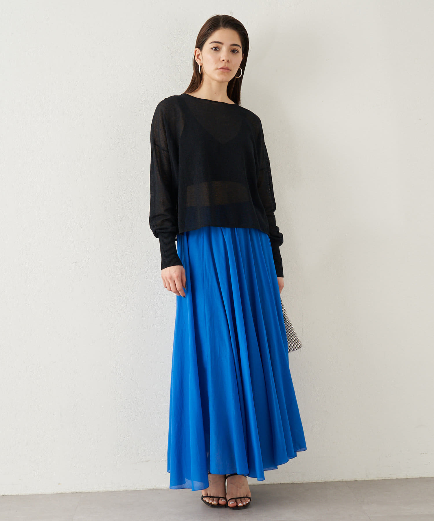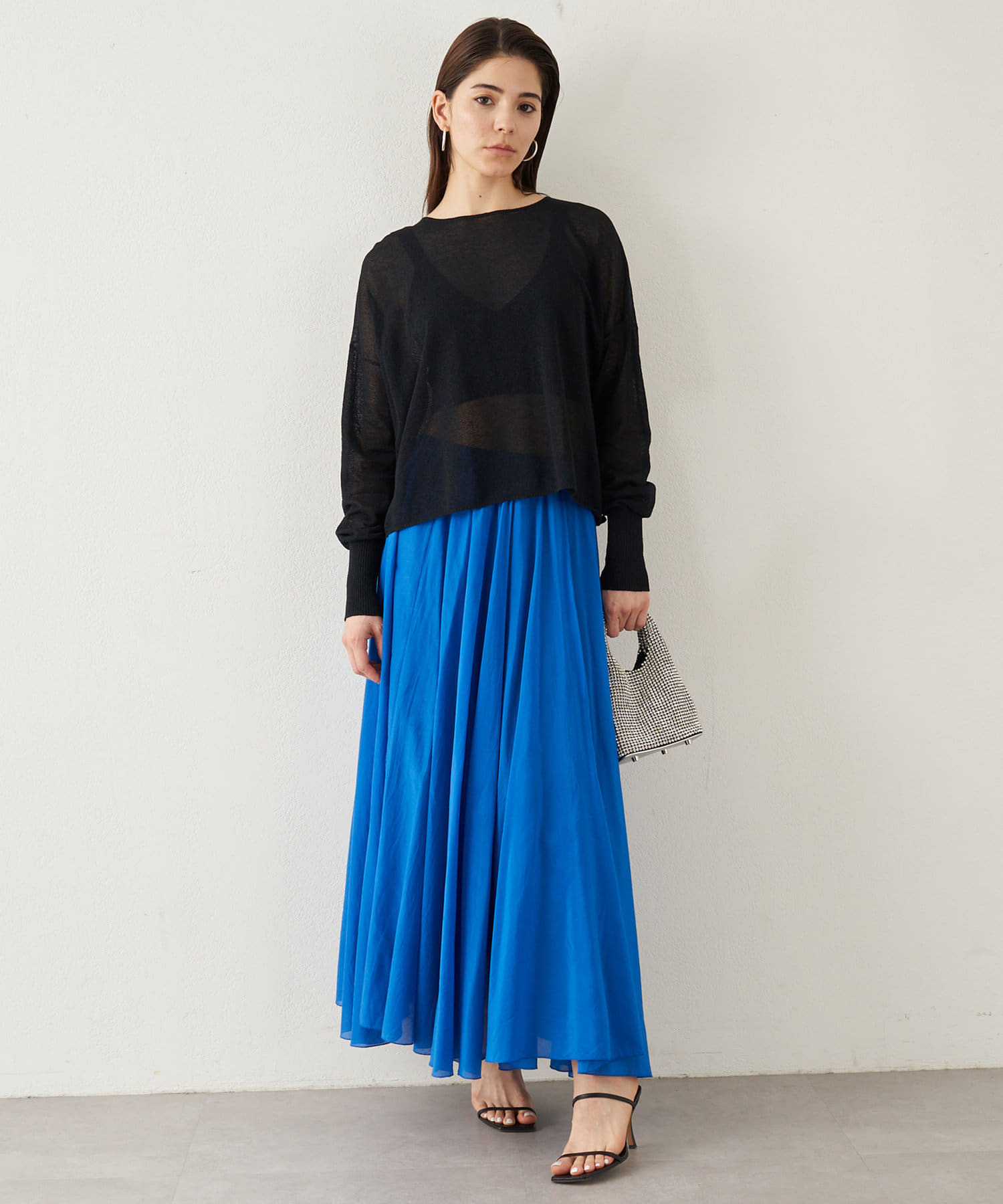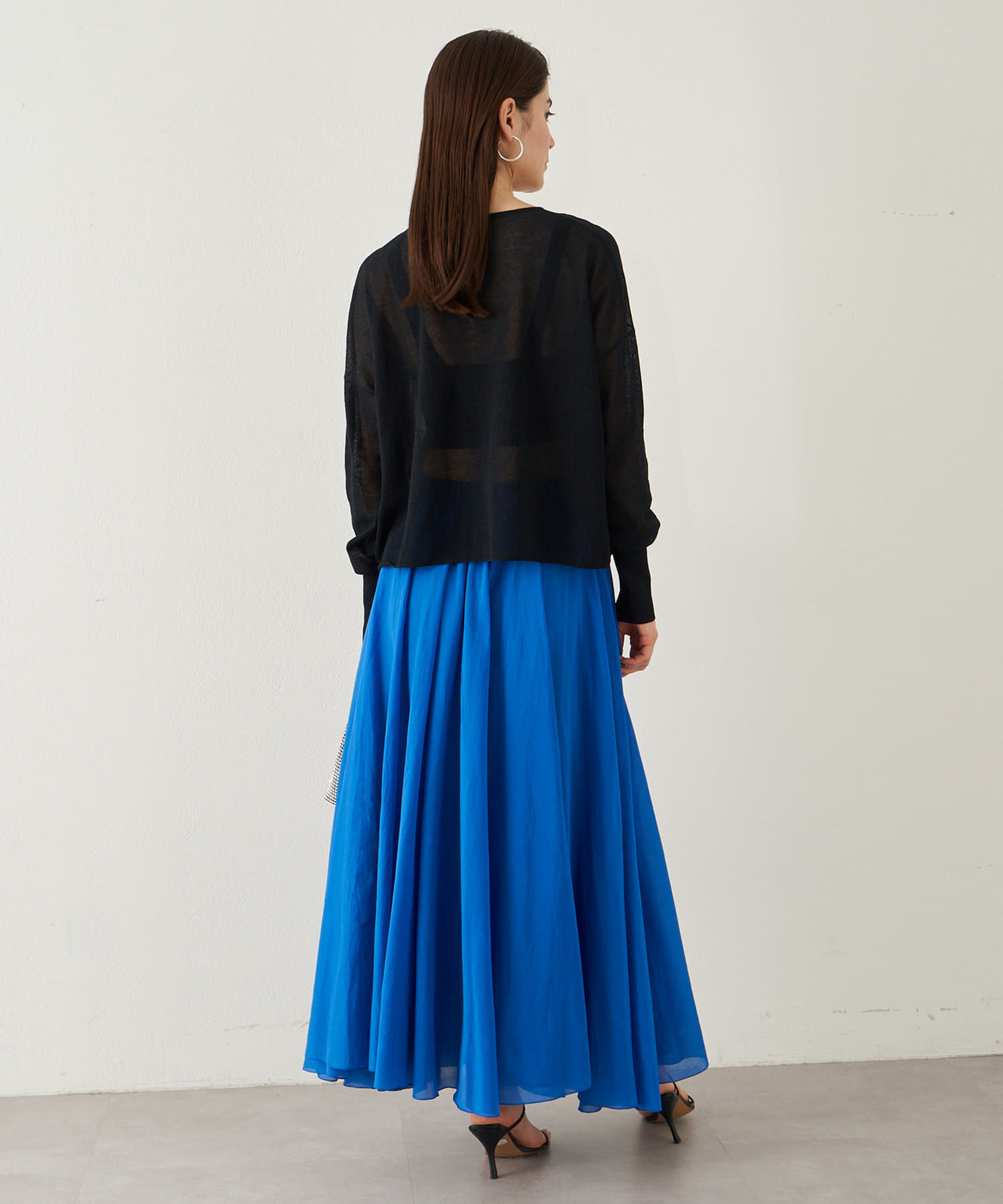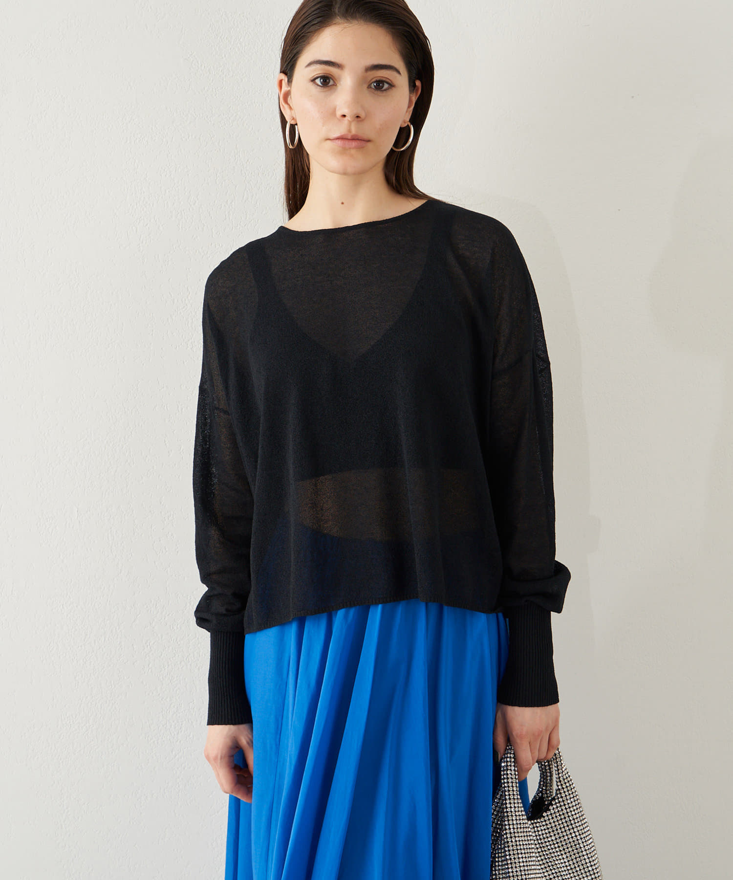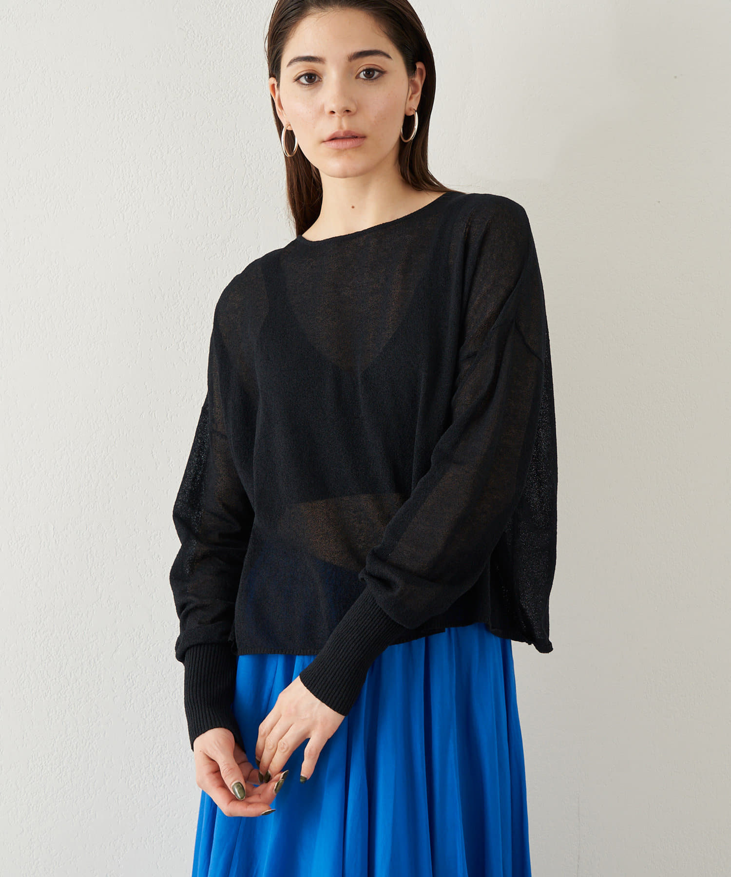 ■肩を落としたリラックス感のあるシルエットと上品な透け感が女性らしいデザイン。