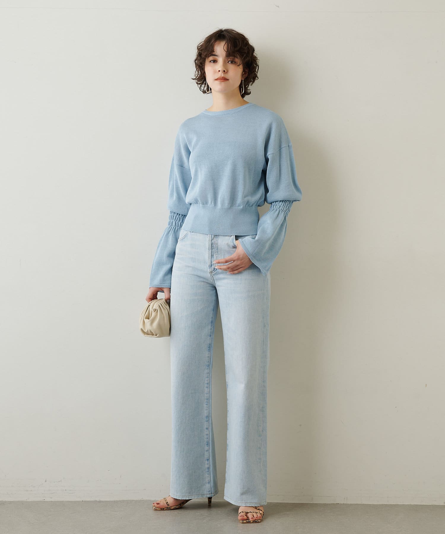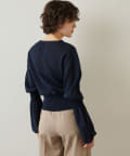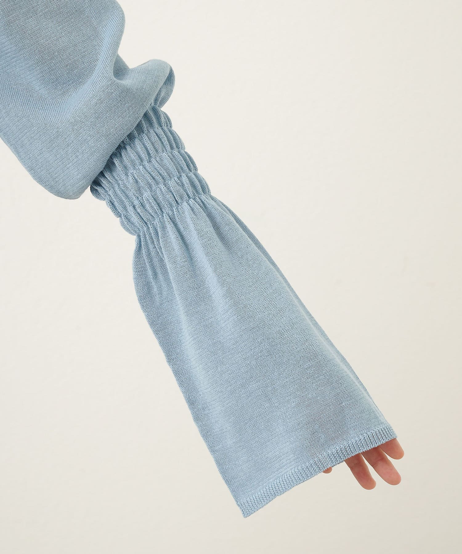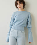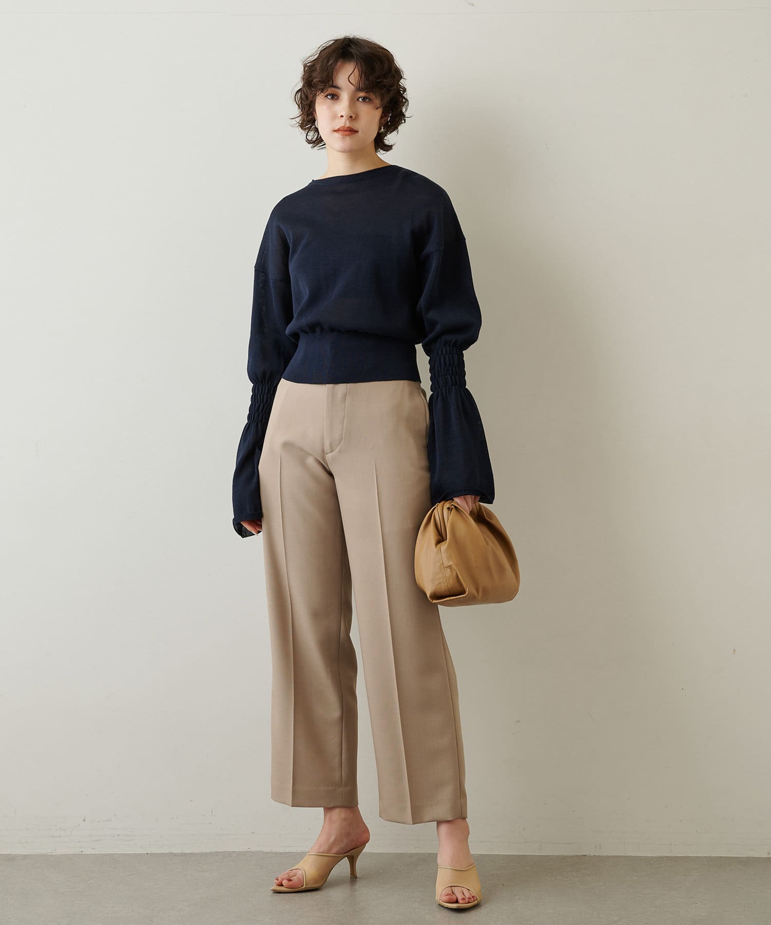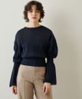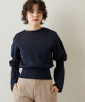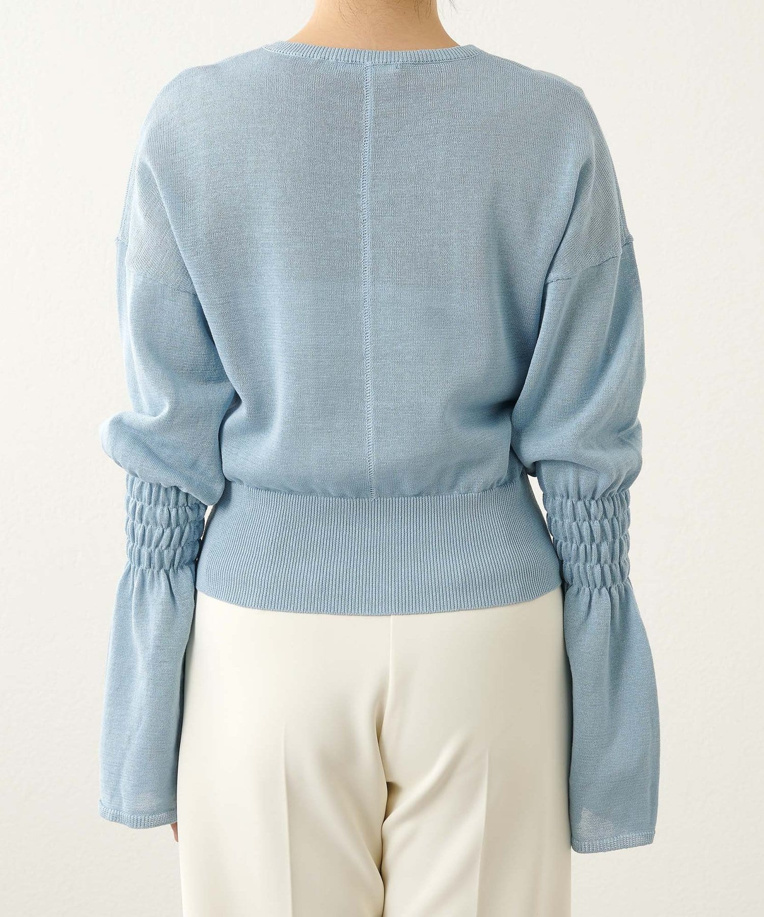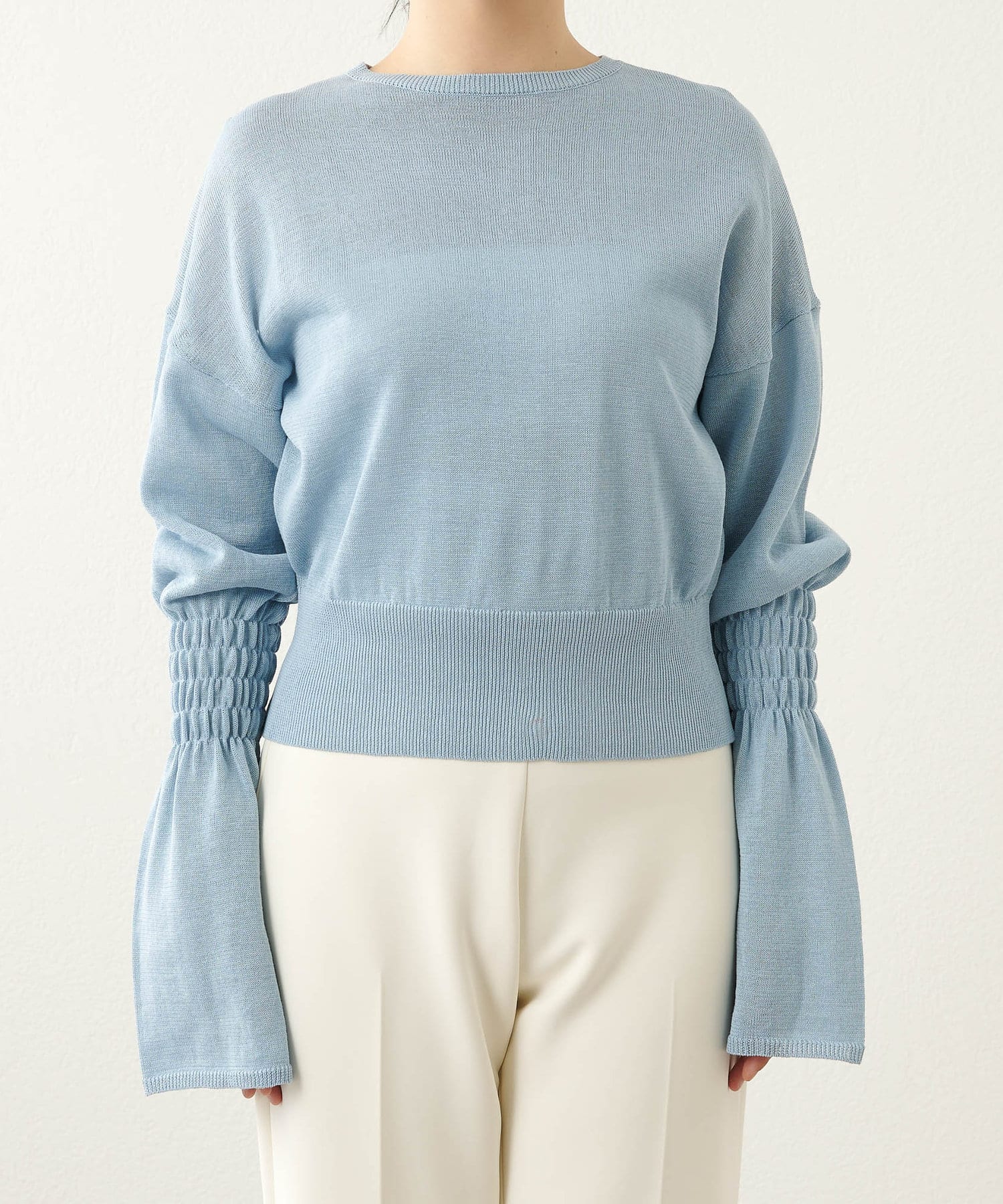 ■袖のシャーリングデザインがポイントのニットプルオーバー。