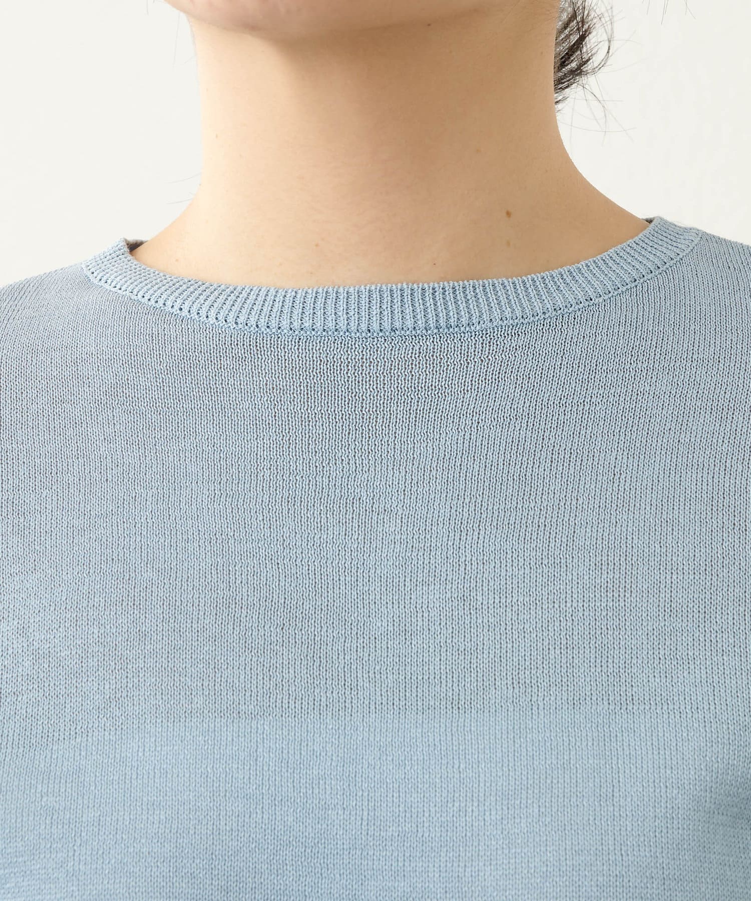 綿100%の糸に特殊なギマ加工を施し、麻のような清涼感を持たせたニット素材。