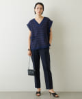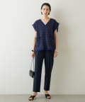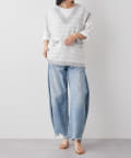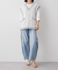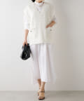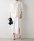 ざっくり一枚で半袖ニットとして着こなせば、まだまだ季節長く愛用できます。ワントーンコーディネートで爽やかに着こなしたスタイリングもおすすめです。顔周りが明るくなるオフホワイトを着用しています。