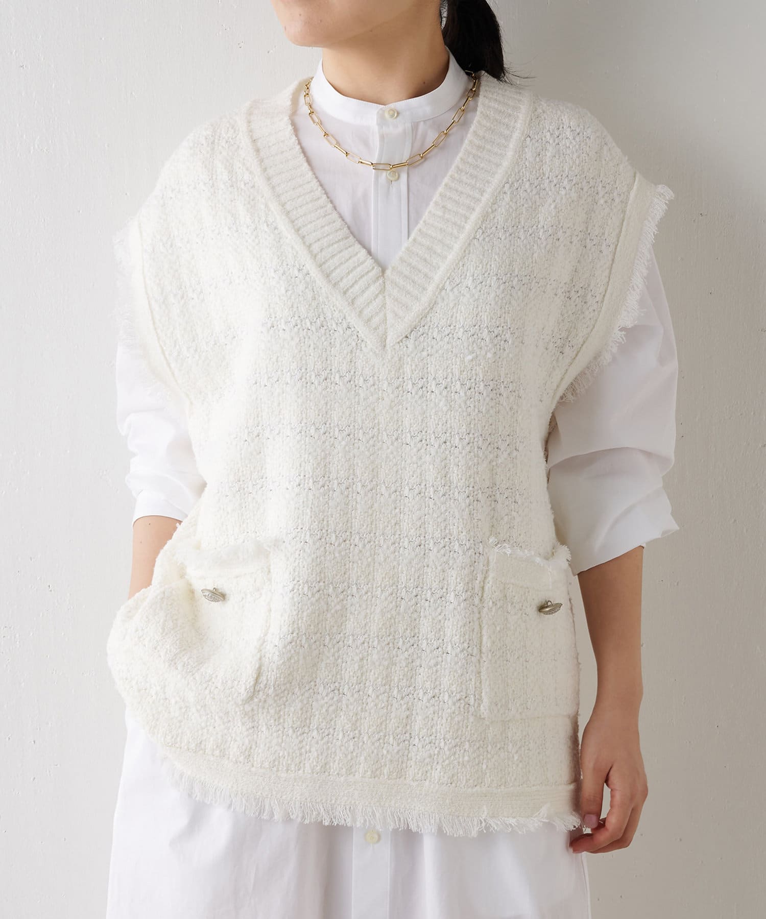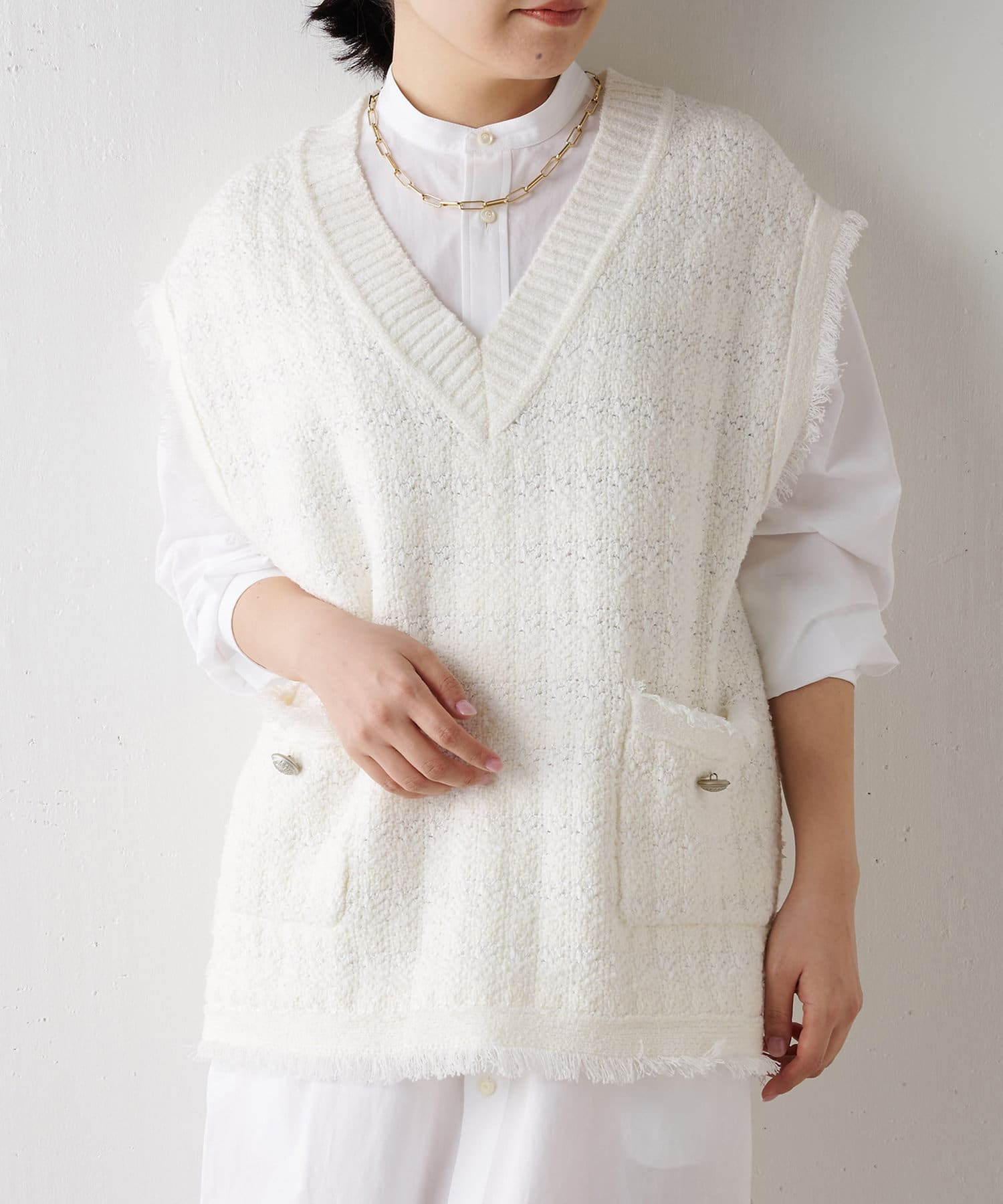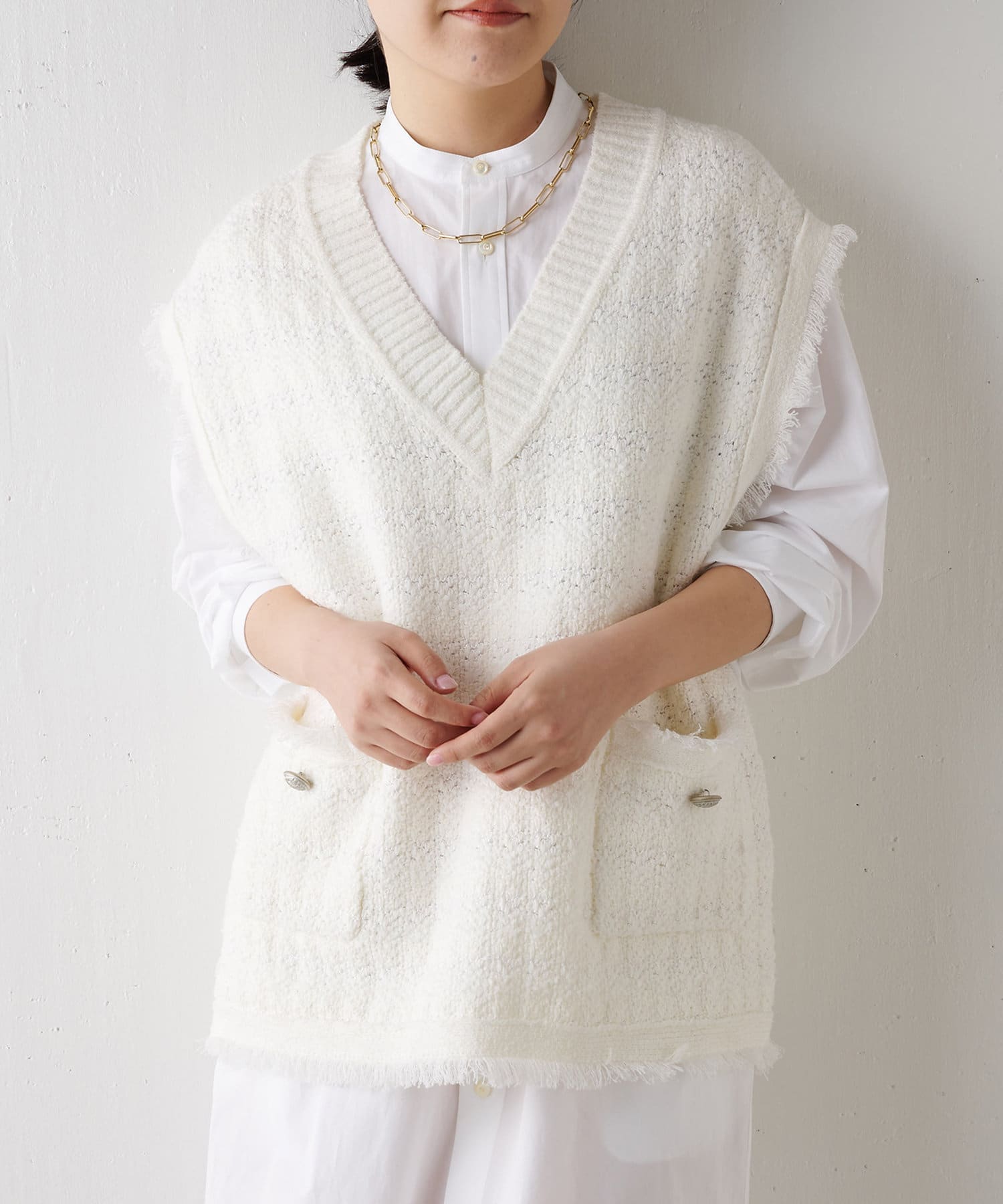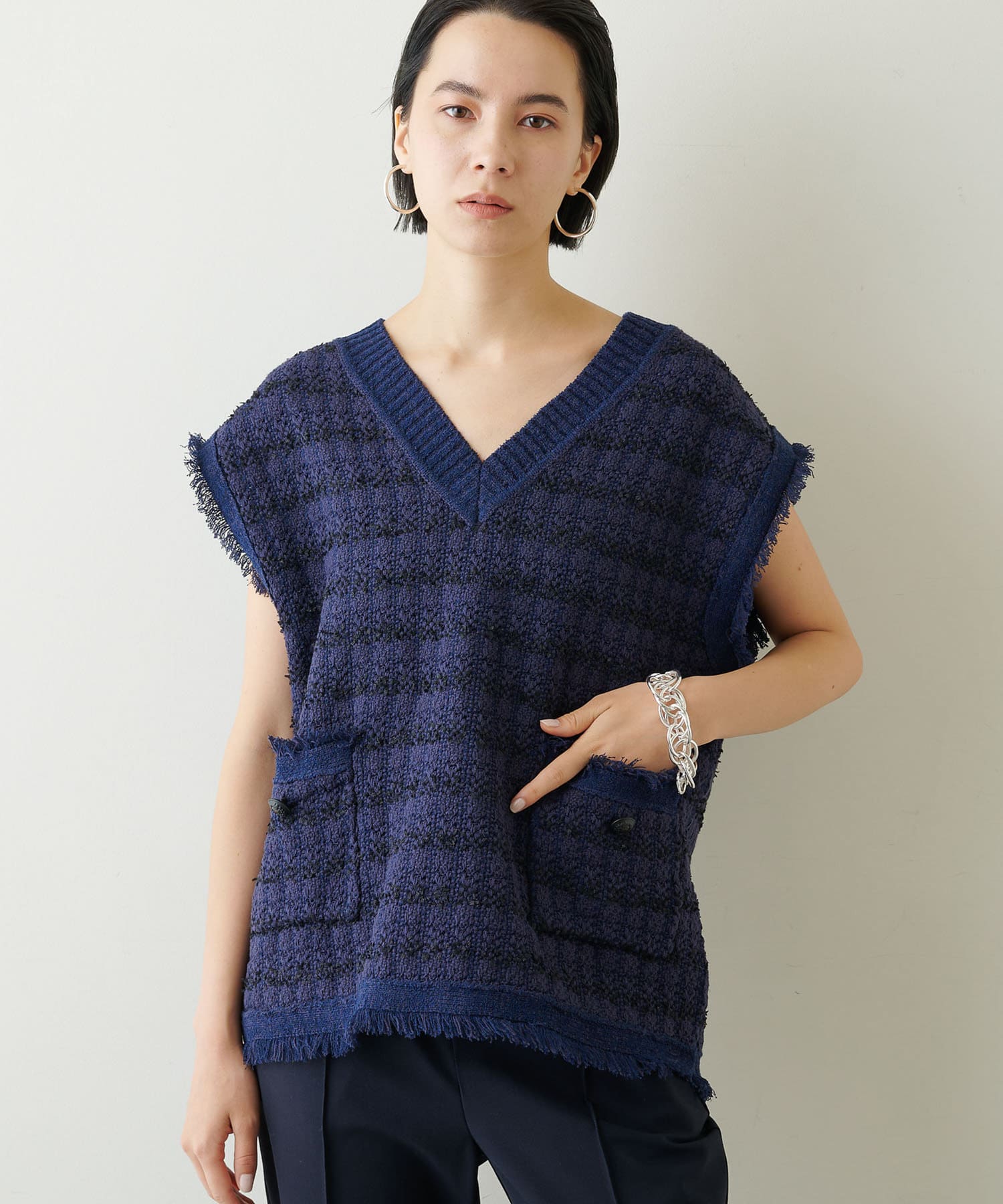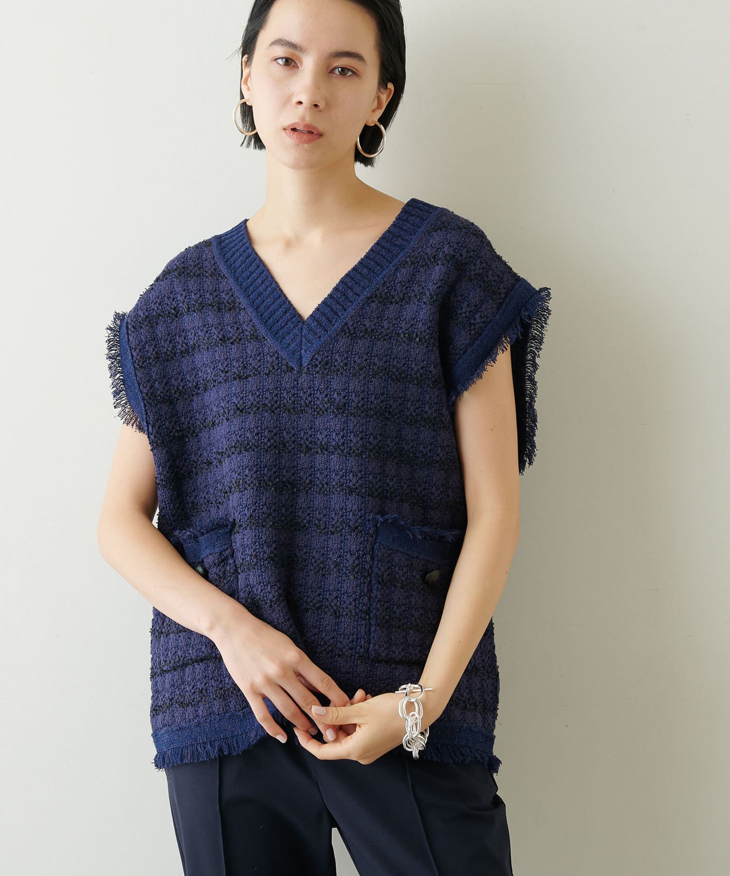 旬のスタイルを幅広く楽しめるツイードニットベスト