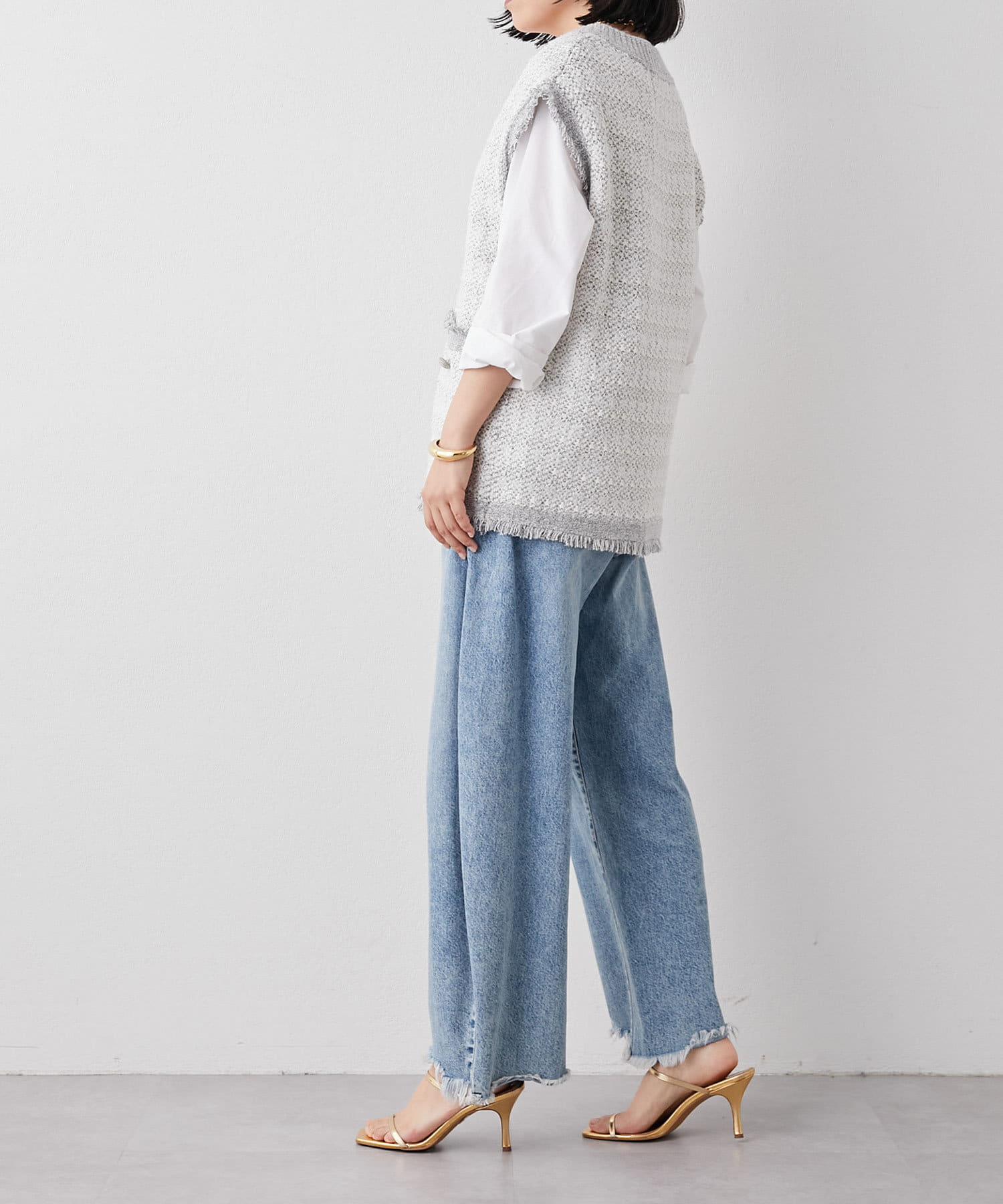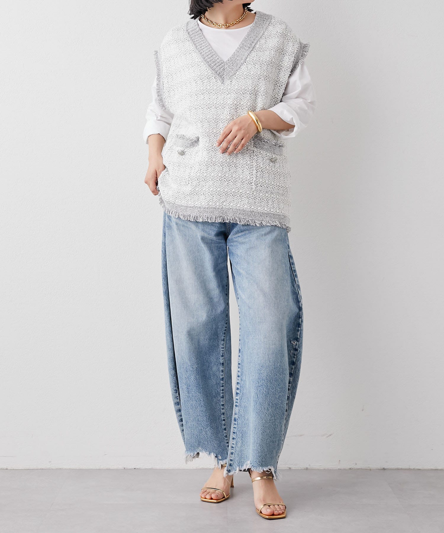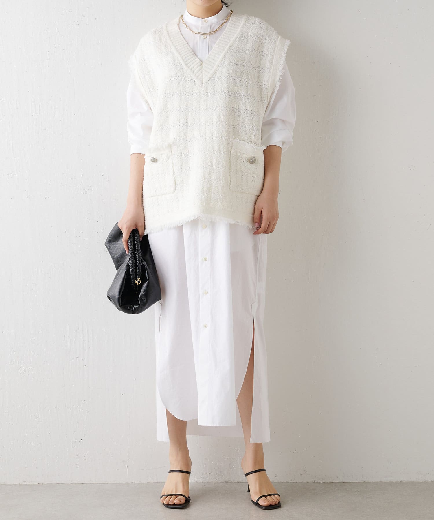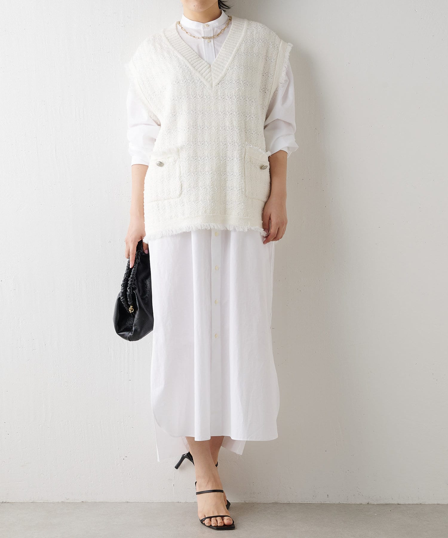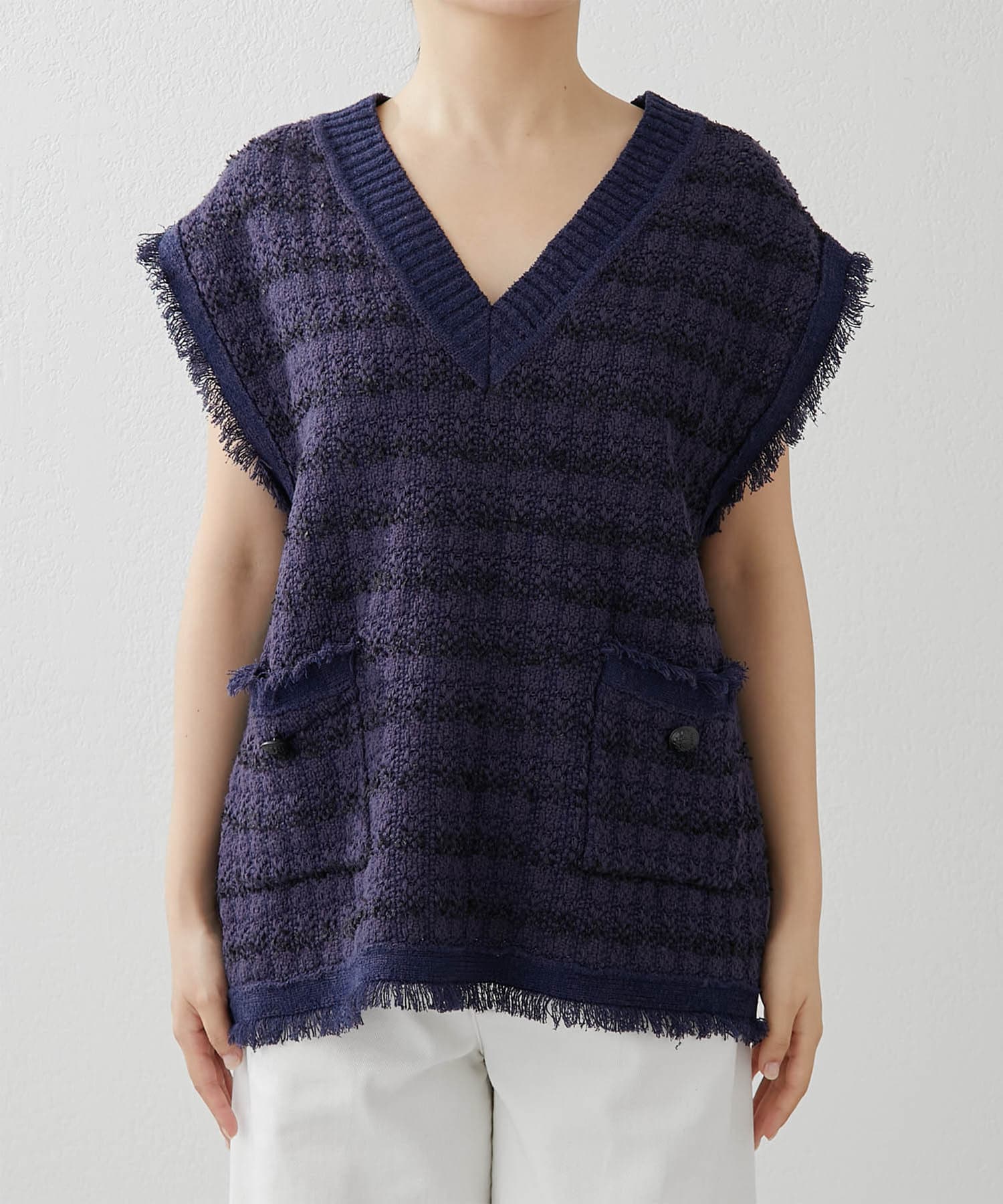 旬のスタイルを幅広く楽しめるツイードニットベスト
