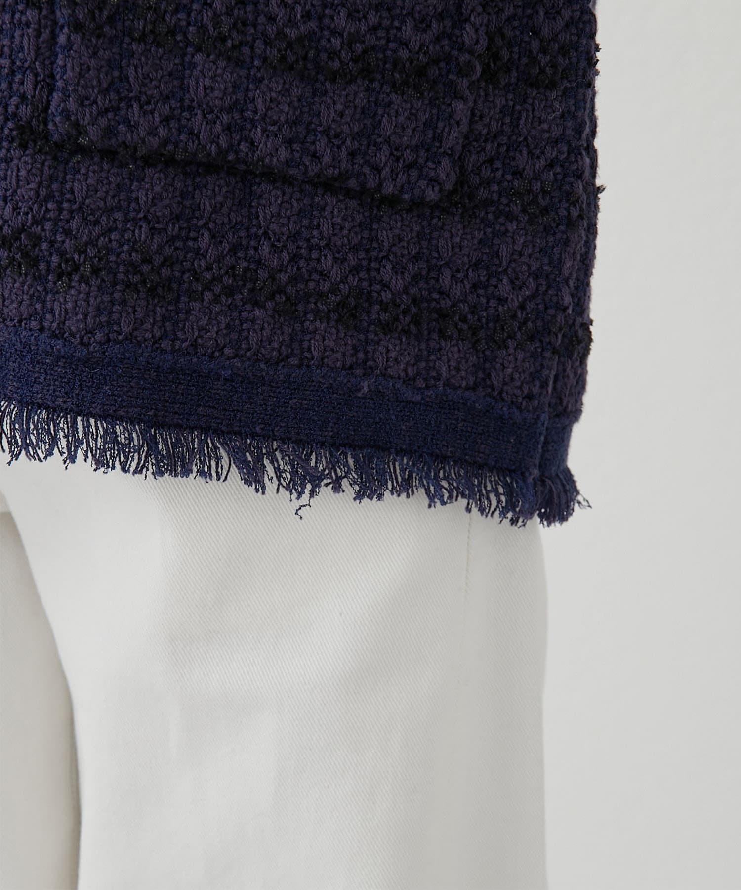 ■袖・ポケット口・裾をフリンジにすることで表情を出し抜け感をプラス。