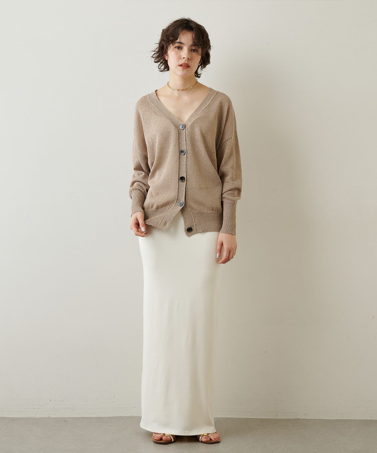 ■深めのVネックでインナー見せも楽しめるニットカーディガン。