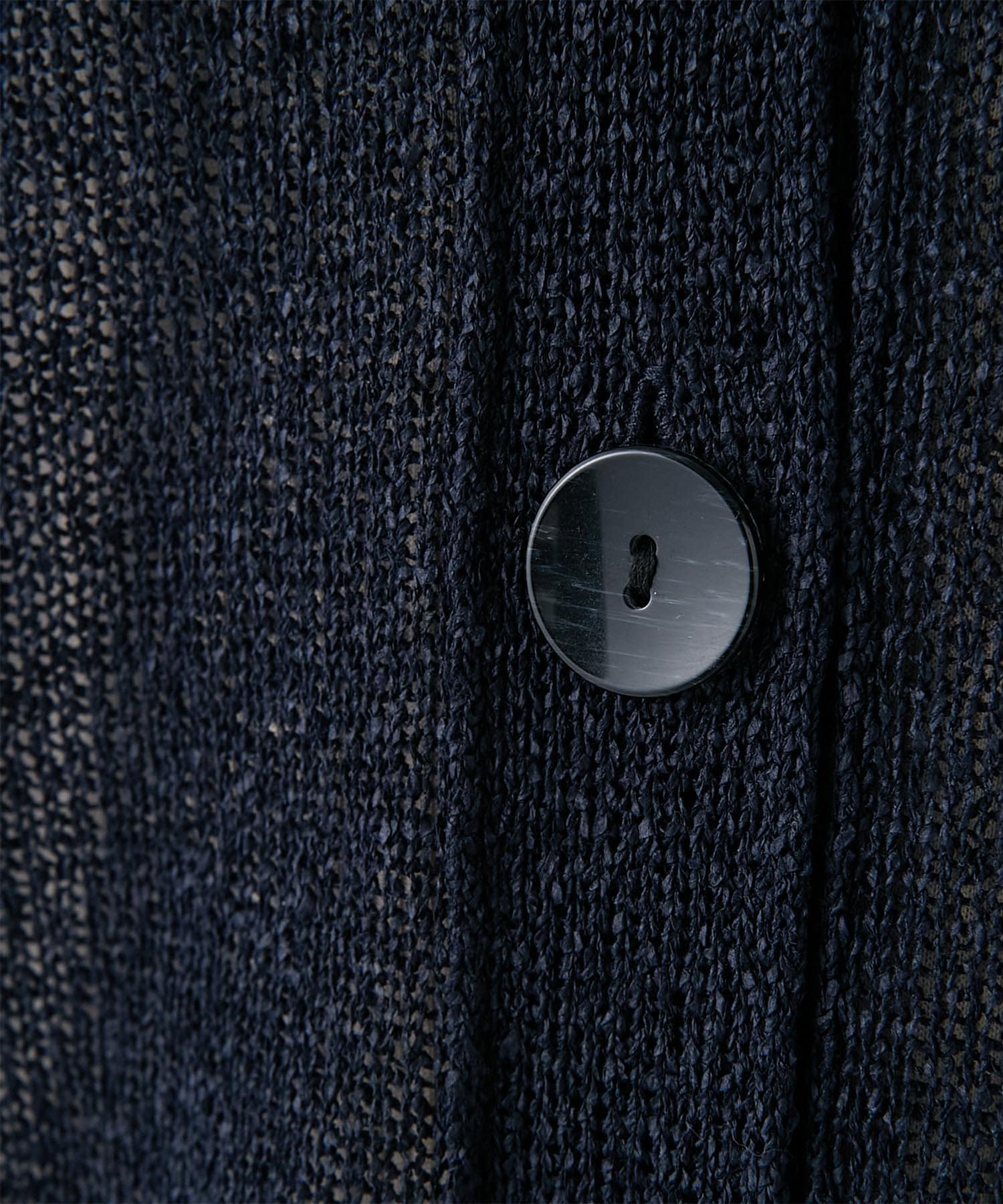 ■ボタンを留めてプルオーバーのように楽しんだり、季節の変わり目の軽羽織りとしても重宝する着回しアイテム。