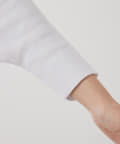 コットン100%ながらサラッとしたドライな肌触りです。ゆったりとした身頃に対して袖口は細く、柔かな落ち感のある生地ですっきりとしたシルエットに。少し透けますが殆ど気にならないです。
