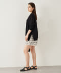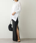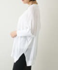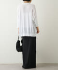 両サイドスリット入りで、パンツスタイルにも相性がいいです。ヒップも隠れる長さ。夏らしいオフホワイトを着用。少し透け感はありますが、上品で涼しげです。
