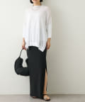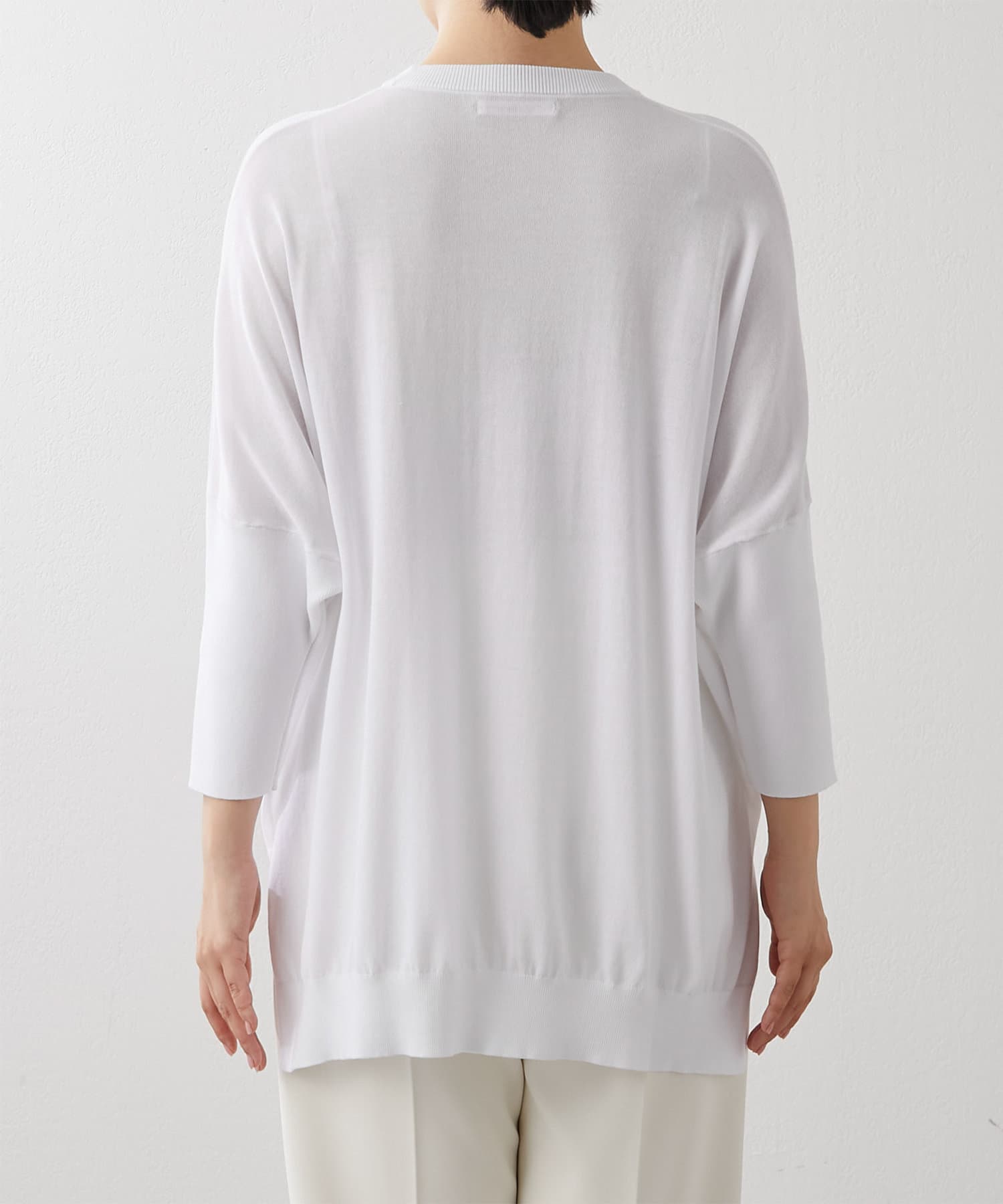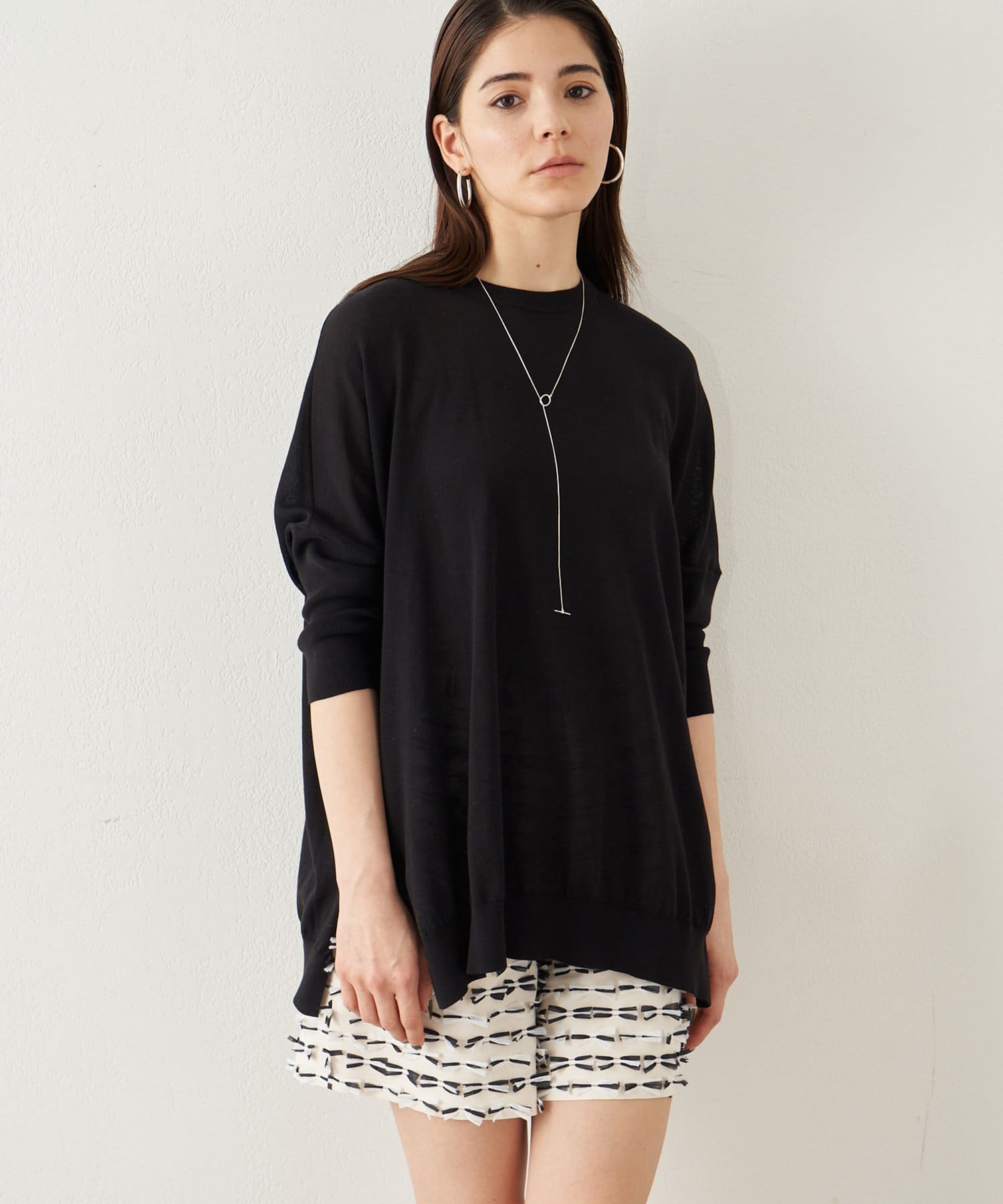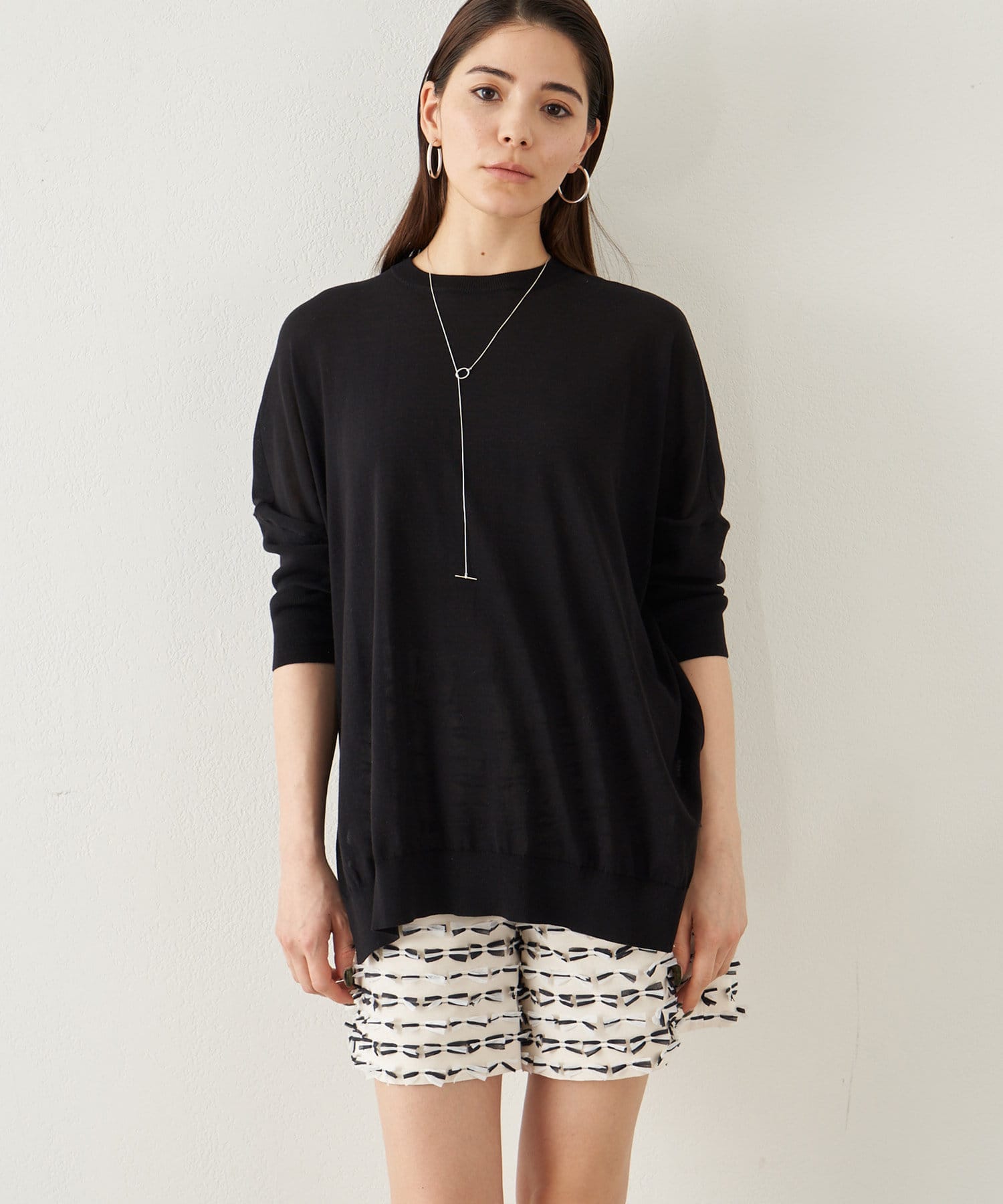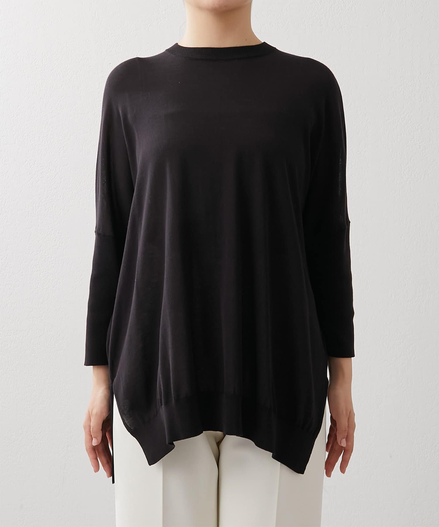■ゆったりとしたスクエアフォルムに、サイドスリットを入れることで抜け感をプラスし、クルーネックで引き締めたデザイン。