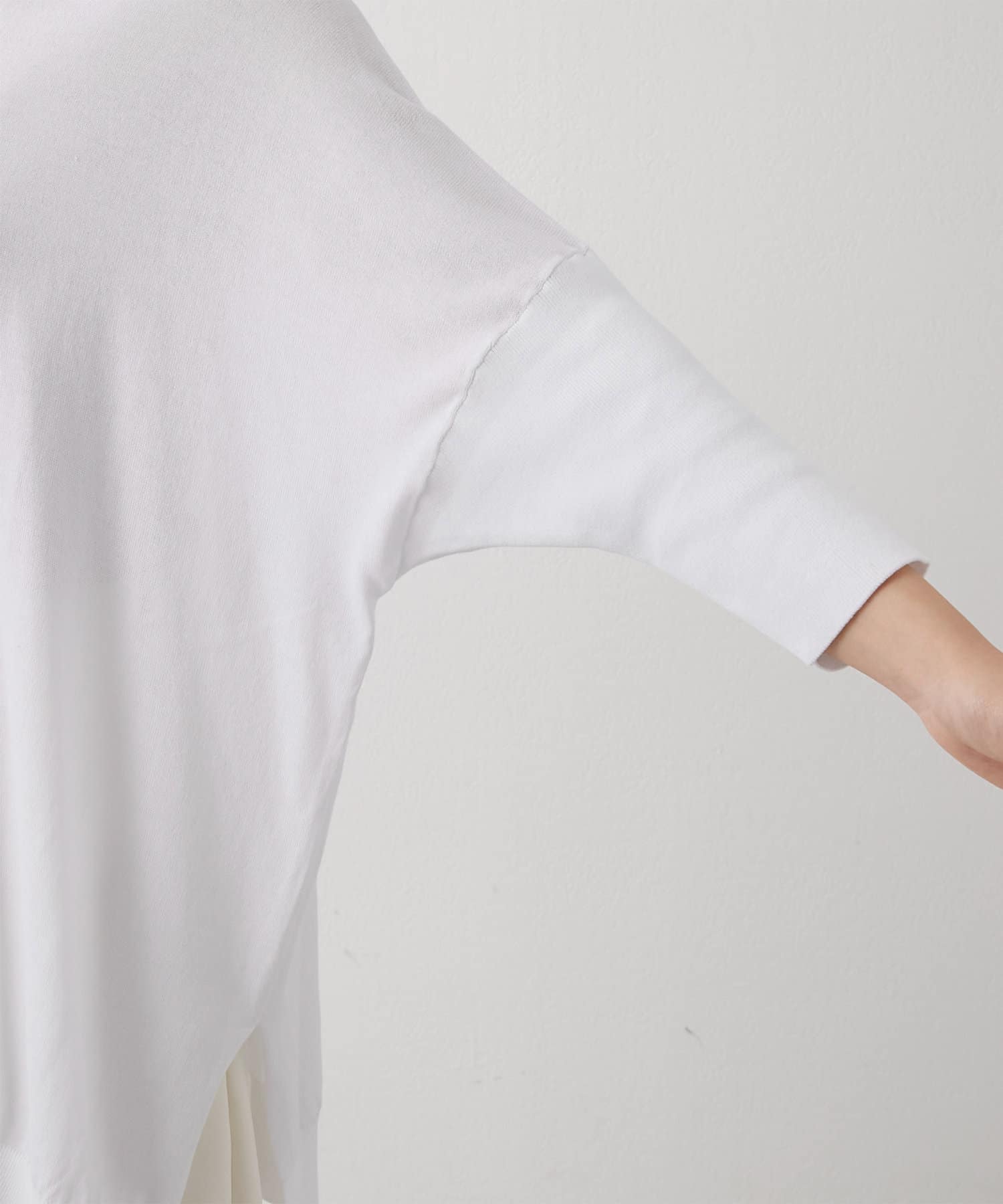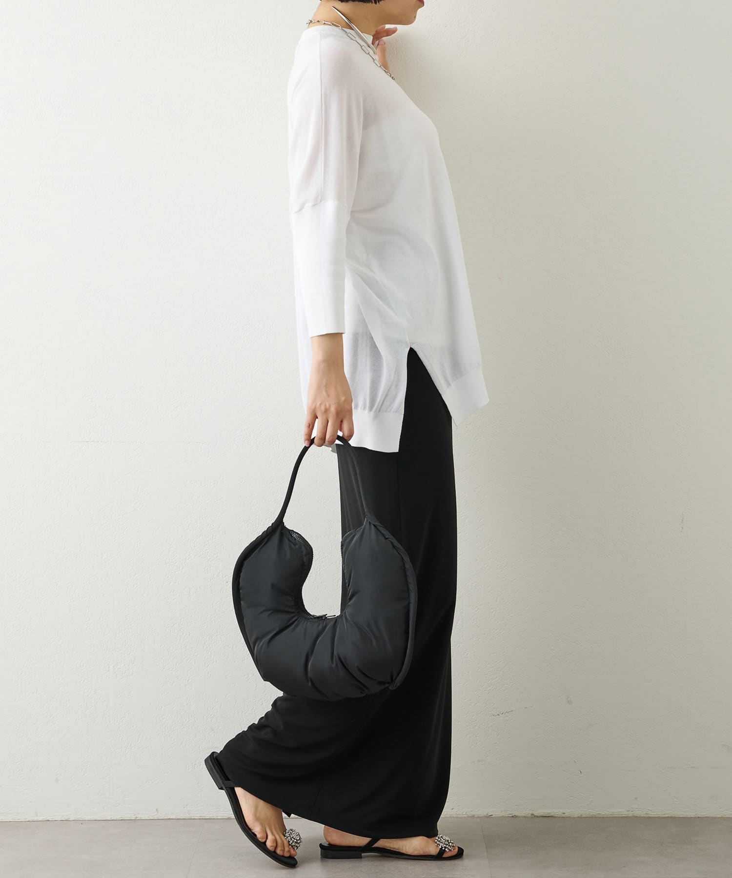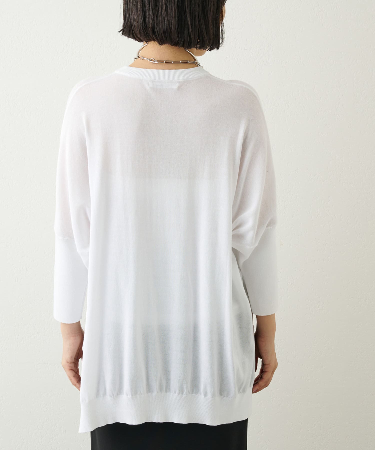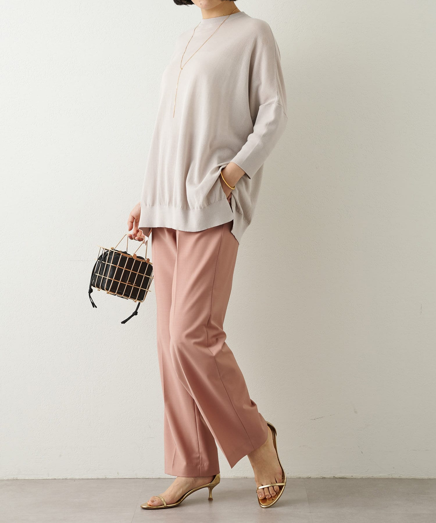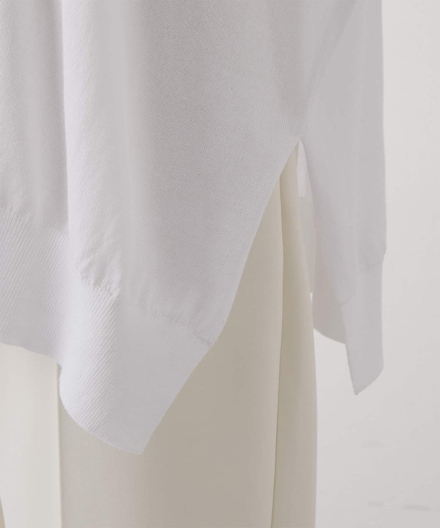 ■ゆったりとしたスクエアフォルムに、サイドスリットを入れることで抜け感をプラスし、クルーネックで引き締めたデザイン。