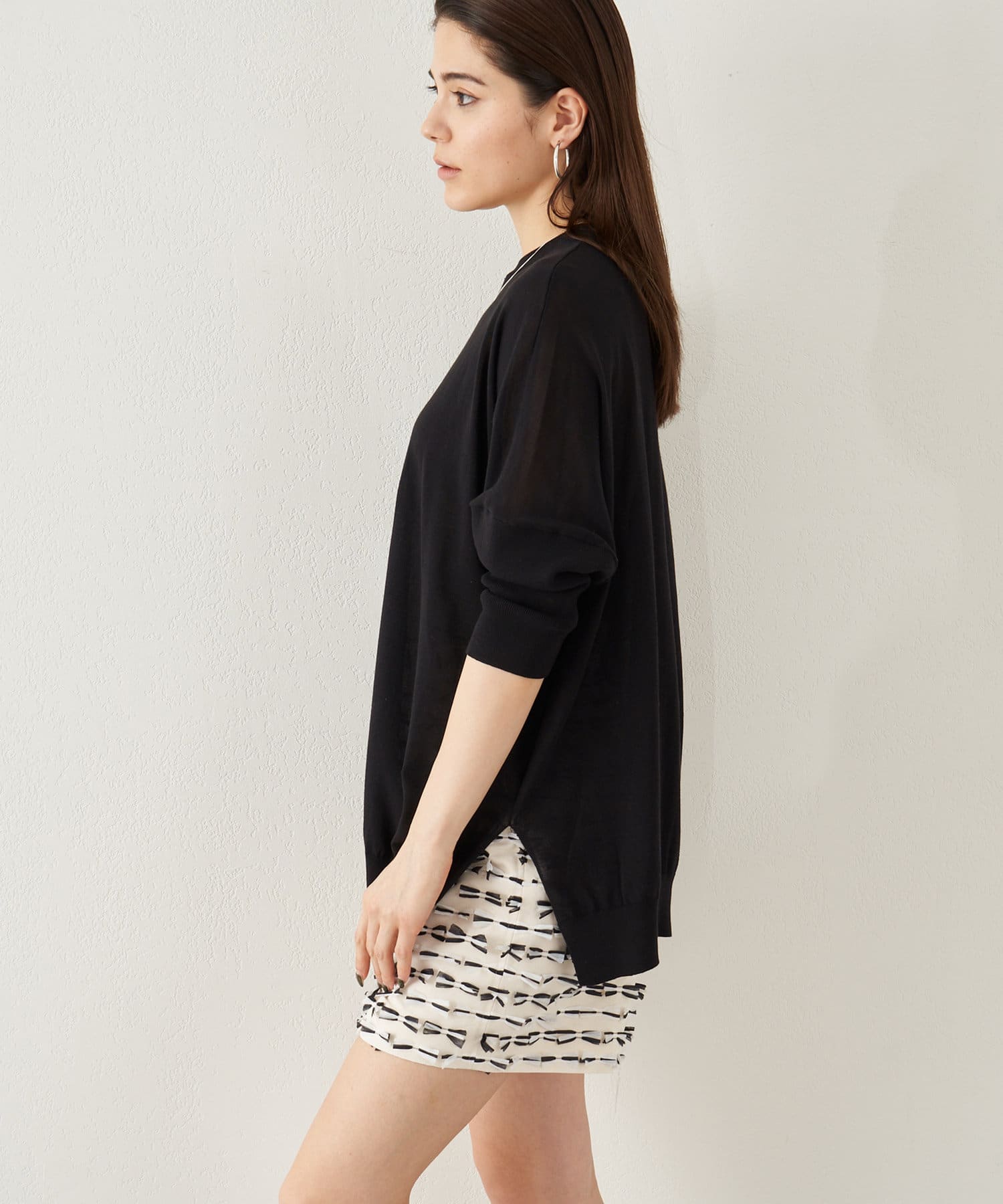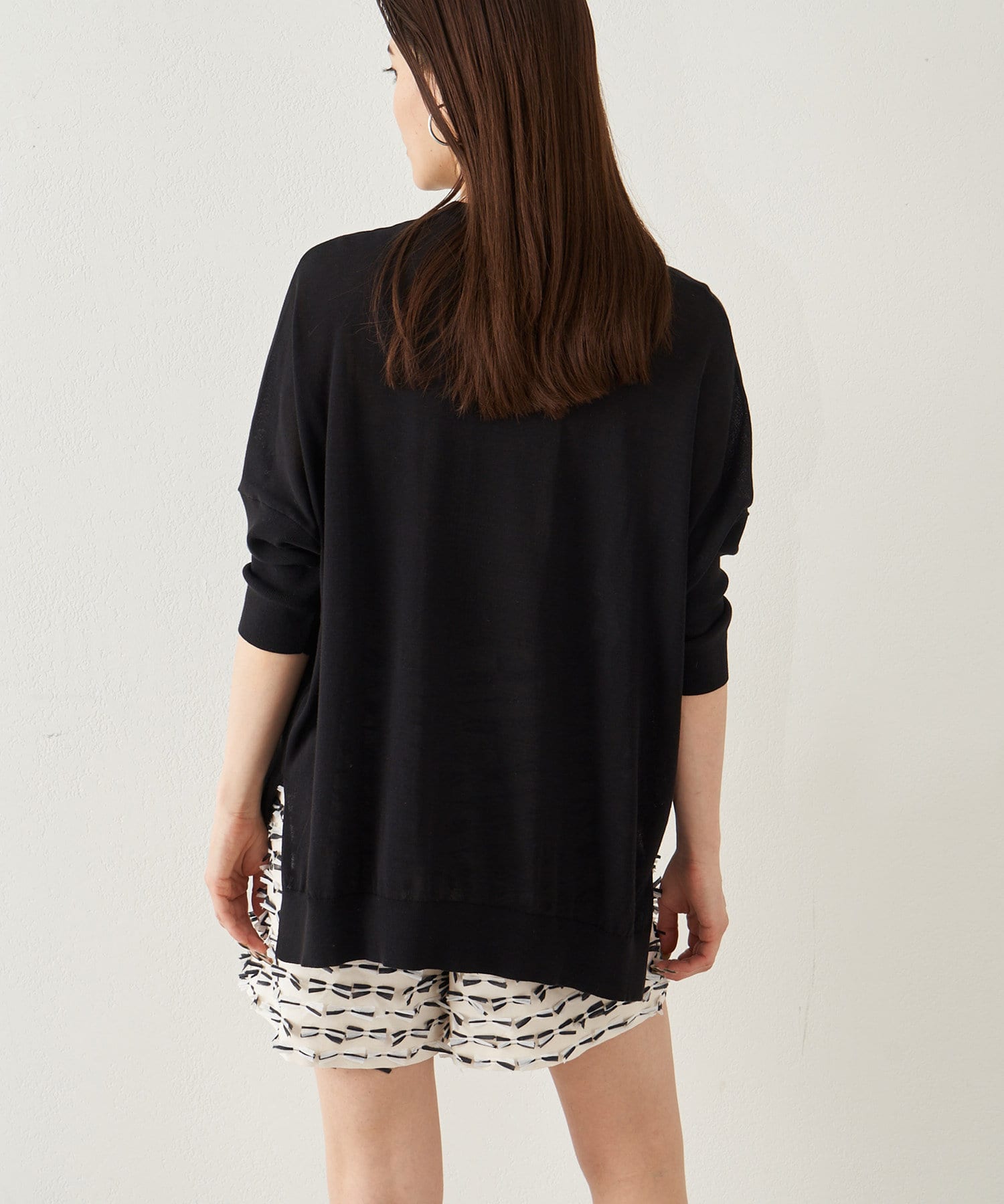 ■シンプルなデザインと上品な透け感で、オンオフ問わずに着回せる万能アイテム。