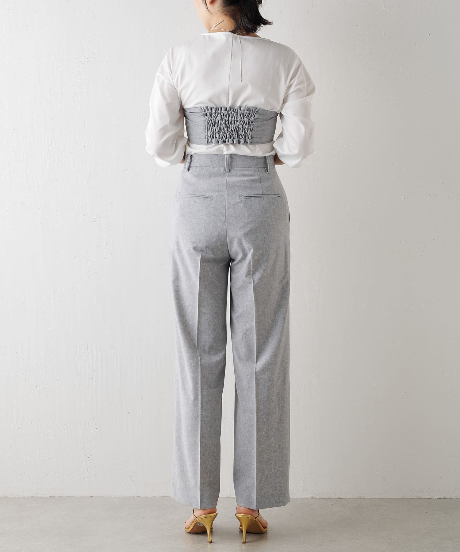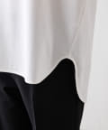 ■タックインでもアウトでもサマになる前後差のあるシルエットもポイント。