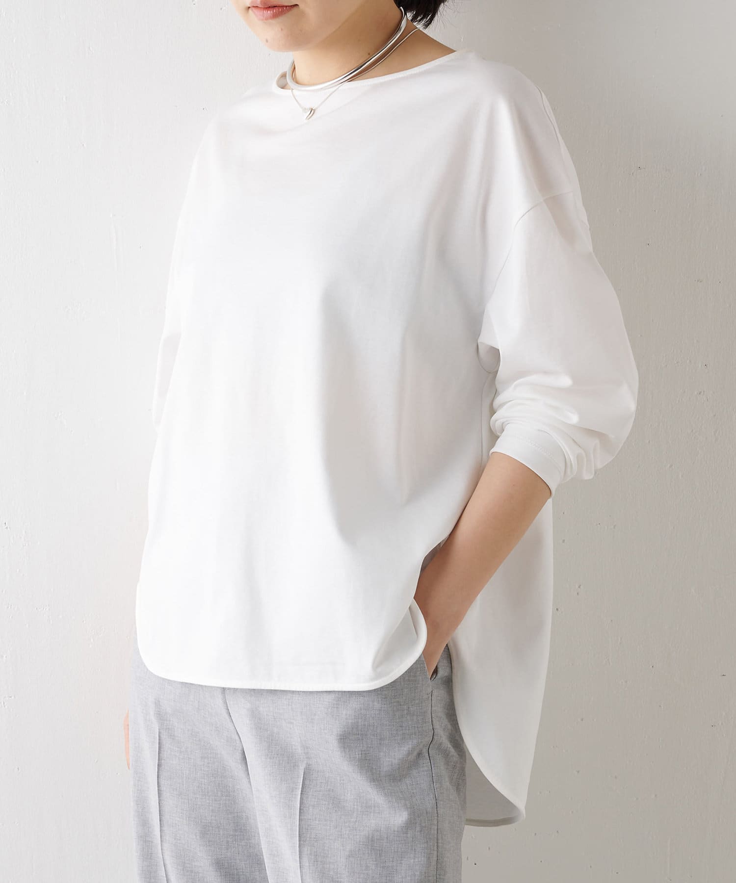 ■ベーシックなデザインがうれしい天竺素材のロングスリーブカットソー。