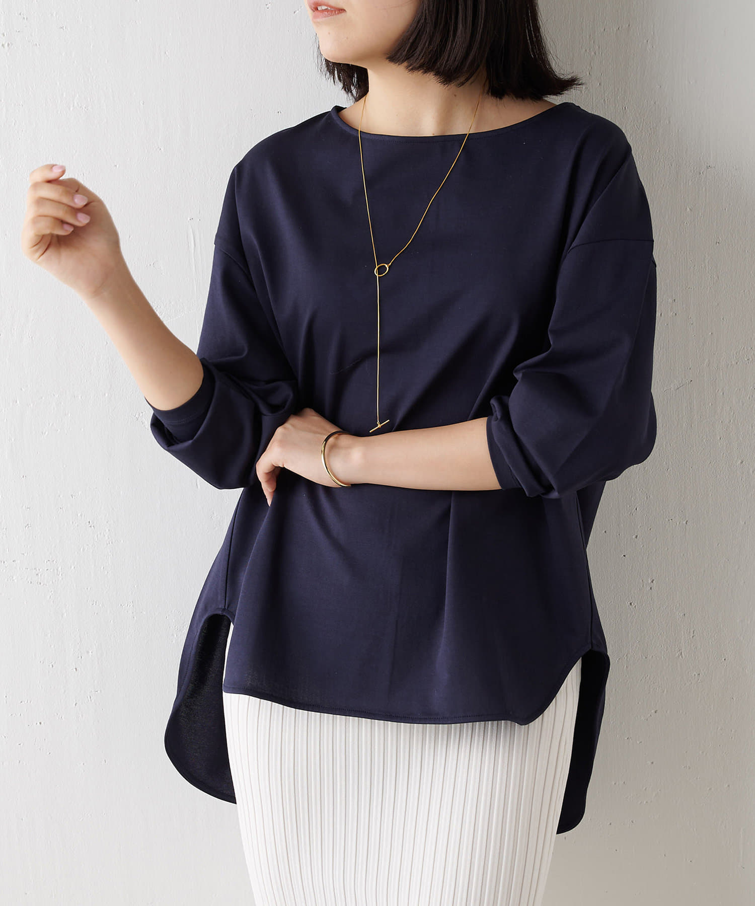 ■上品なボートネックは一枚着としてはもちろん、シャツやジャケットのインナーとしても◎。