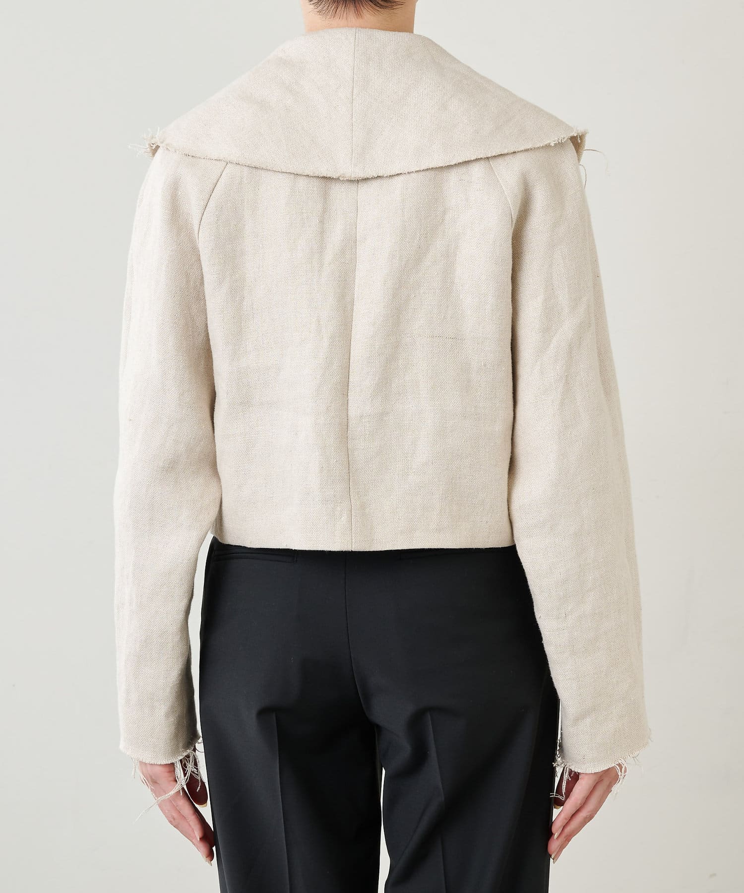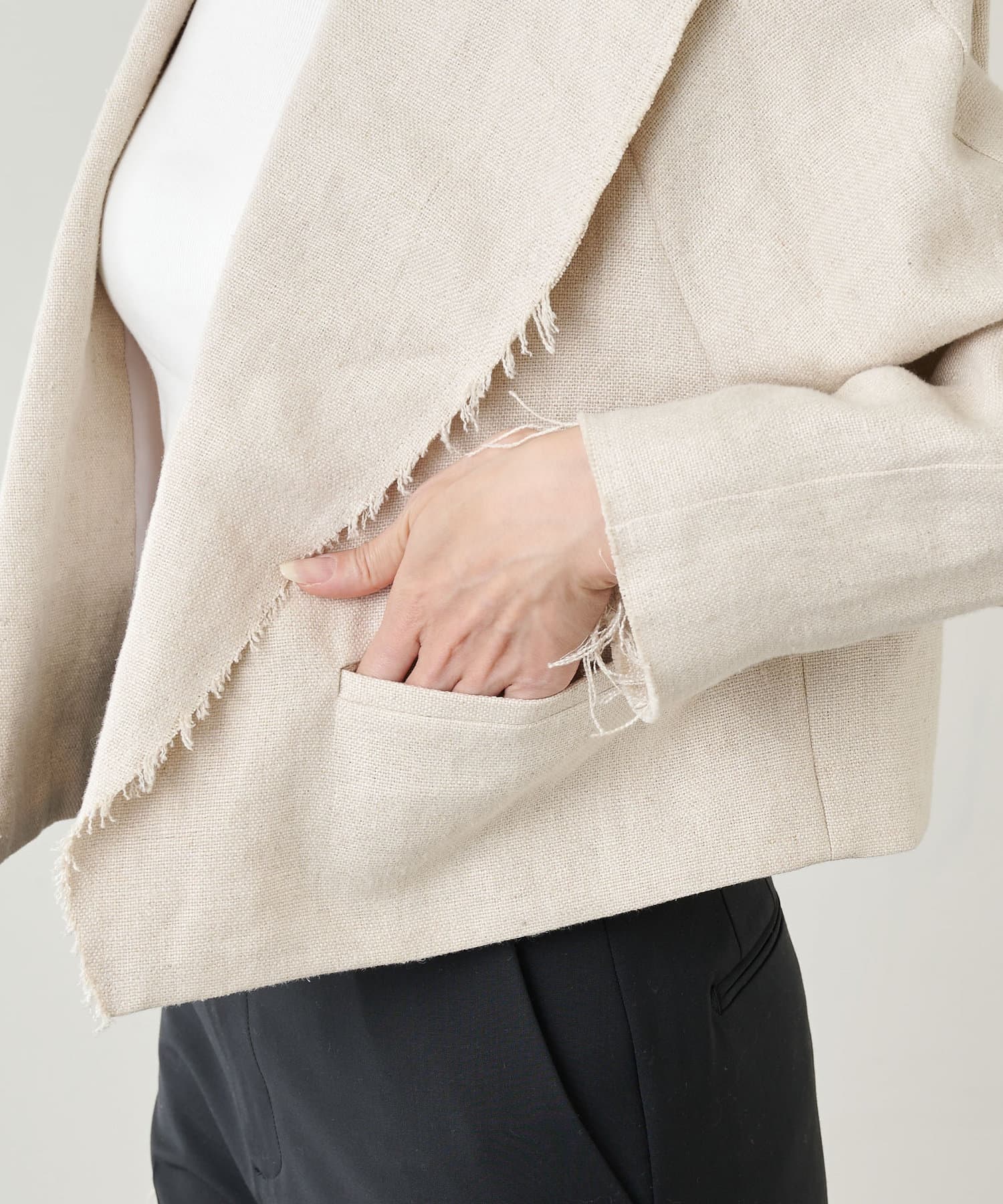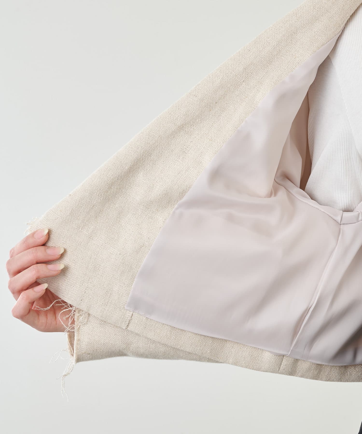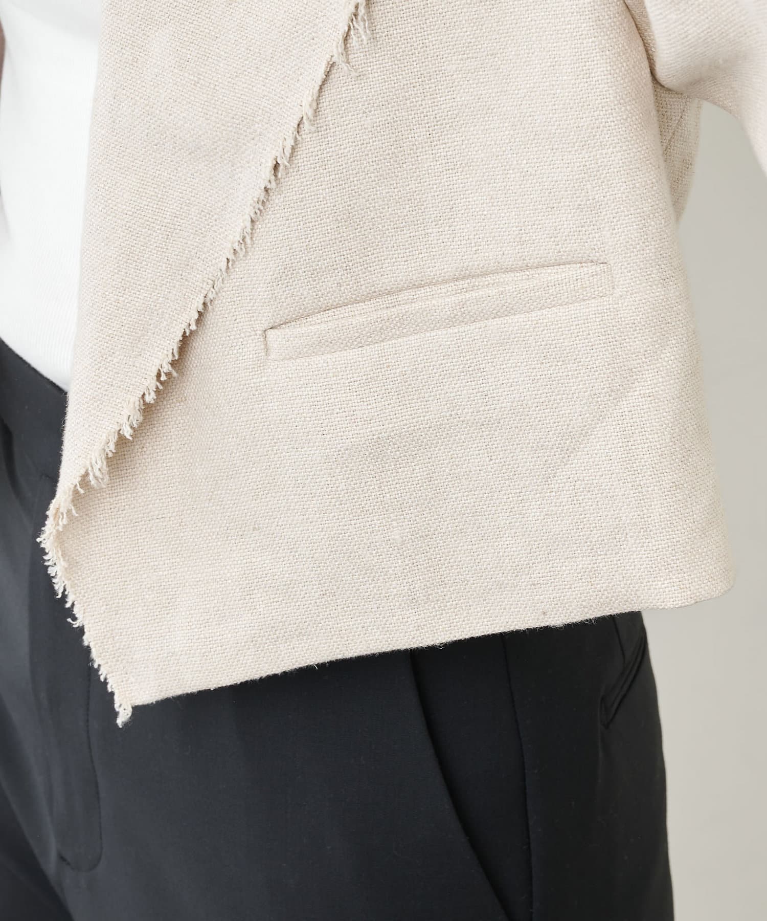 ■リネン素材で清涼感たっぷりに仕上げたショートジャケット。