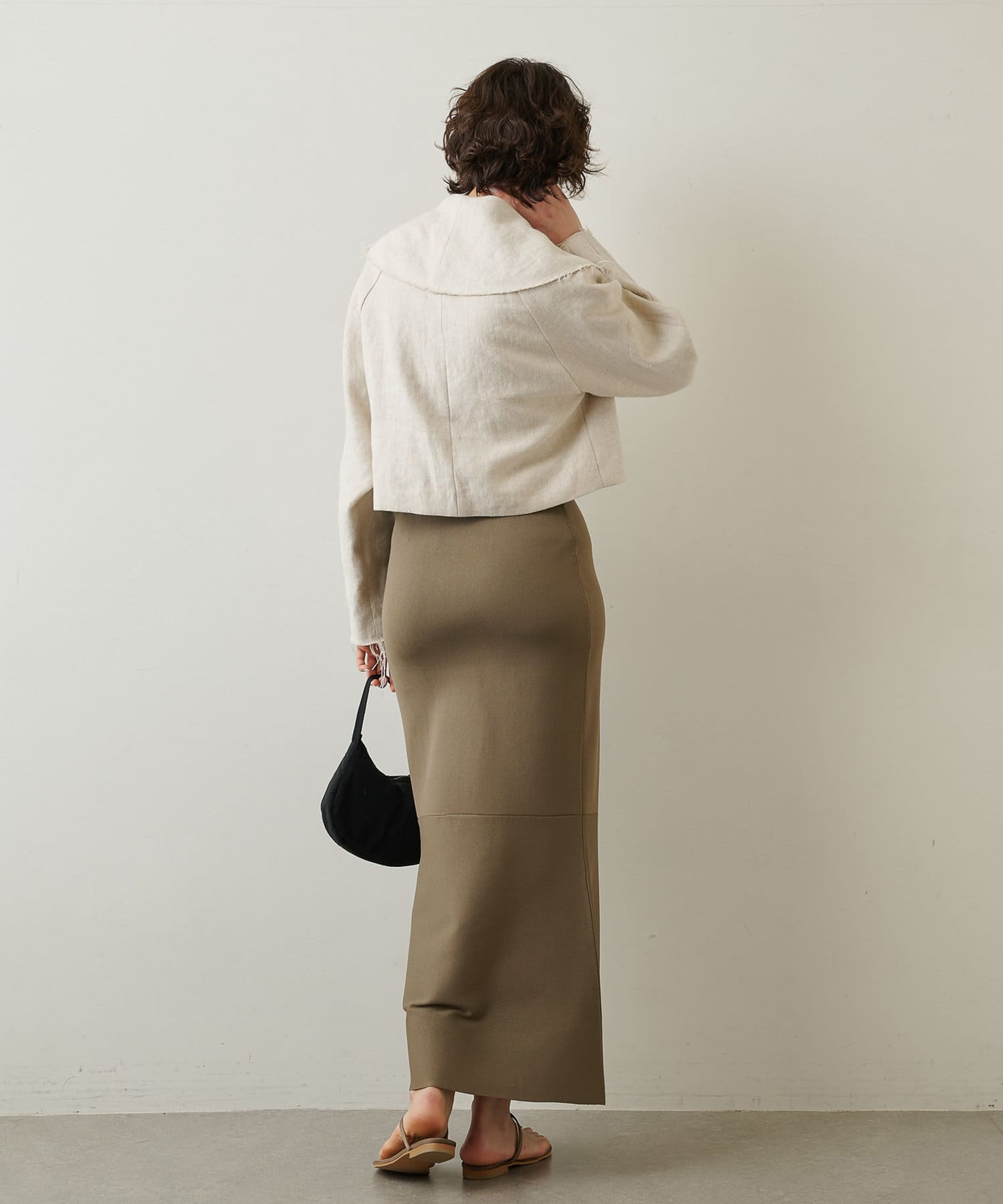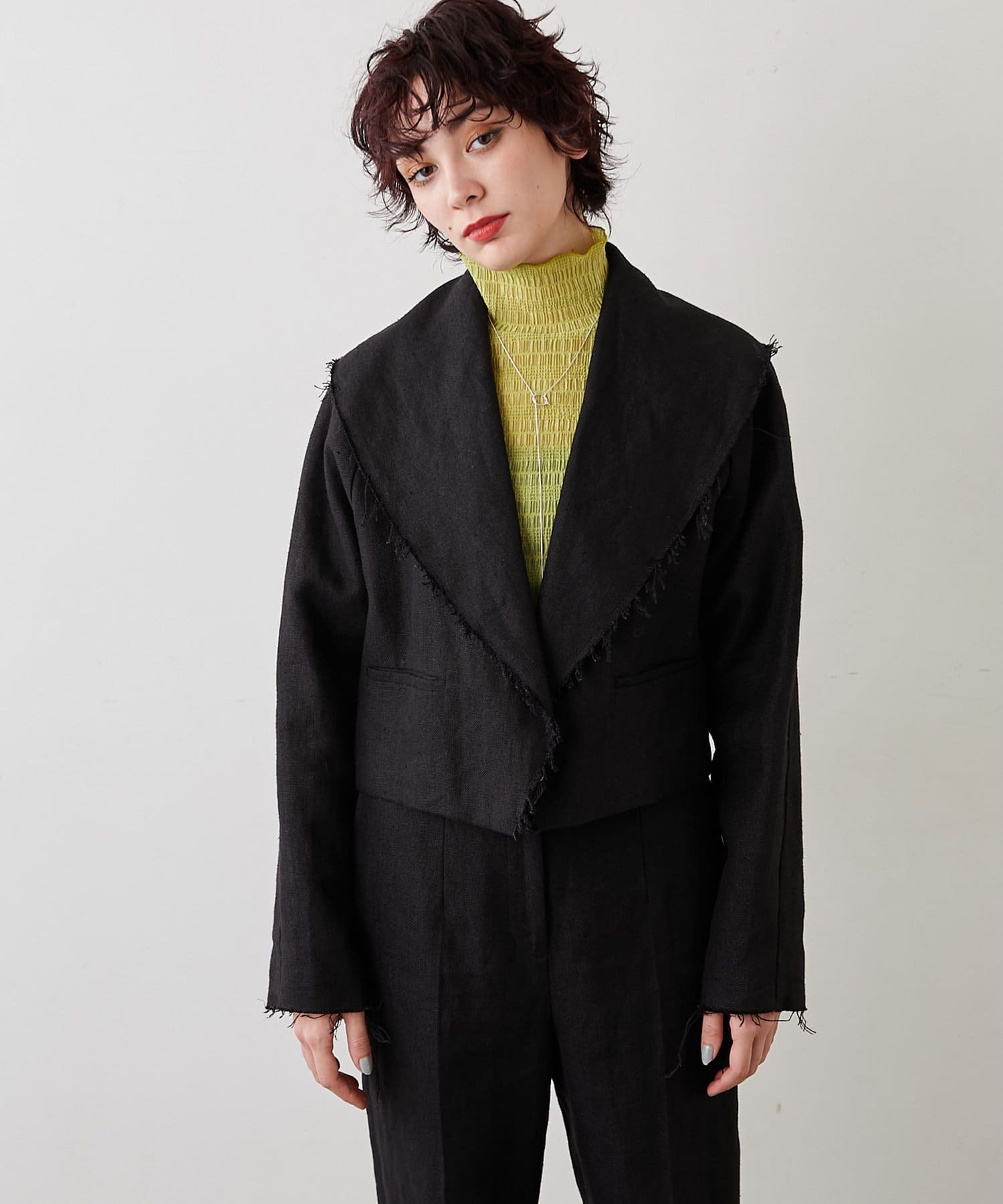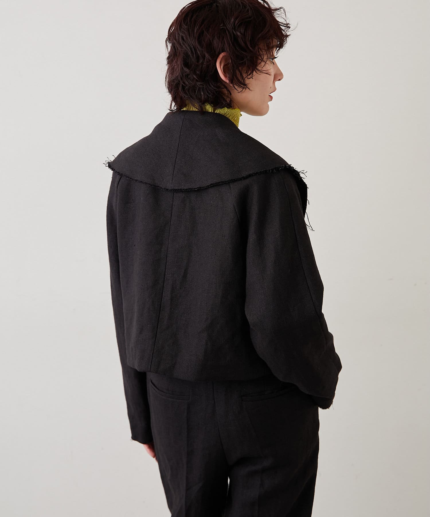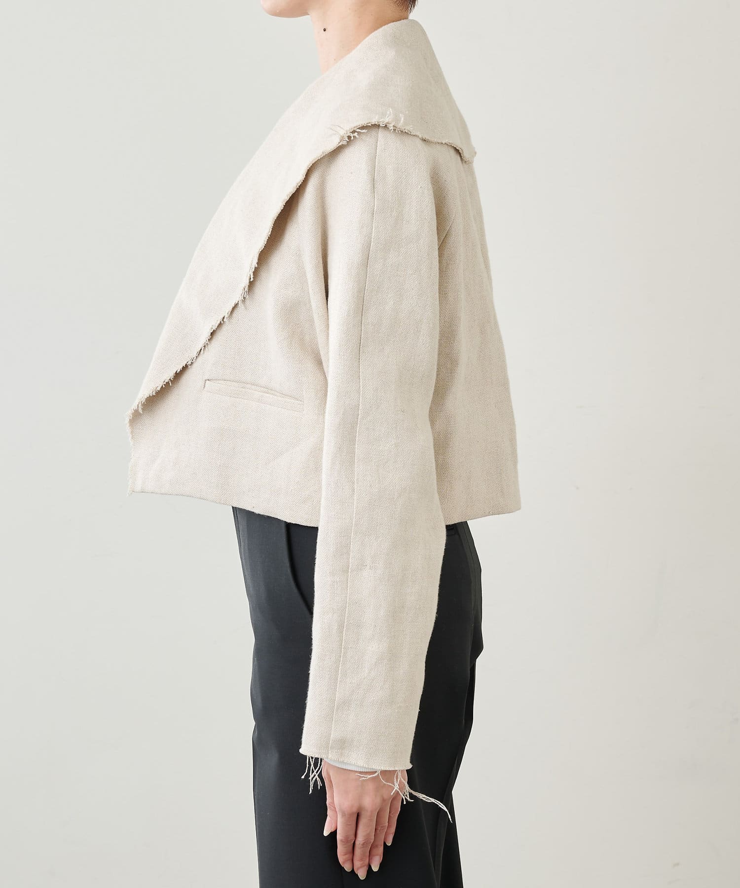 ■リネン素材で清涼感たっぷりに仕上げたショートジャケット。