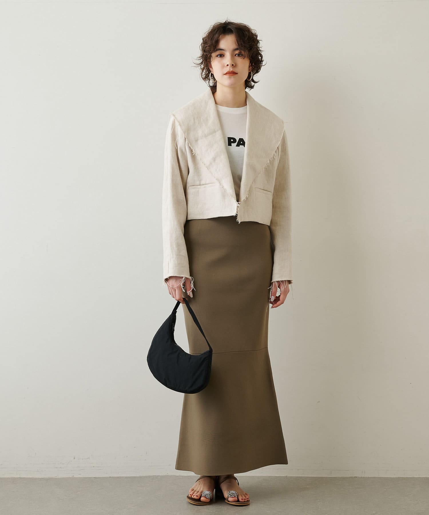 ショート丈が今年らしくロングスカートやハイウエストパンツと合わせるとすっきりと着こなせ、スタイルアップにもなります。ワイドパンツなど太めなボトムとの相性も良いです。