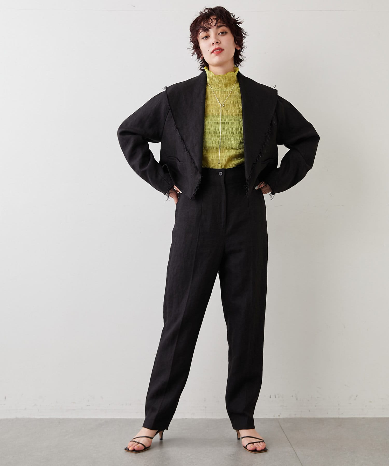 ■同素材のヘビーリネンハイウエストパンツ(ブランド品番:WGZ1031202A0001)とのセットアップを楽しむのもおすすめ。