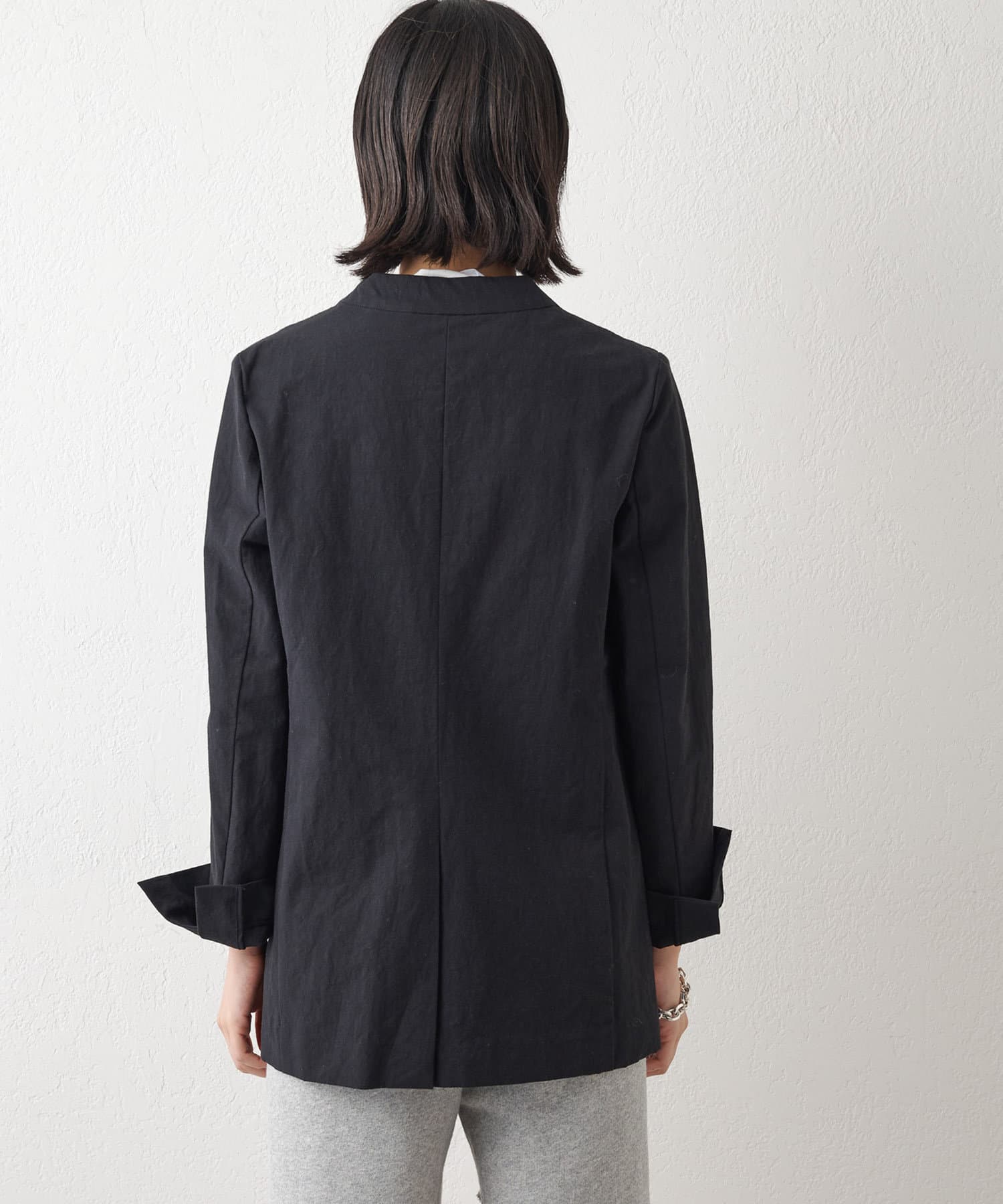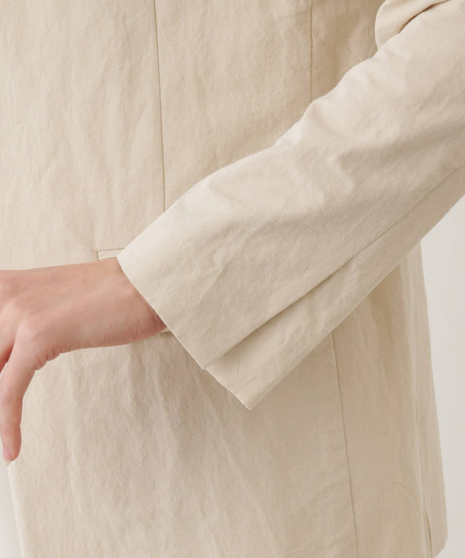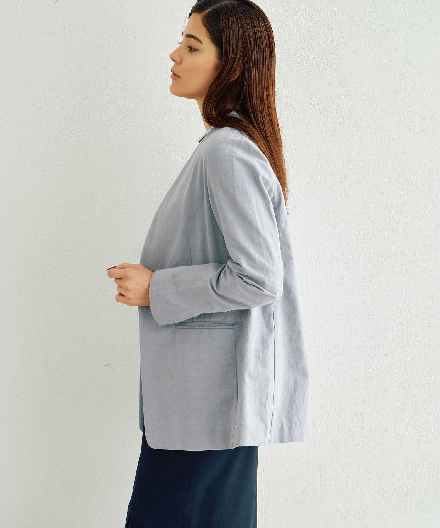■裏地がないため袖をたくしあげても様になり、カーディガン感覚で気軽に使える抜け感ジャケット。