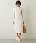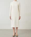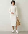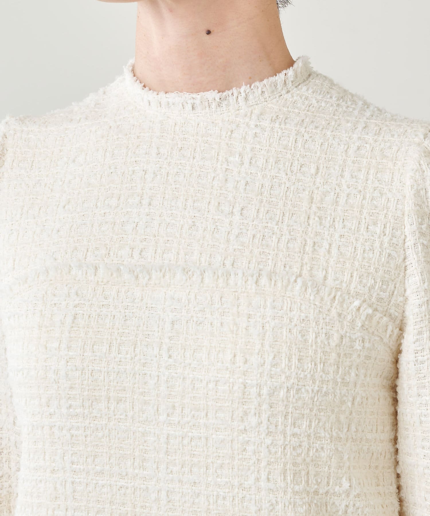 ■襟元を詰めたクルーネックはエレガントに決まりすぎず、クラシカルながらも今っぽい雰囲気をプラス。