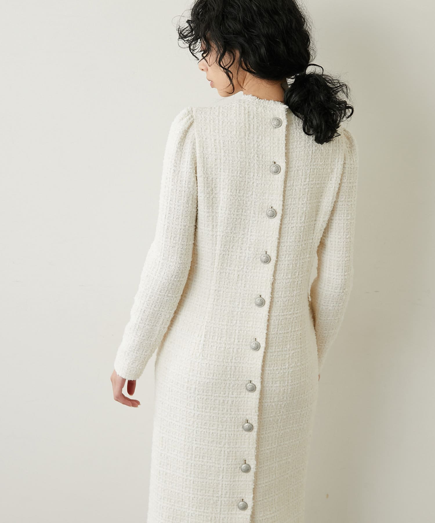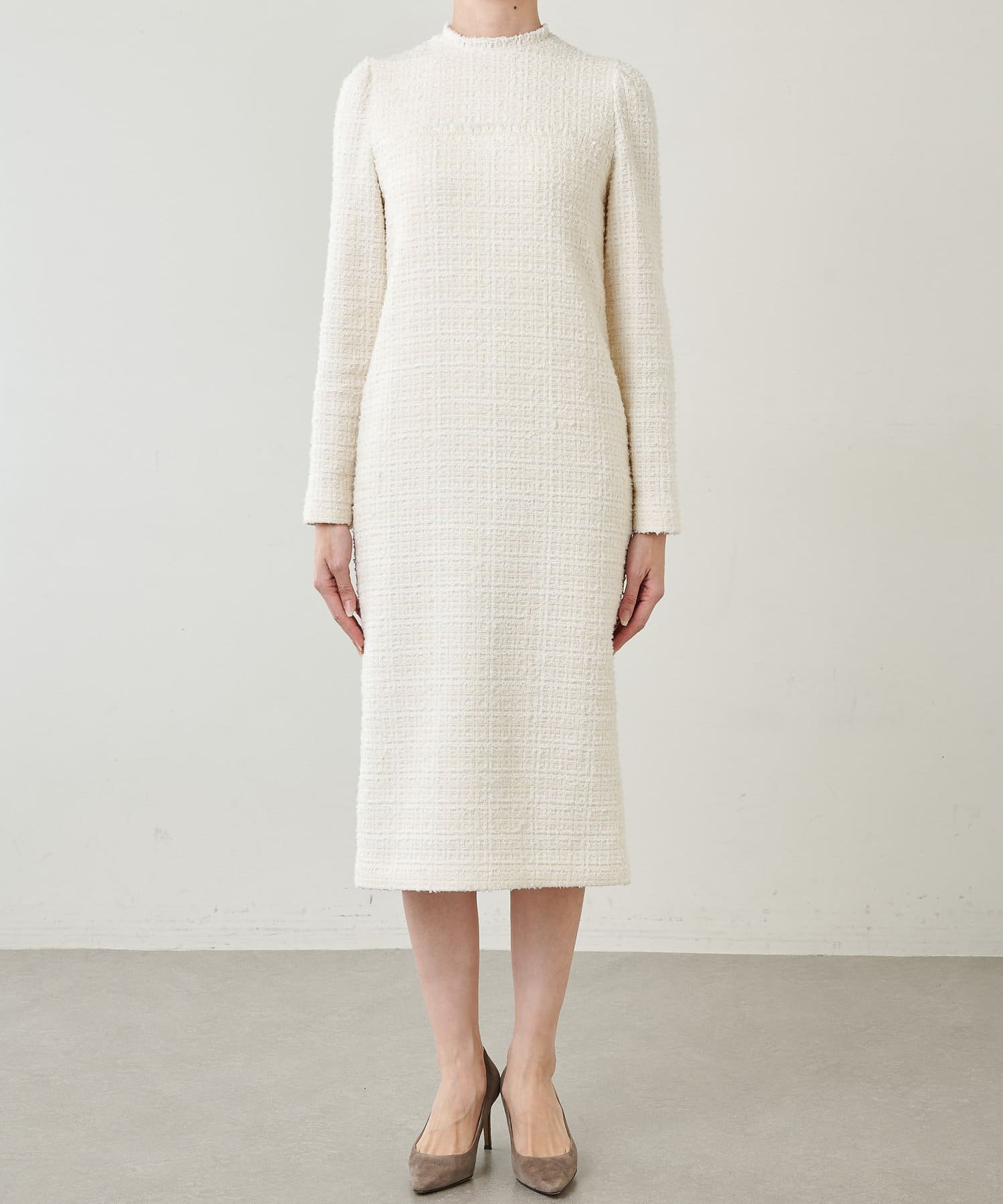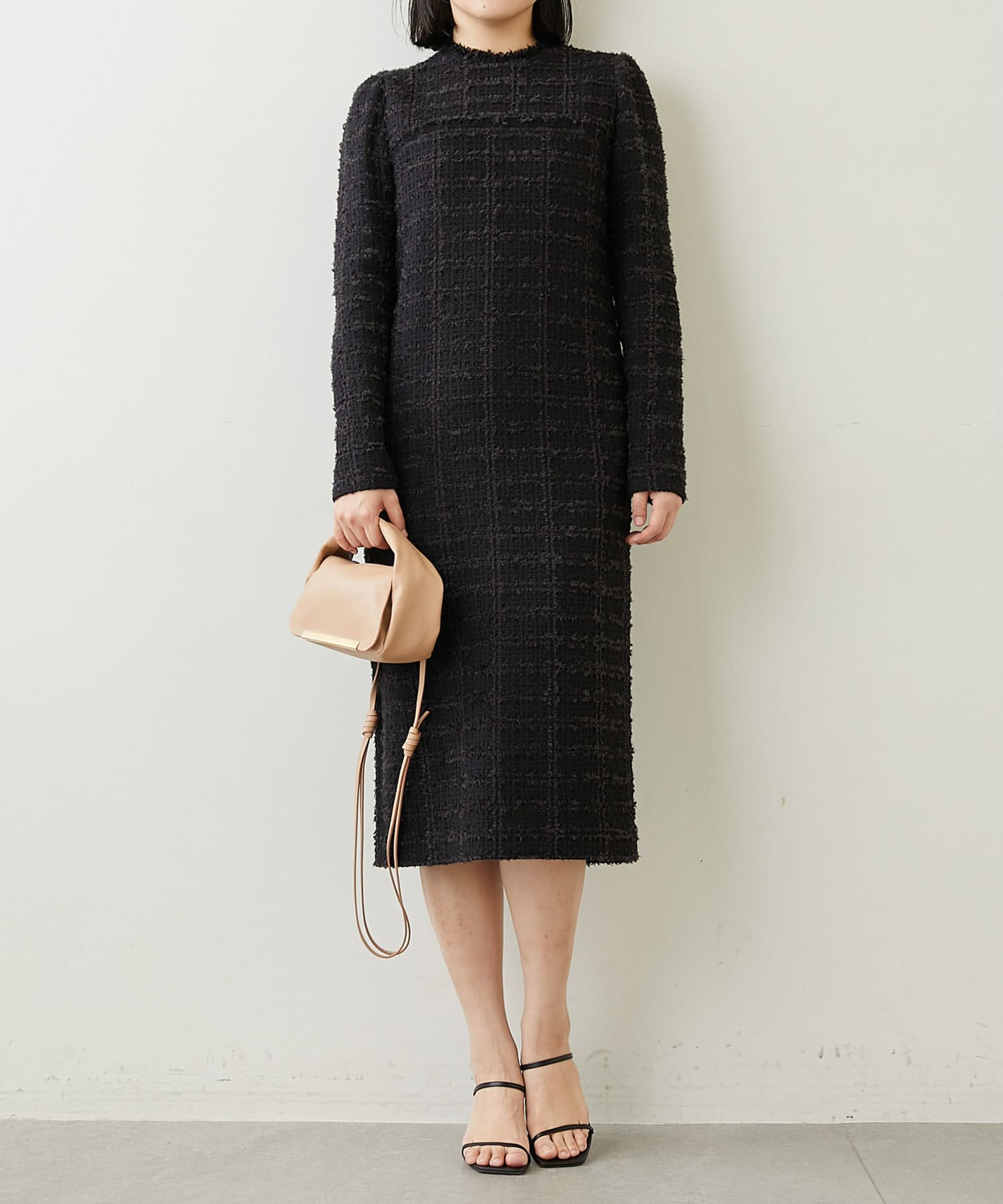 ■クラス感漂うミニマルなデザインのツイードワンピース。