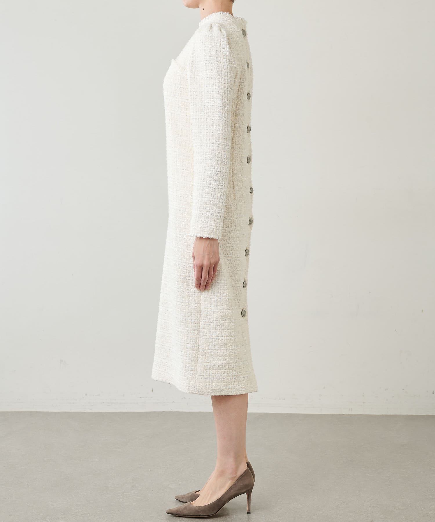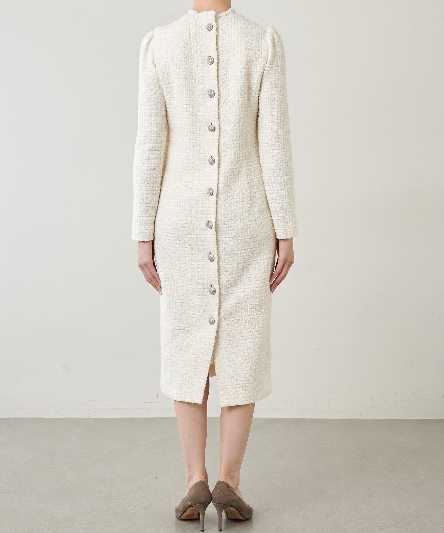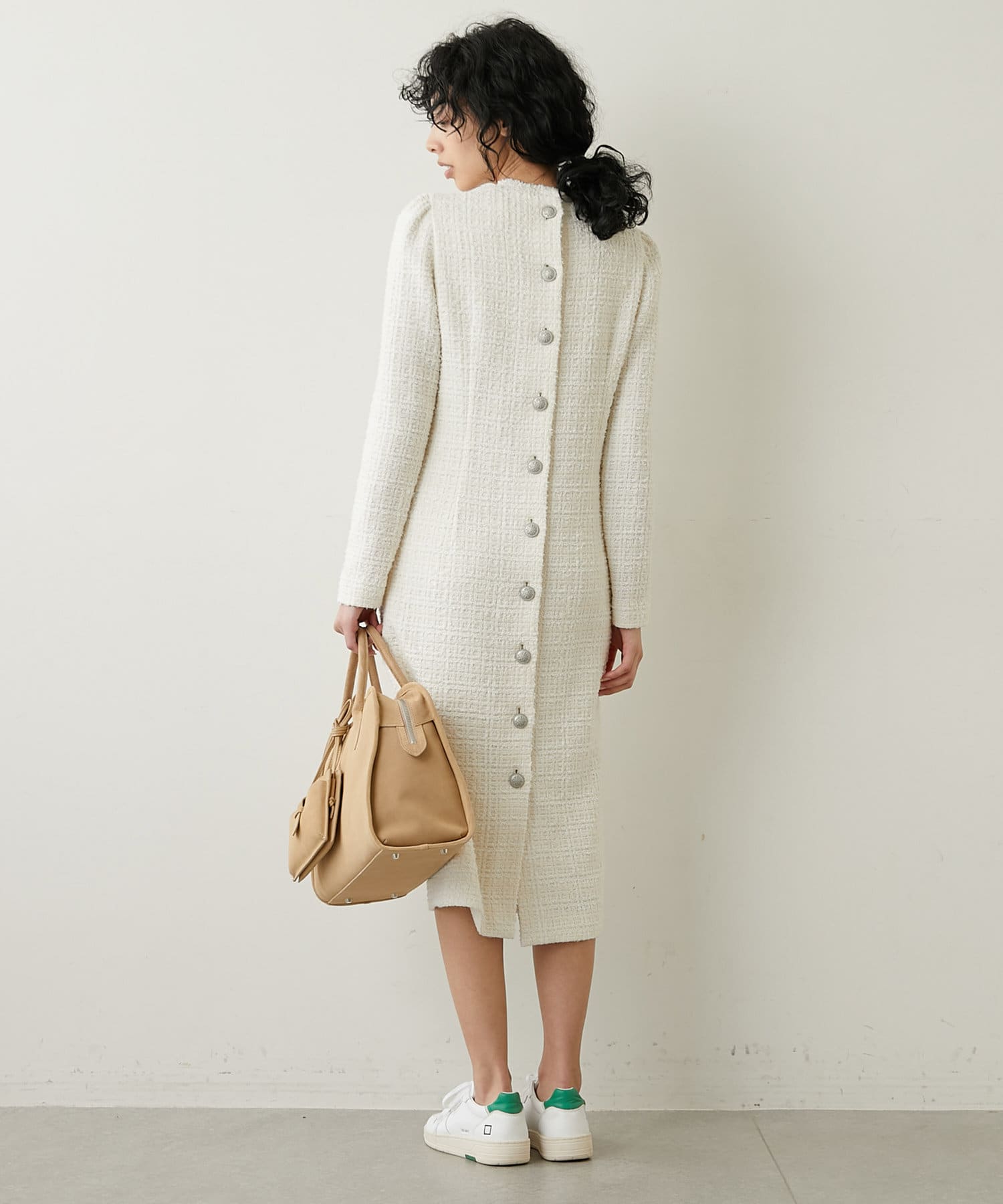 ■クラス感漂うミニマルなデザインのツイードワンピース。
