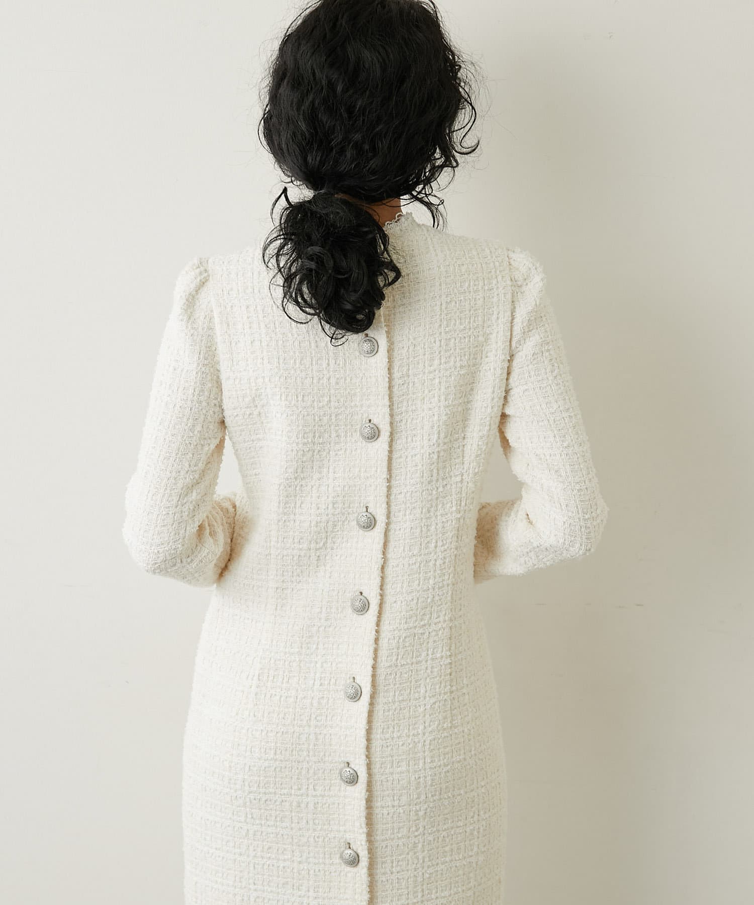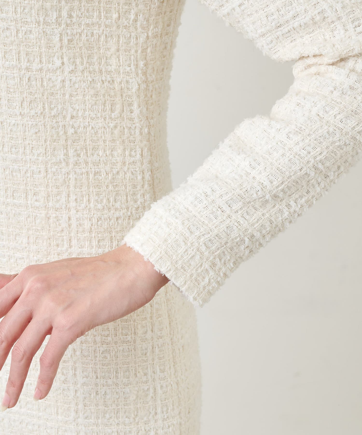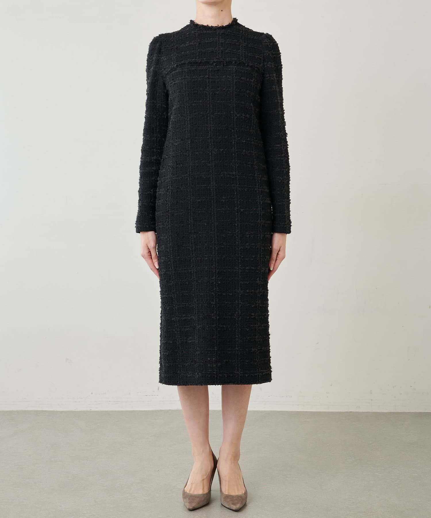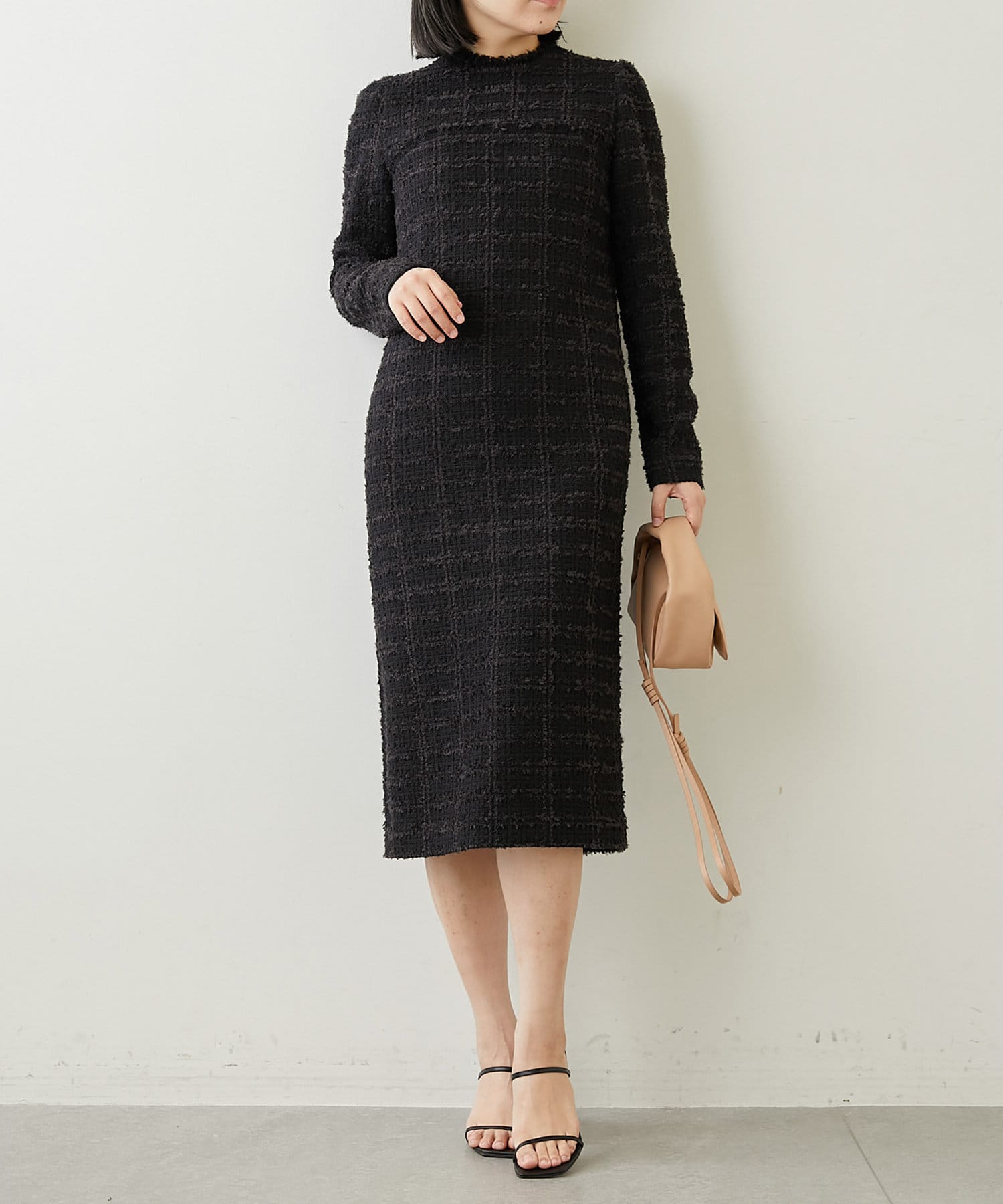 大人の品格を感じさせる、クラシカルなツイードワンピース