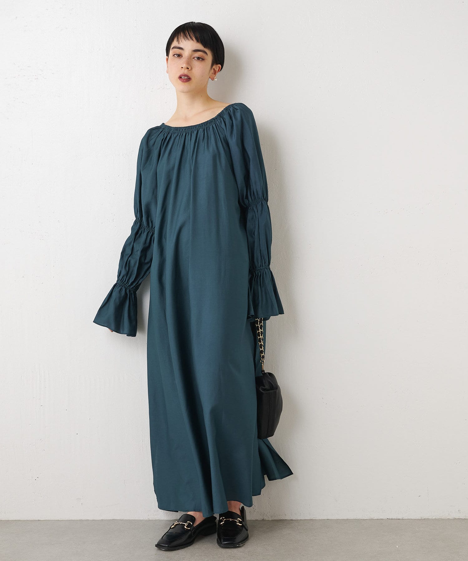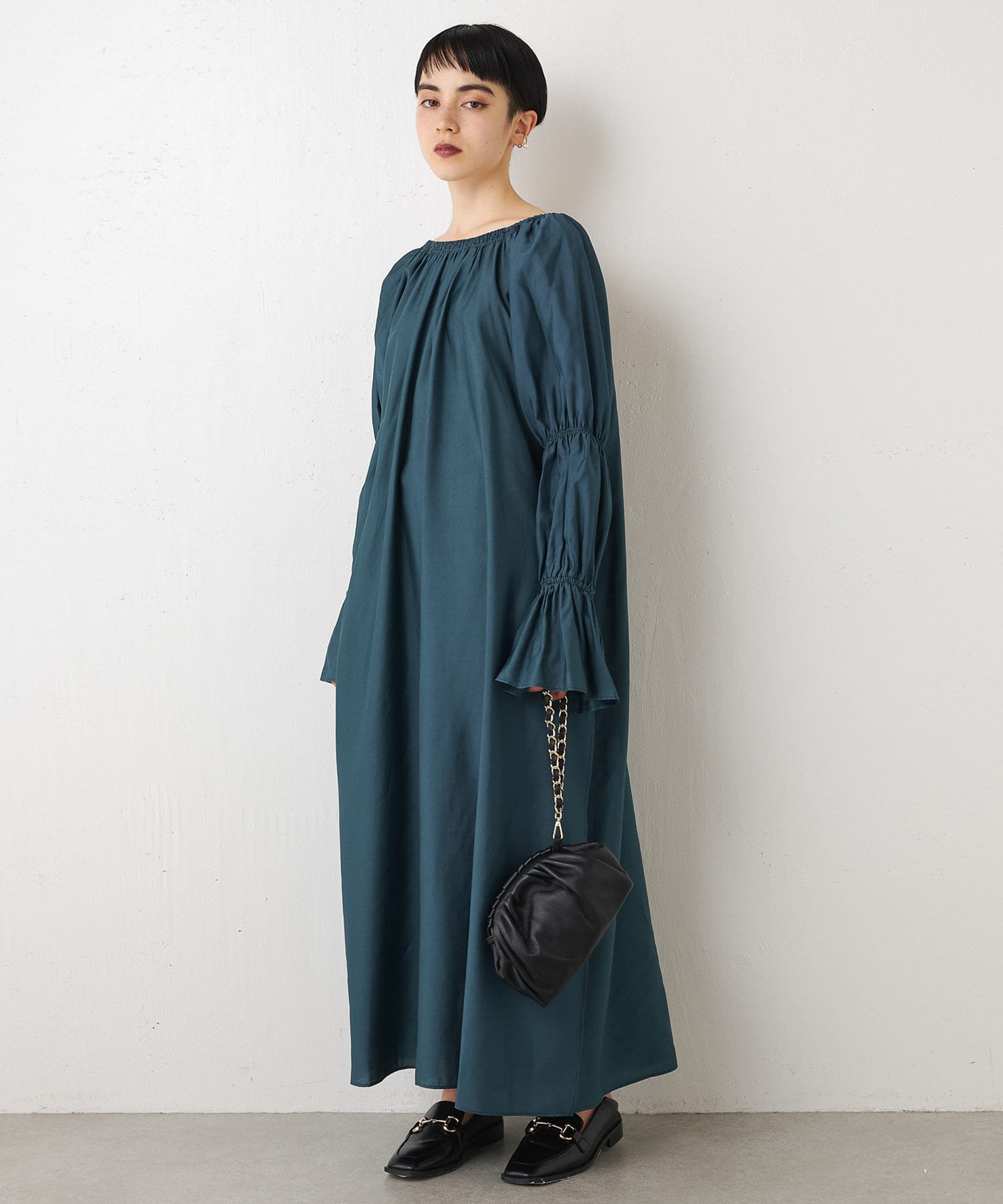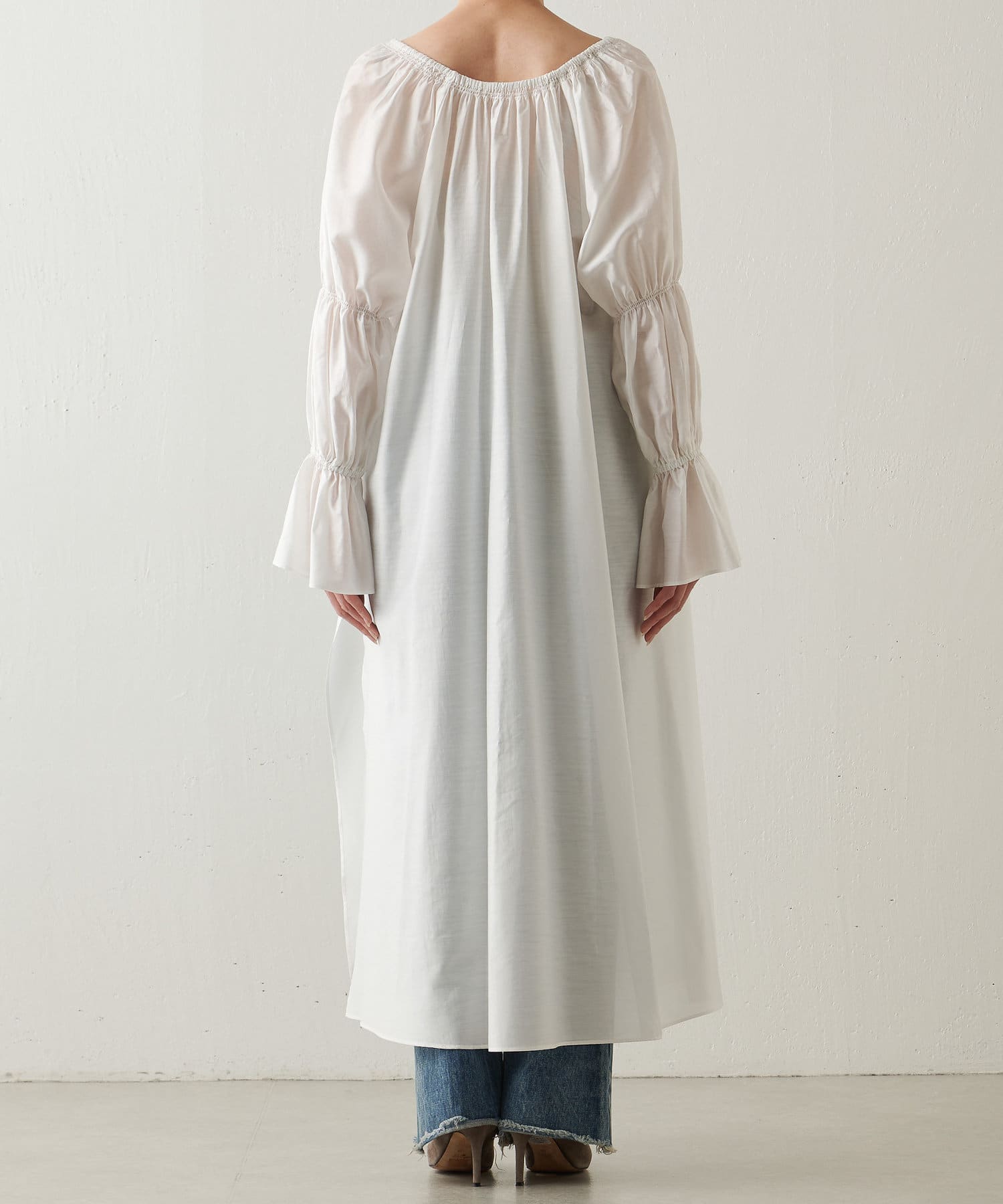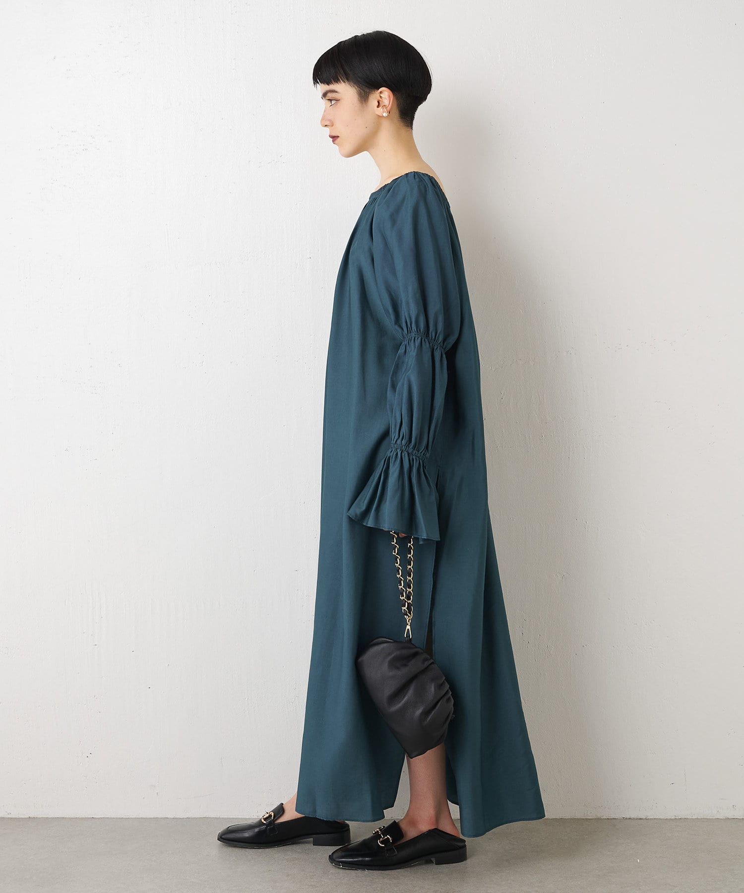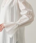 ■袖に施したシャーリングにより、程よく膨らみのあるボリュームシルエットに仕上げたデザイン。