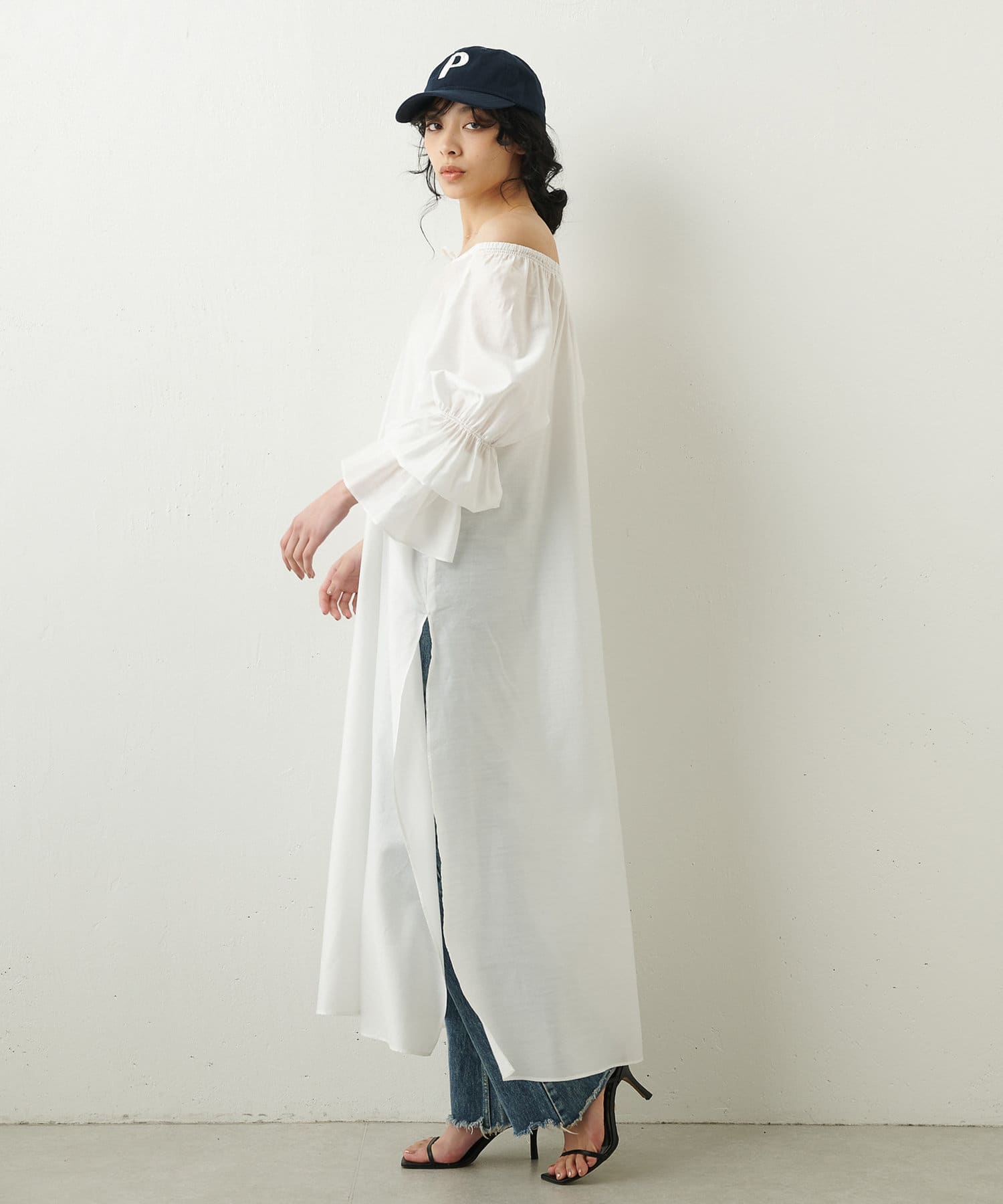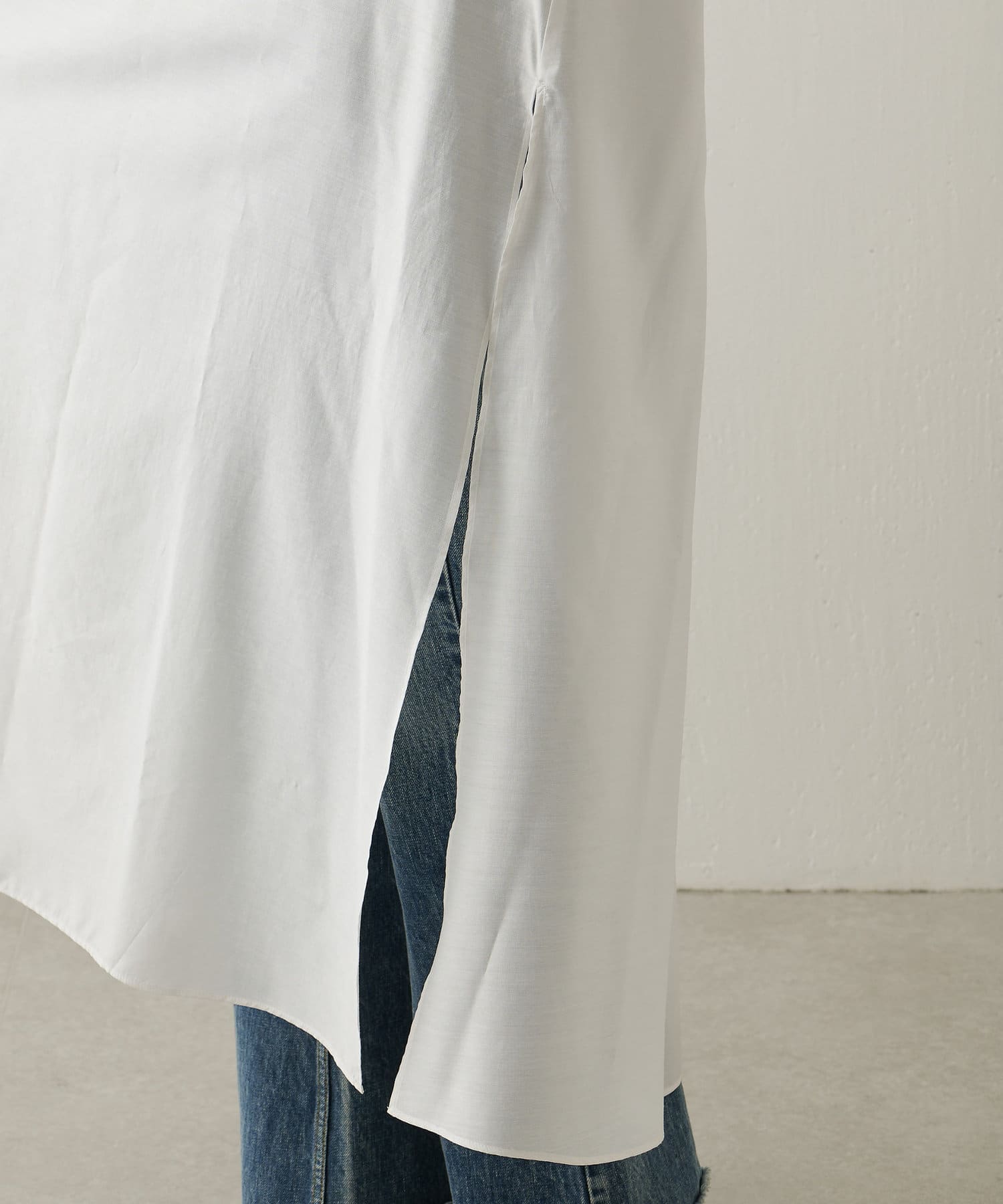 ■深めのサイドスリットが抜け感をプラスし、パンツやスカートなどとのレイヤードスタイルも楽しめる一枚。