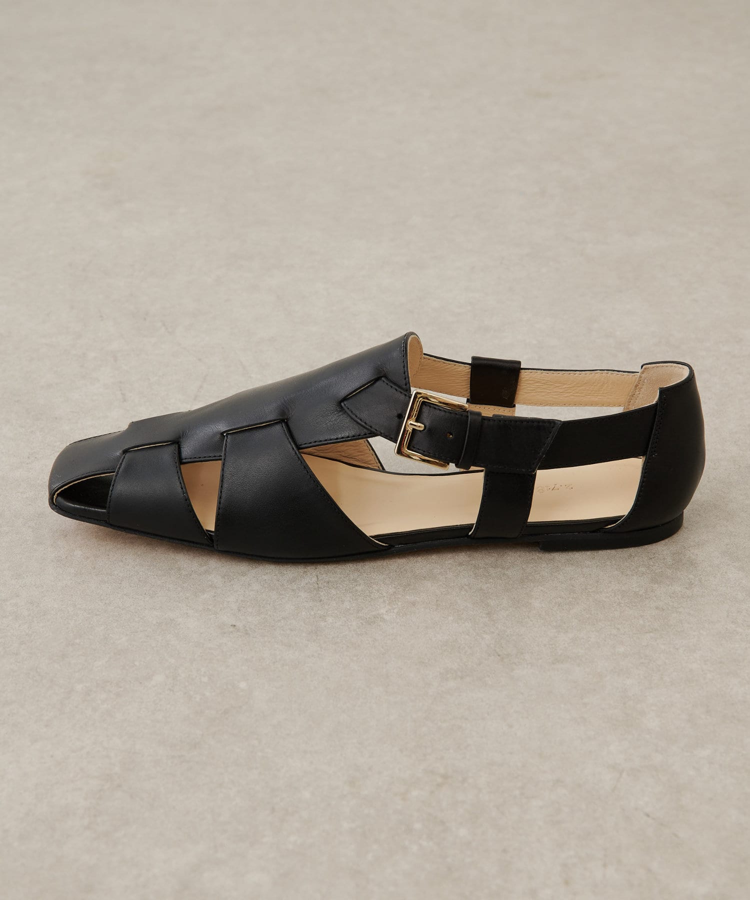 ■細めのスクエアトゥですっきりと仕上げられたグルカサンダル。