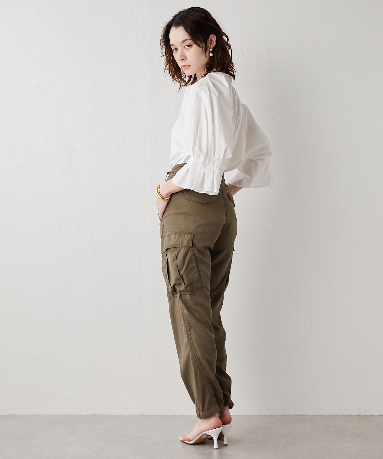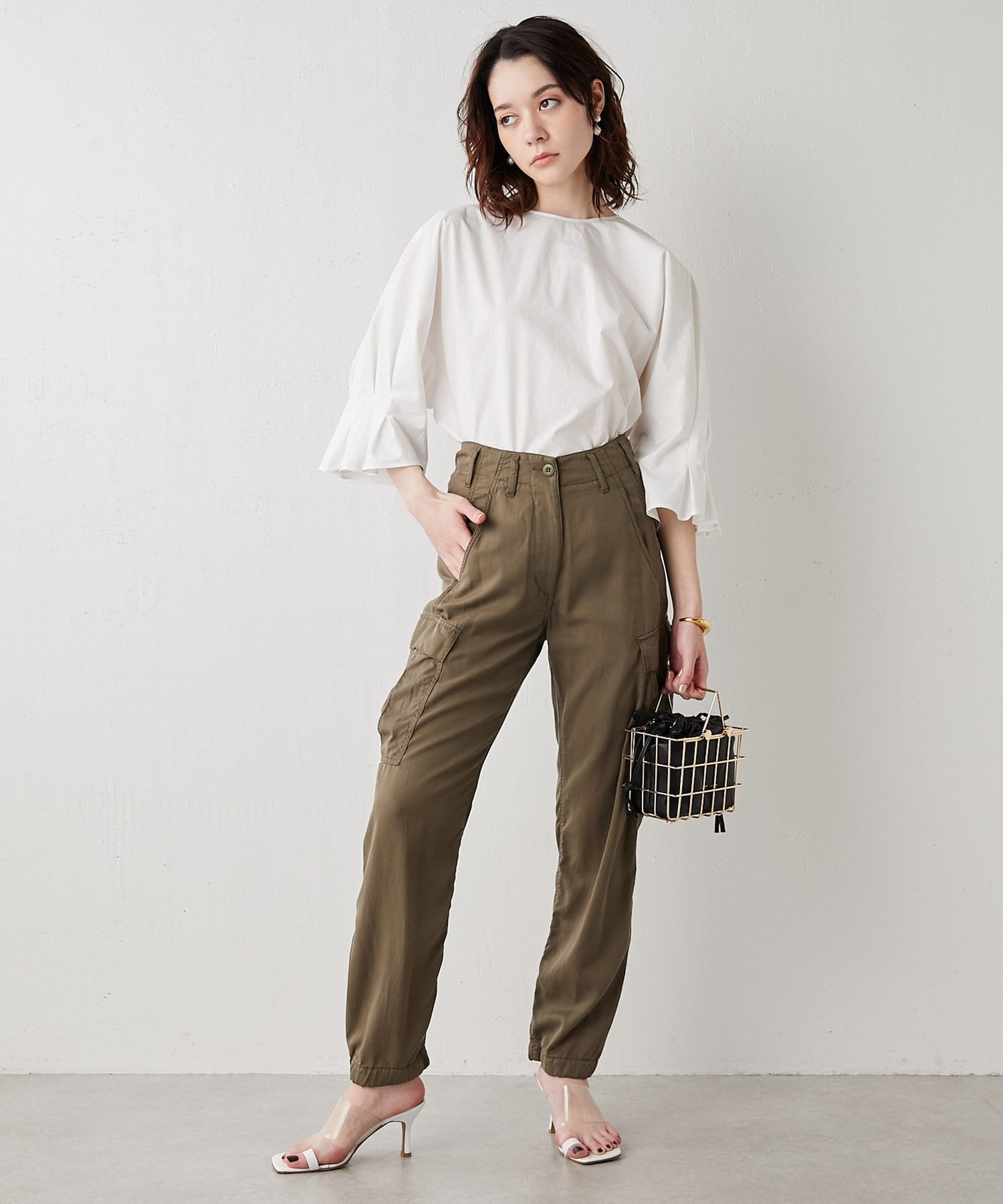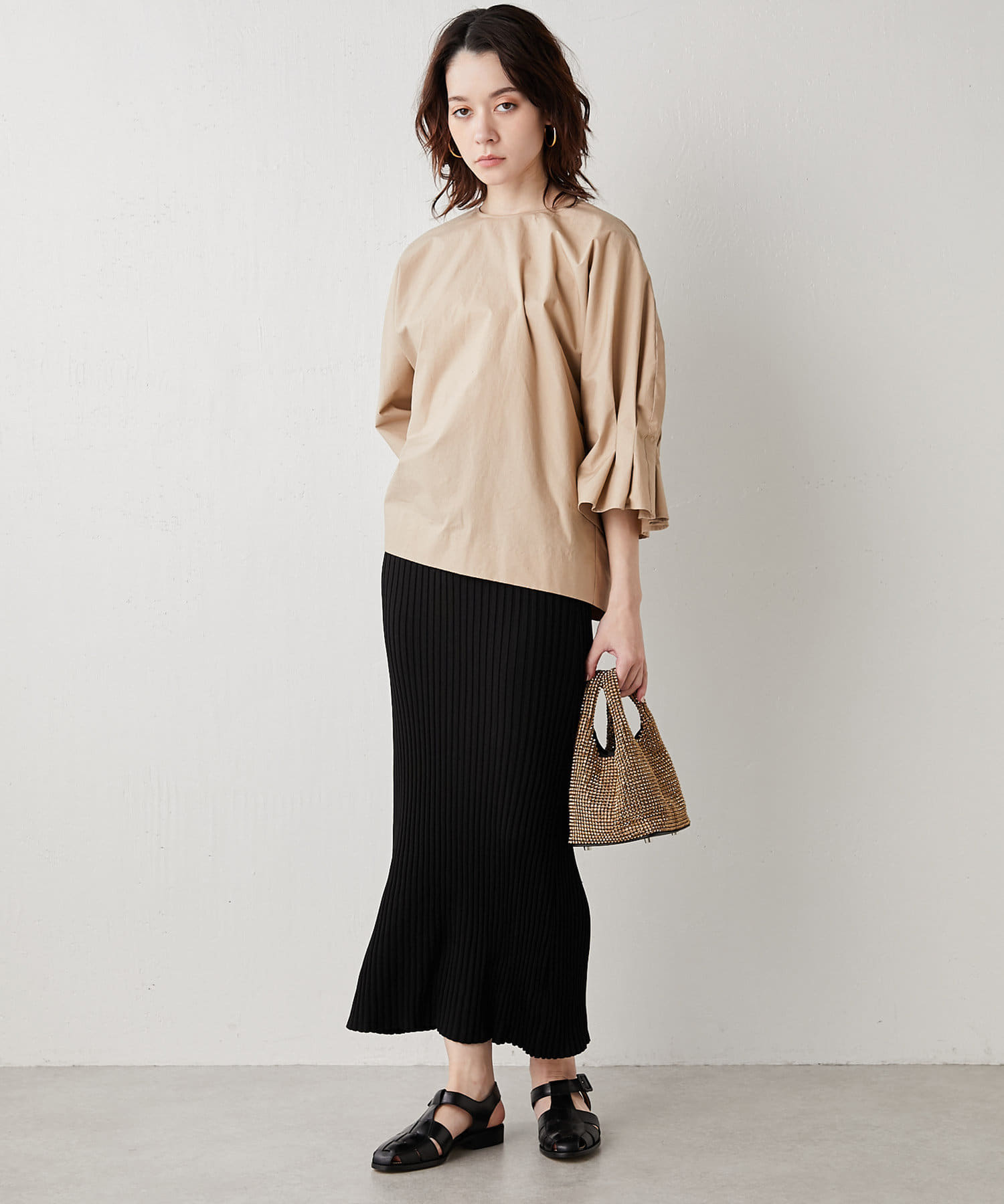 ■袖口にタックを施したデザインで、ふんわりとしたシルエットが大人可愛い一着。