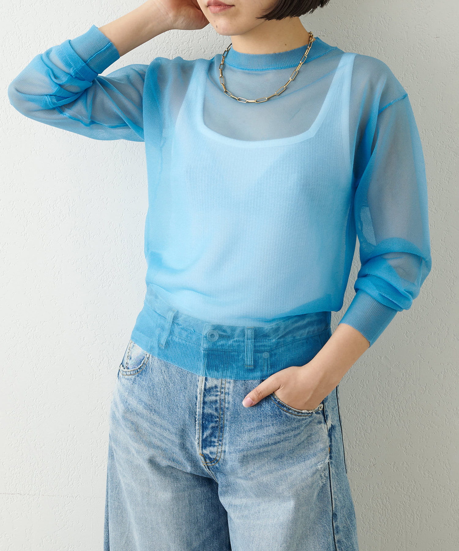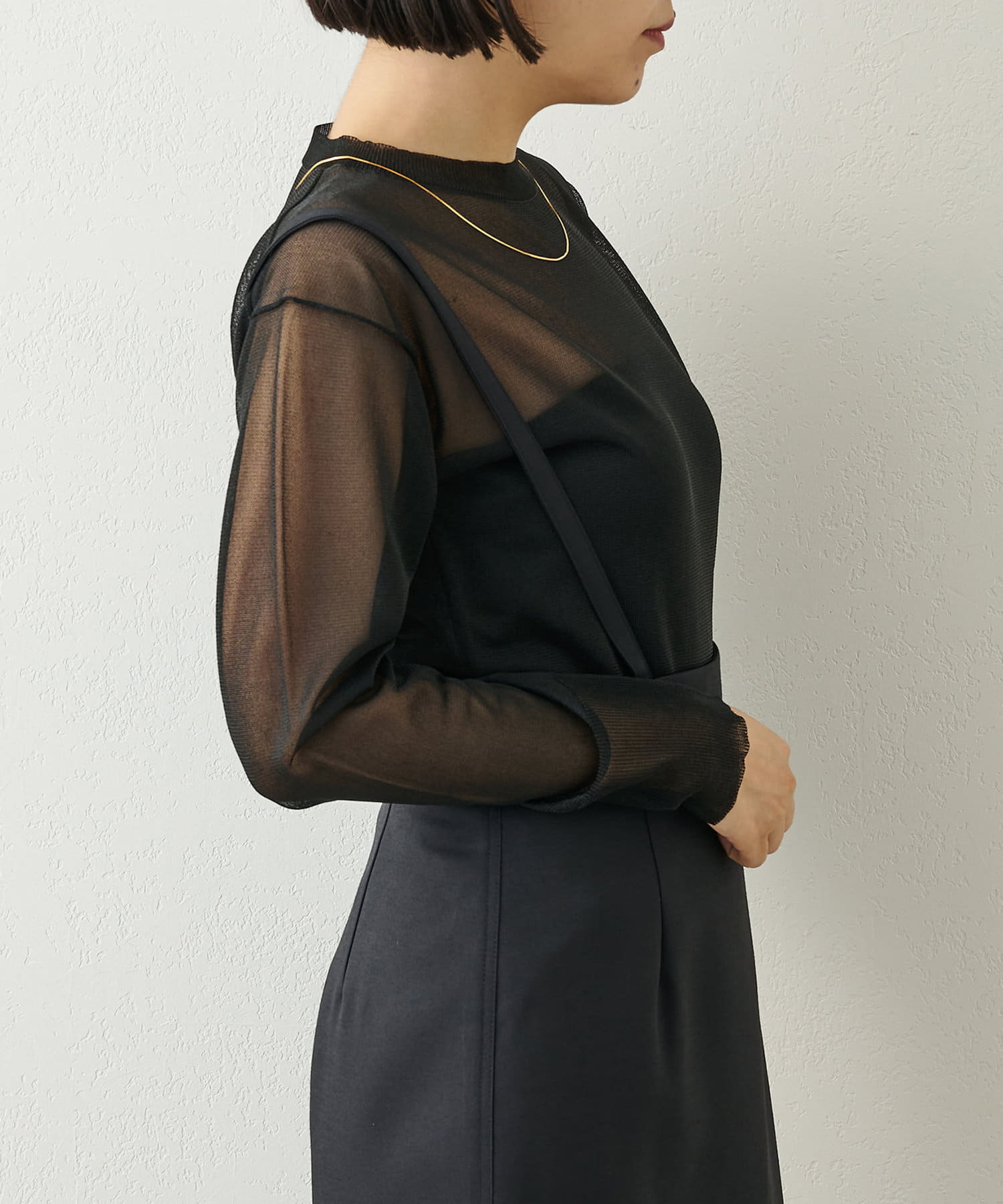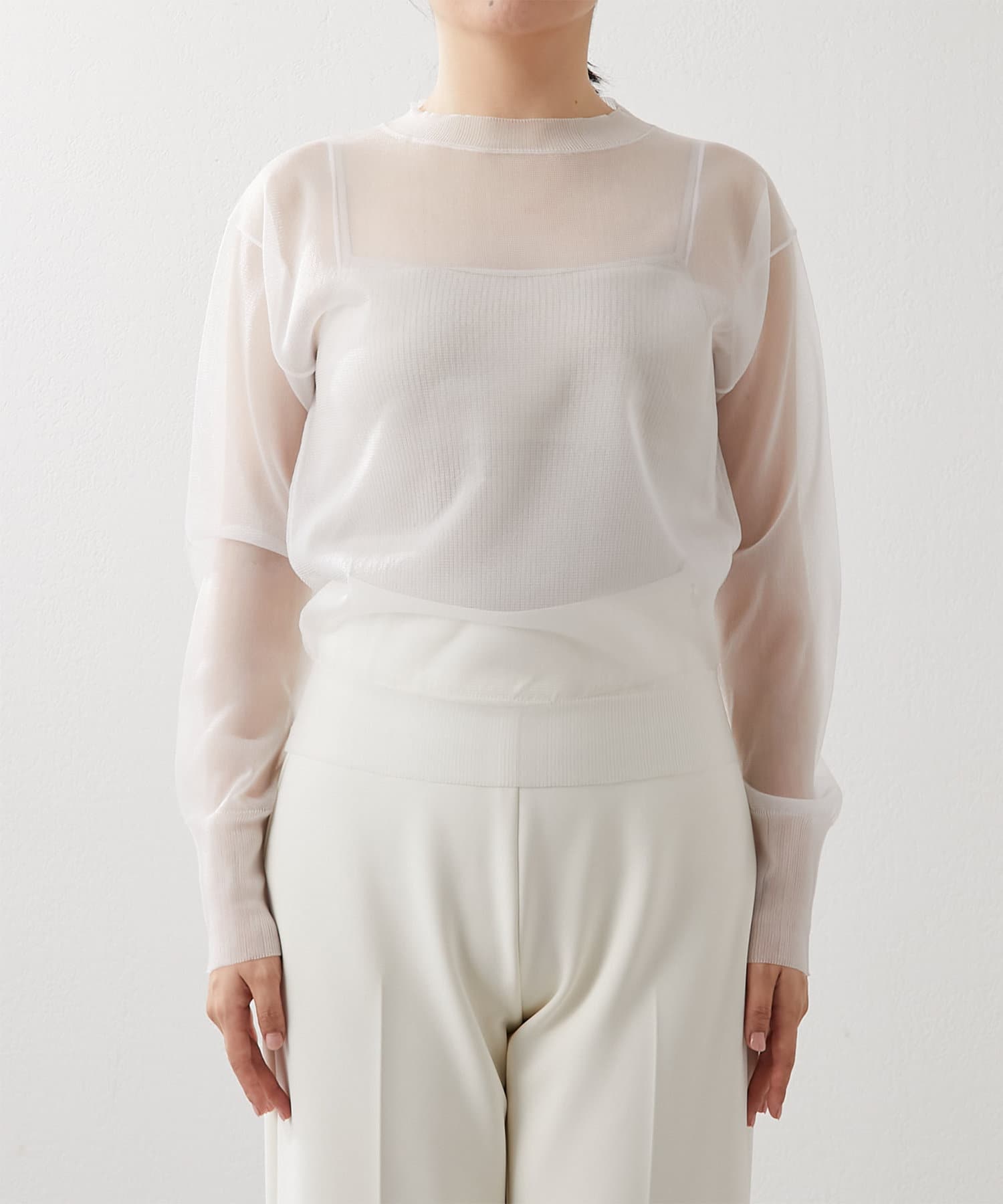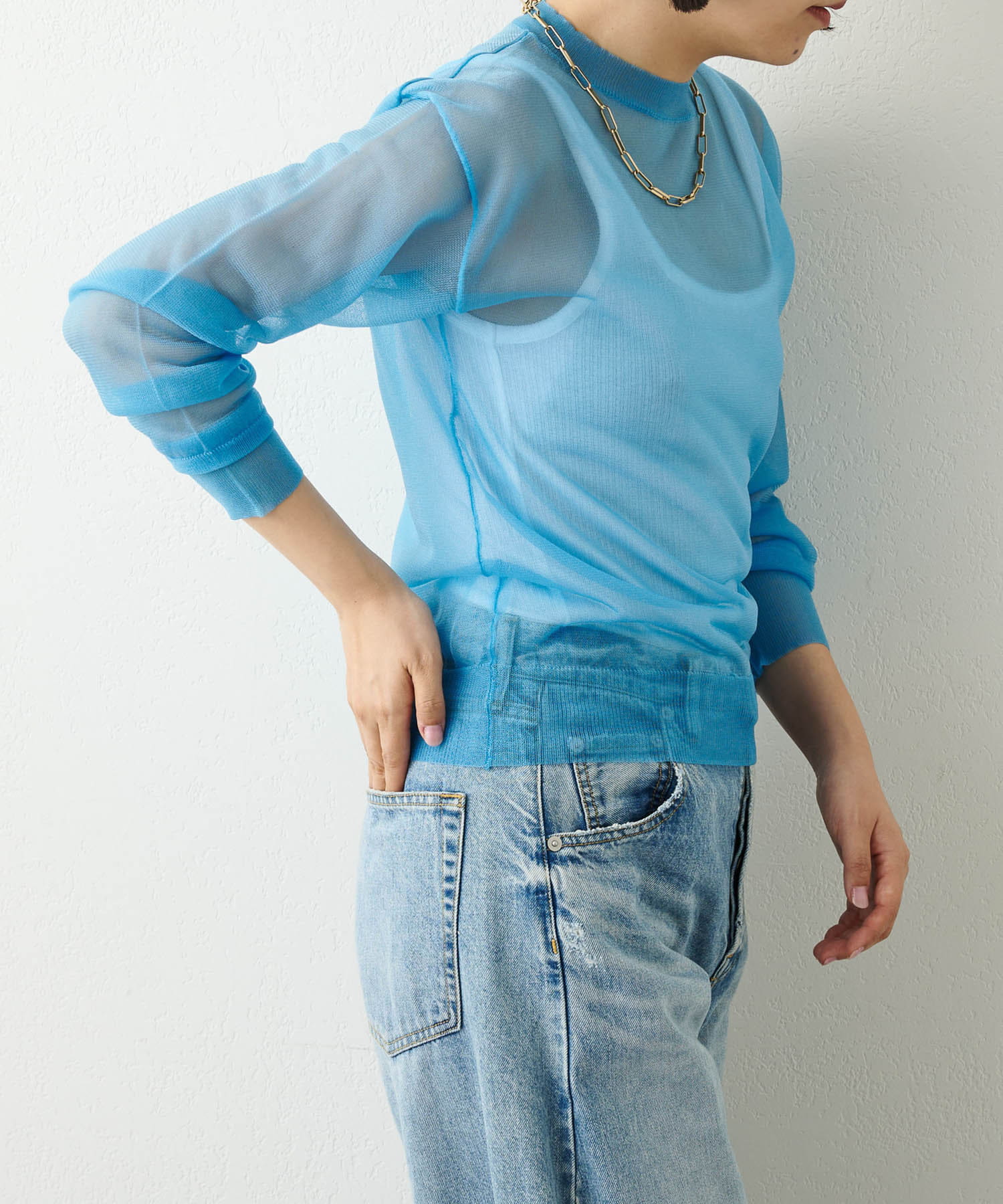 ■旬のレイヤードスタイルが楽しめるシアーニットプルオーバー。