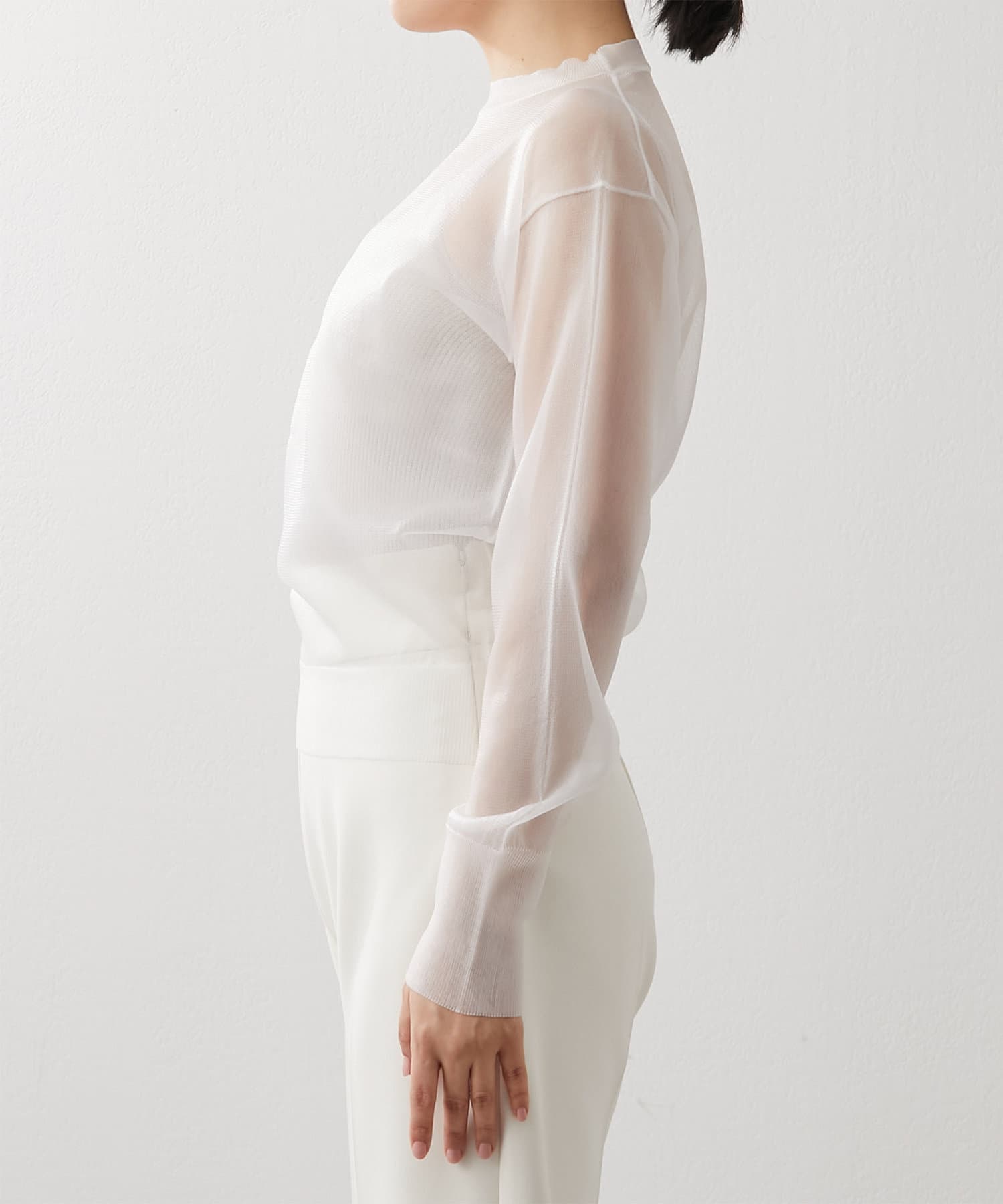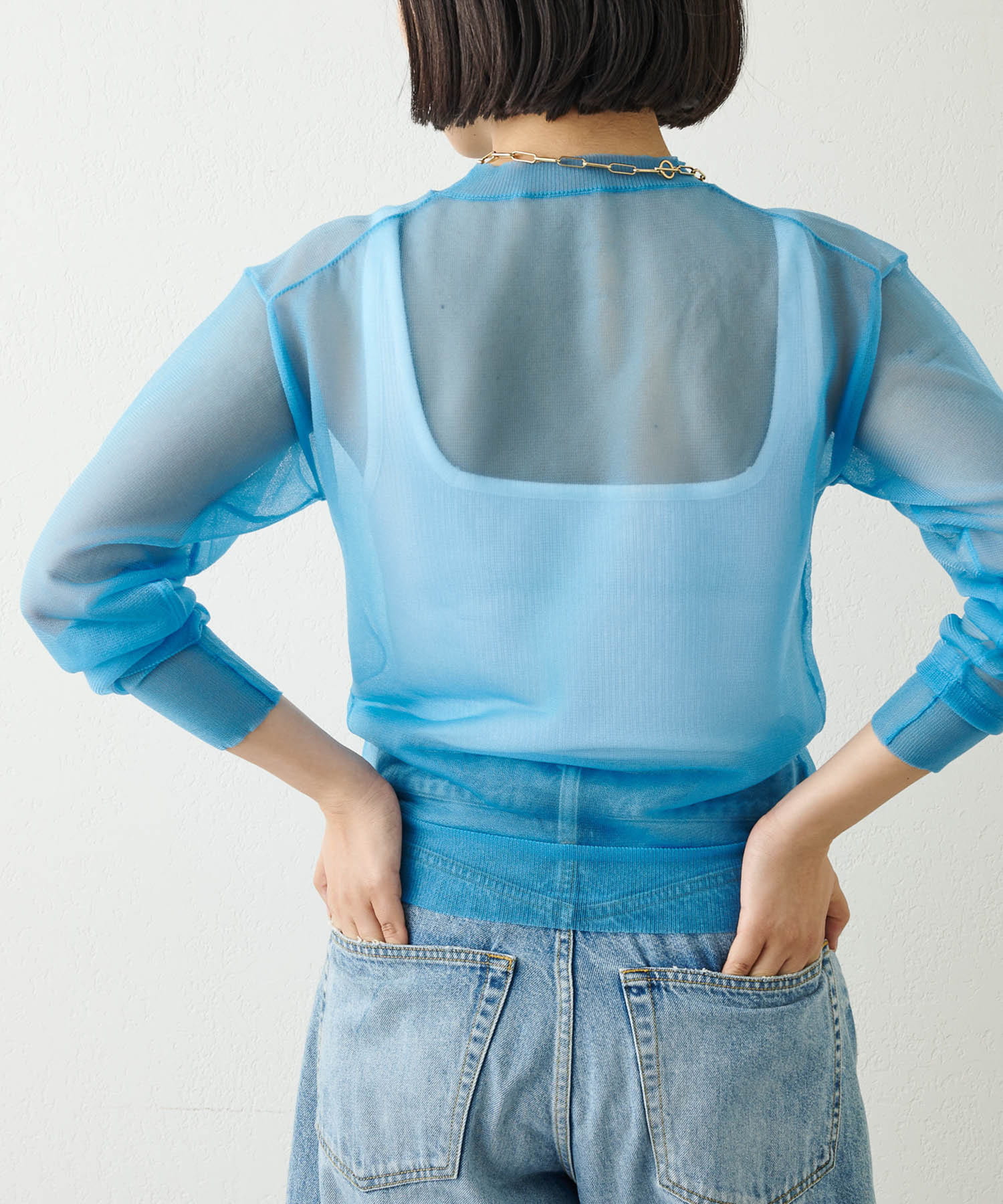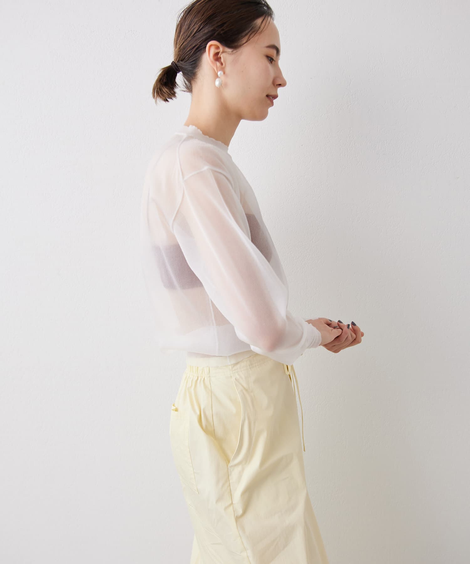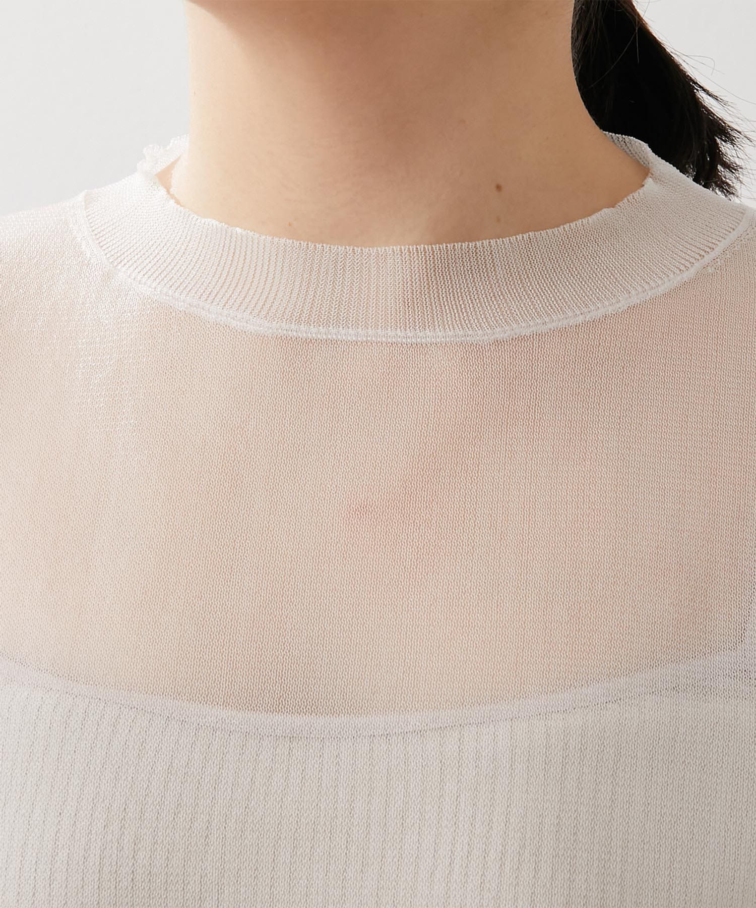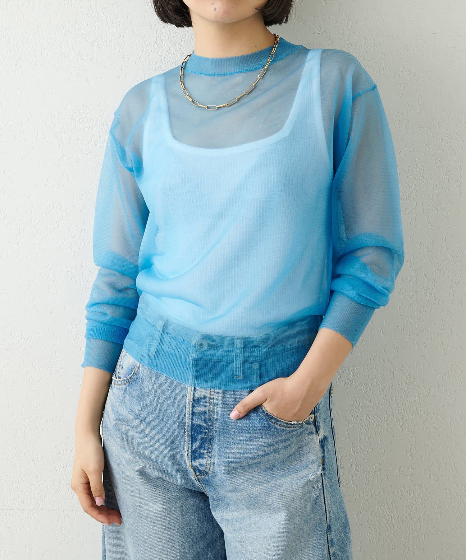 ■旬のレイヤードスタイルが楽しめるシアーニットプルオーバー。