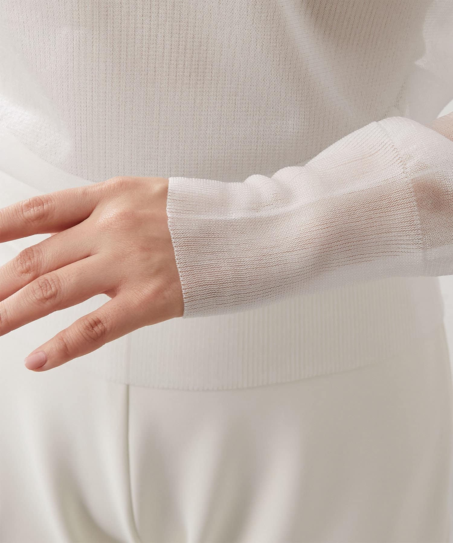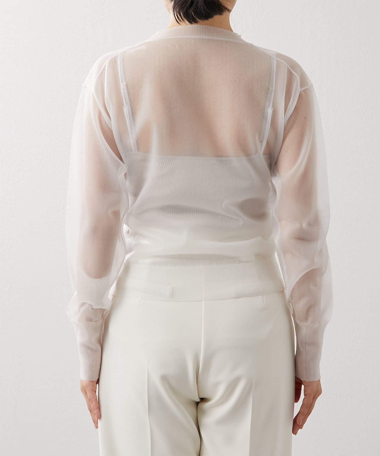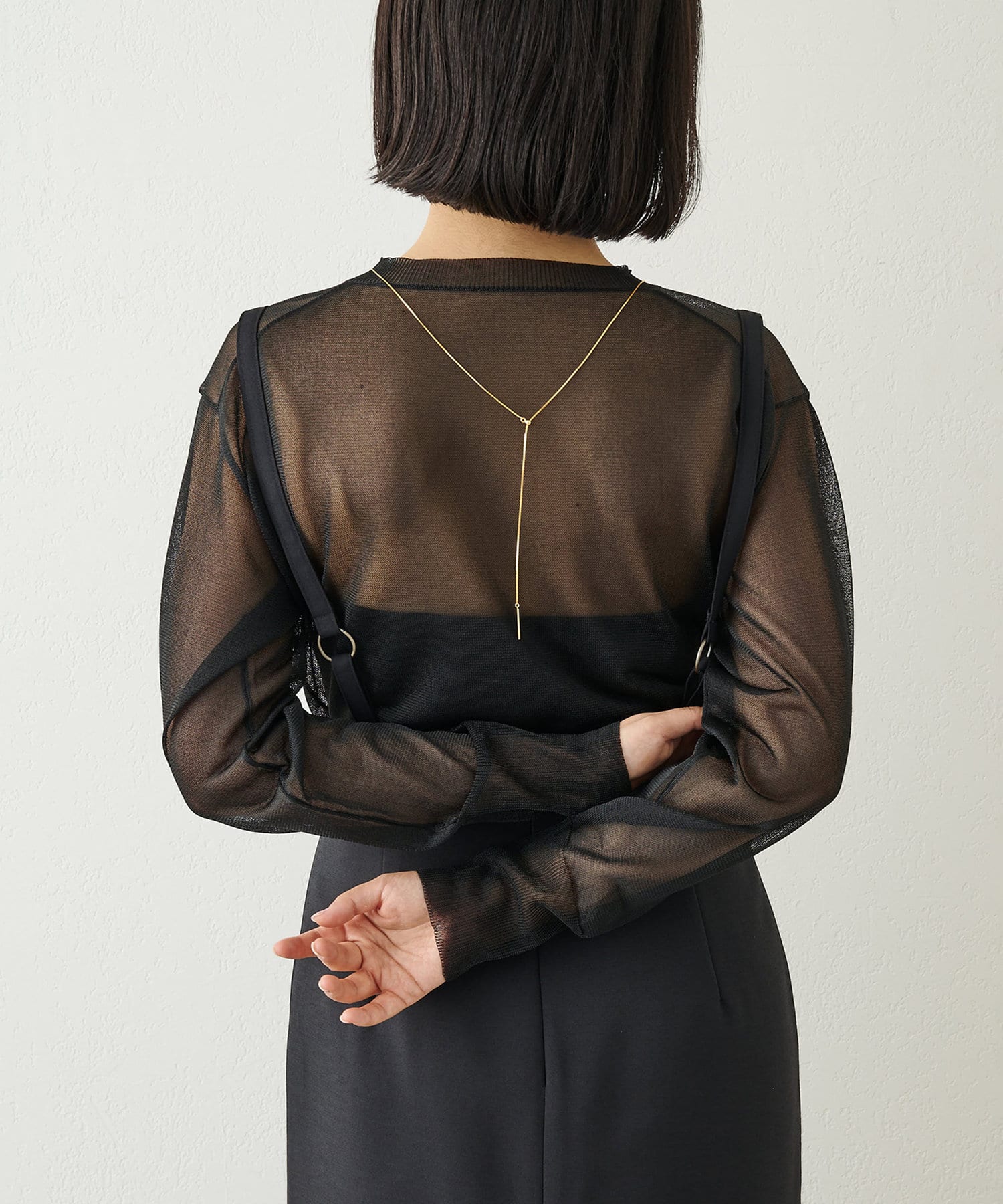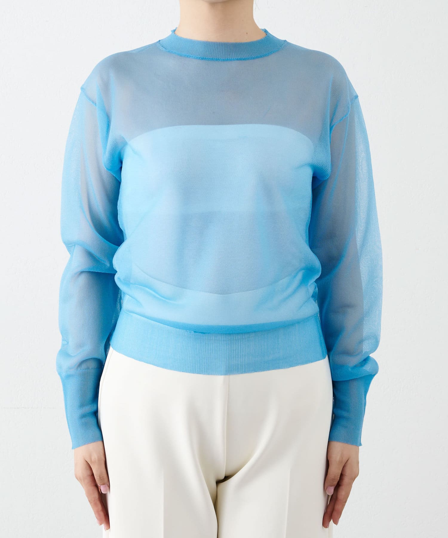 ■旬のレイヤードスタイルが楽しめるシアーニットプルオーバー。