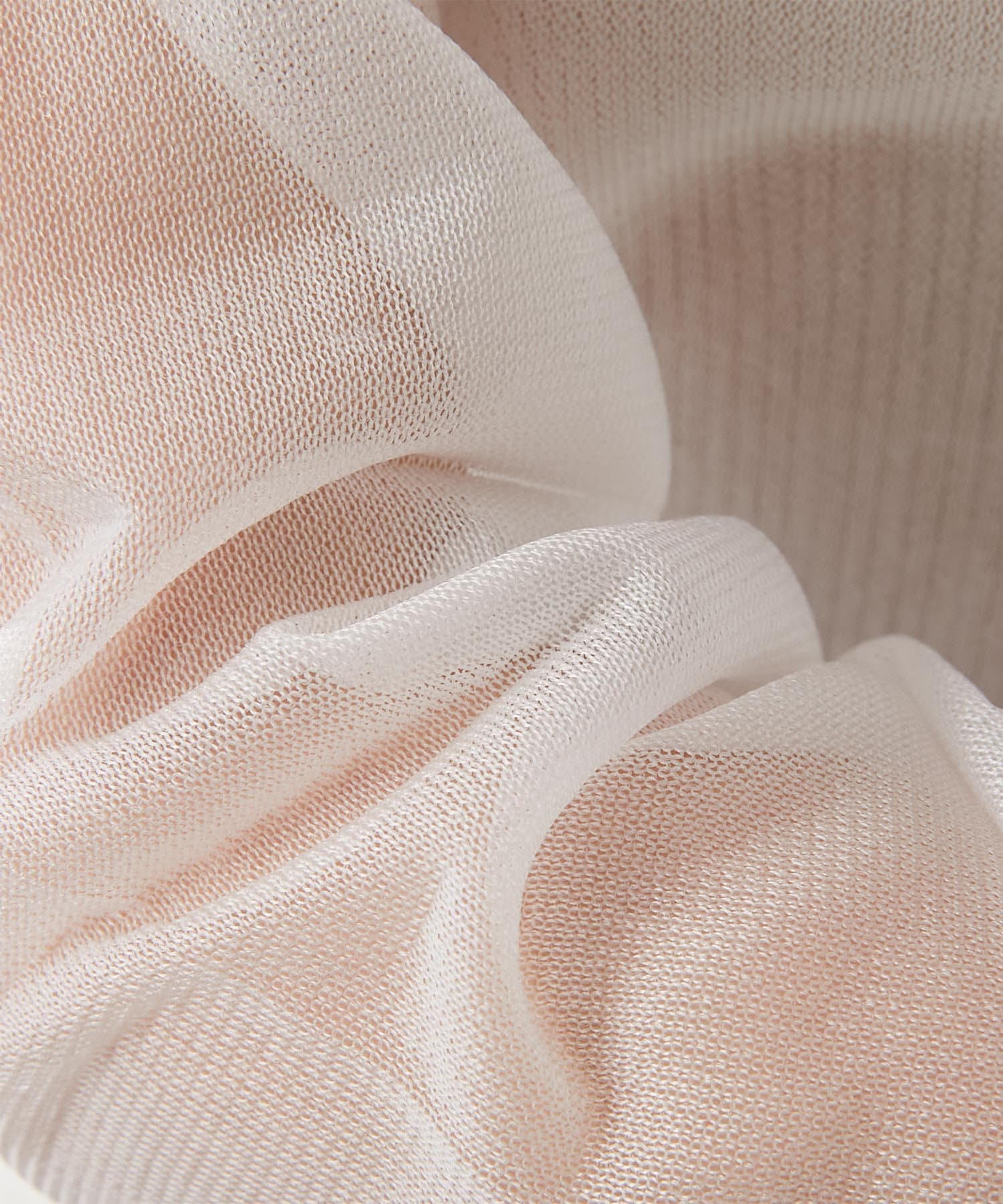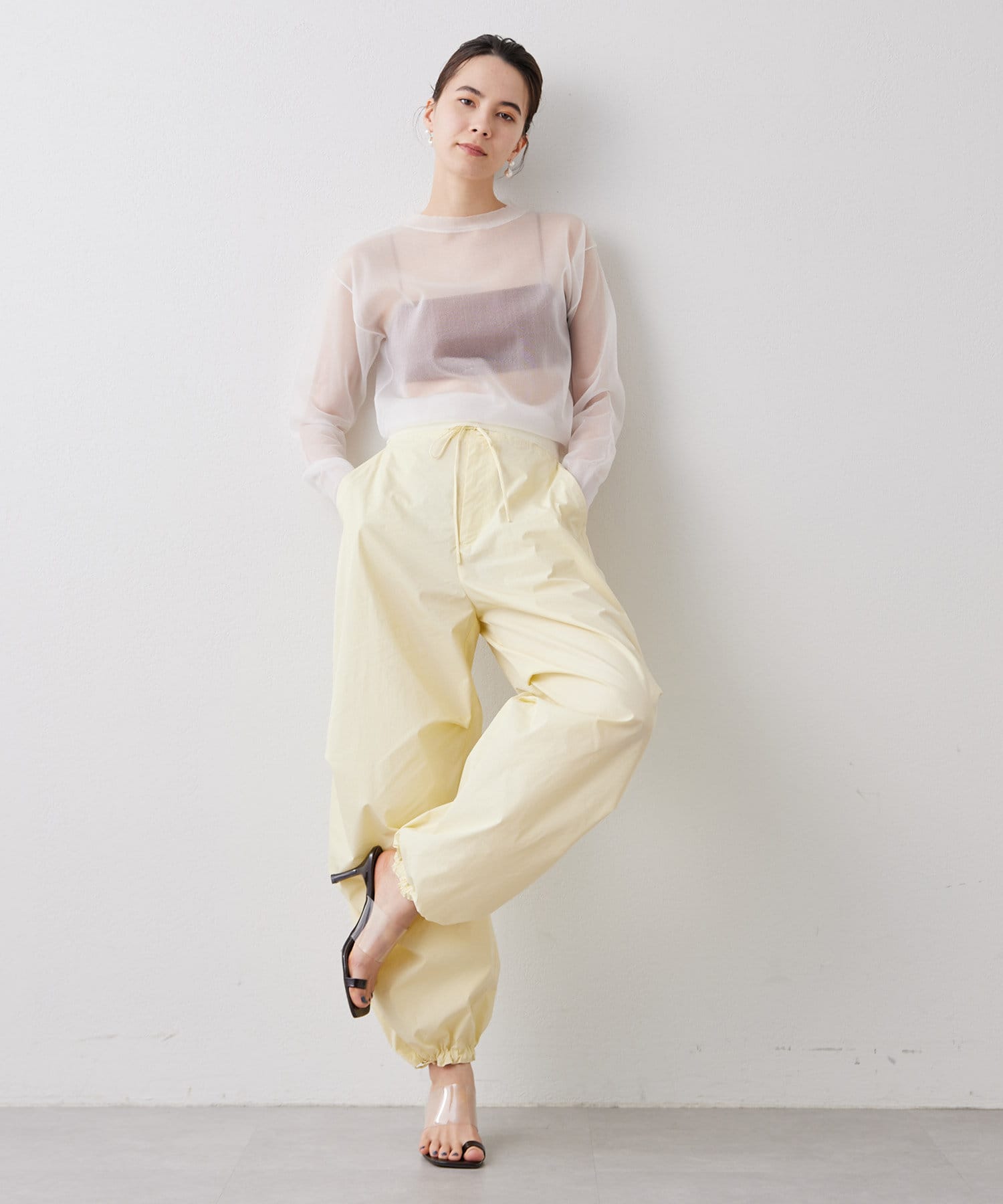 ■大胆な透け感や、程よいハリ感とシャイニーな表情がきれいで新鮮見えする一着。