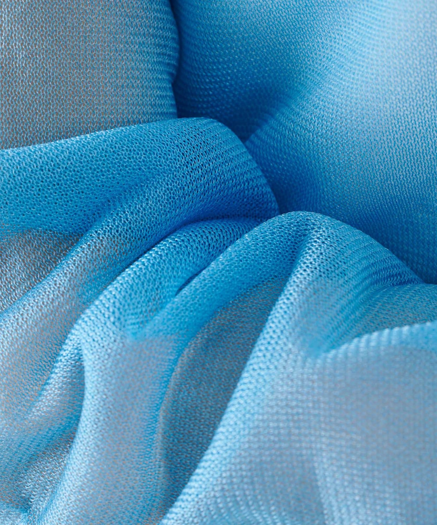 シャイニー感のきれいな、ハリ感のある透明糸を使用したニット素材。
