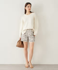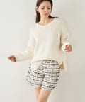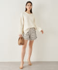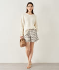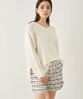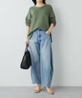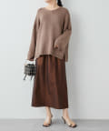■すっきりとしたパンツや細身のスカートに合わせてニットの緩さを引き立てるスタイリングもおすすめ。